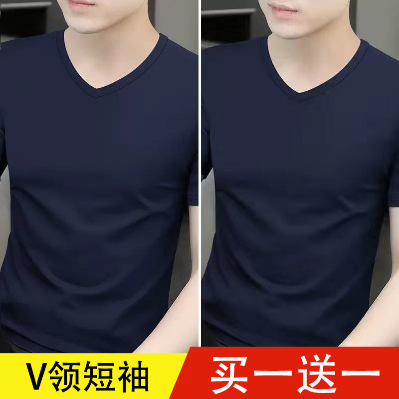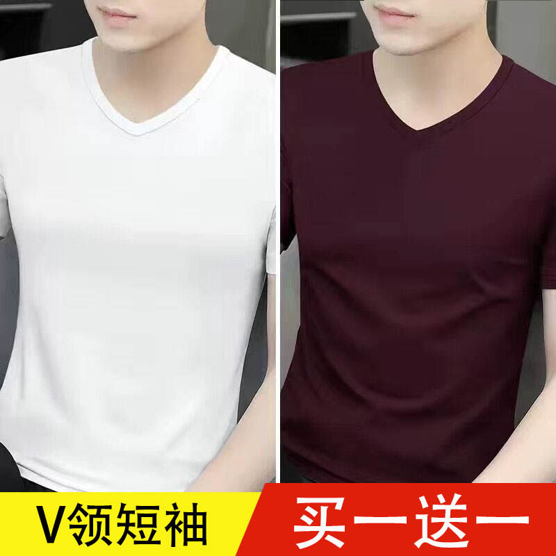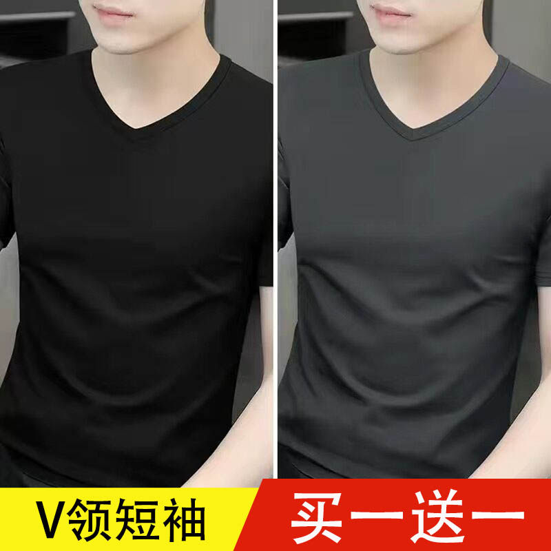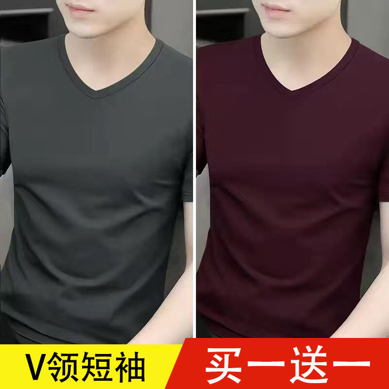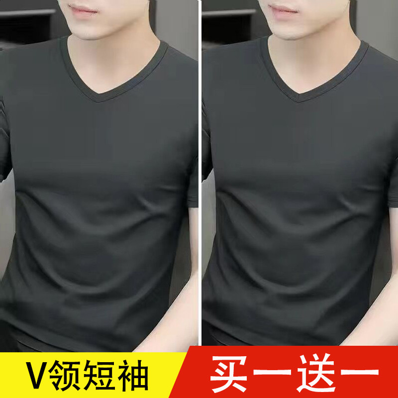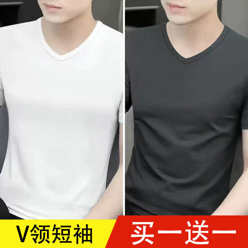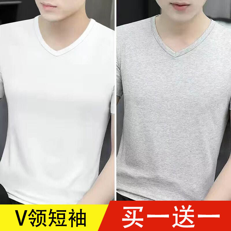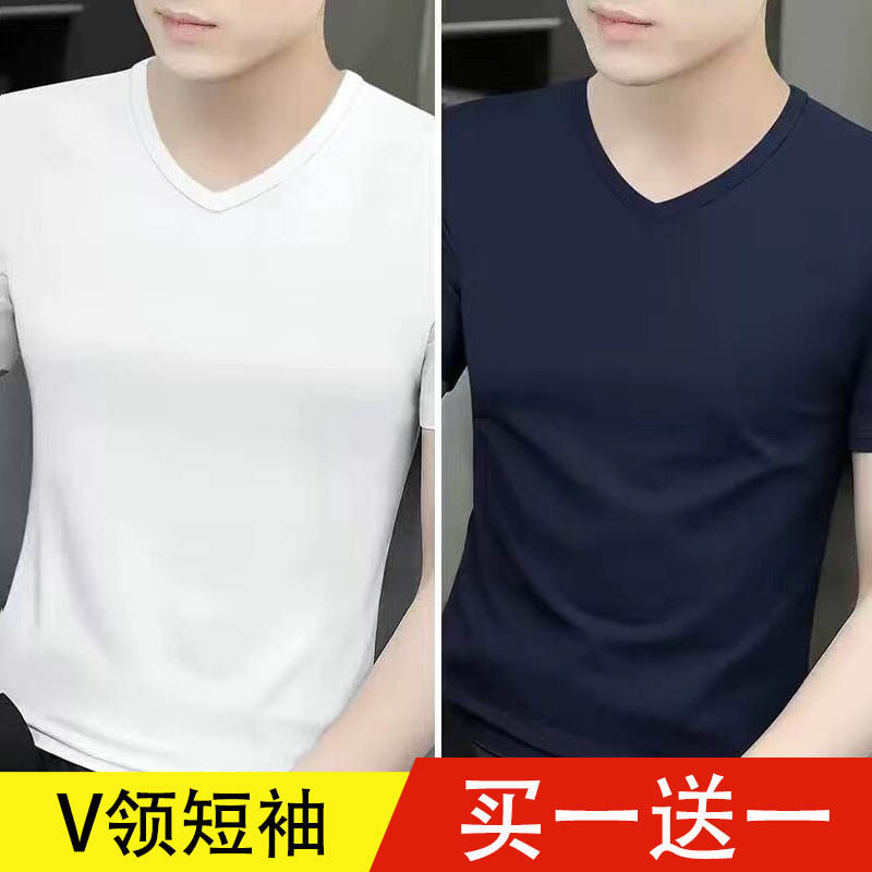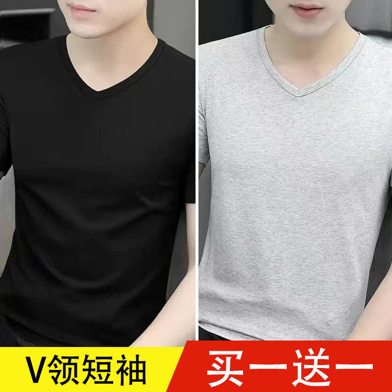 清仓捡漏莫代尔冰丝短袖t恤男装V领纯色潮流夏季薄款半袖上衣汗衫