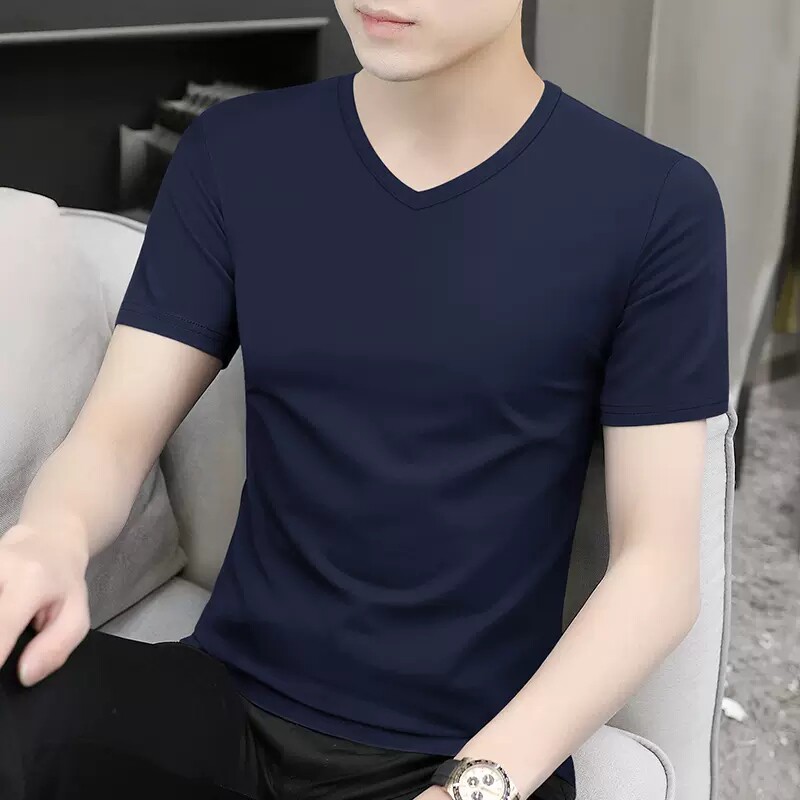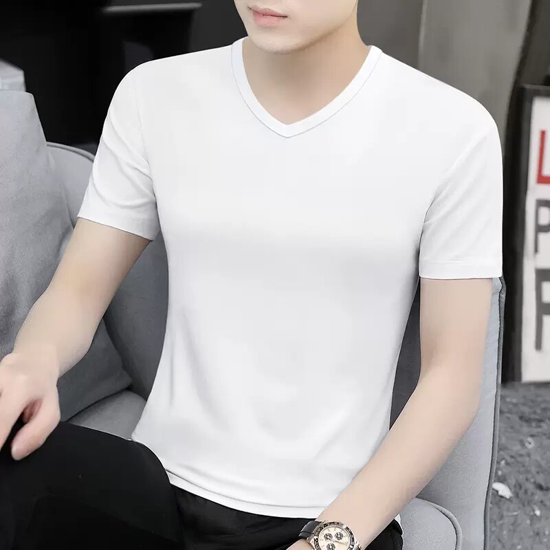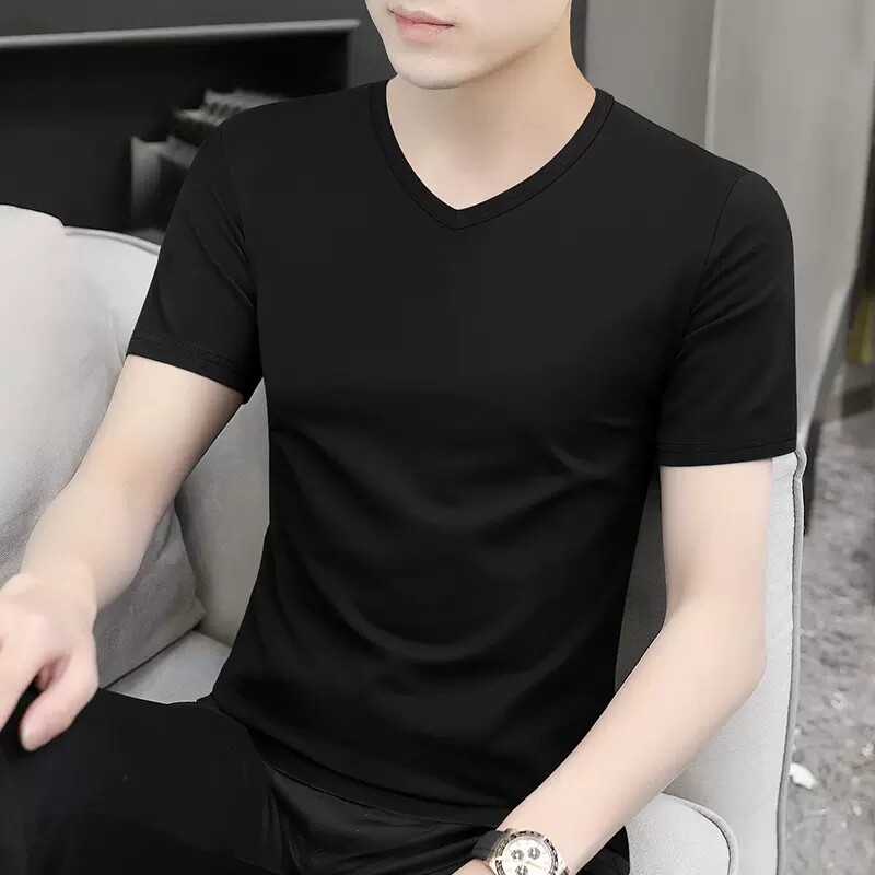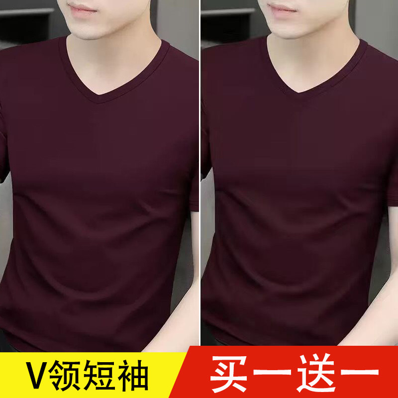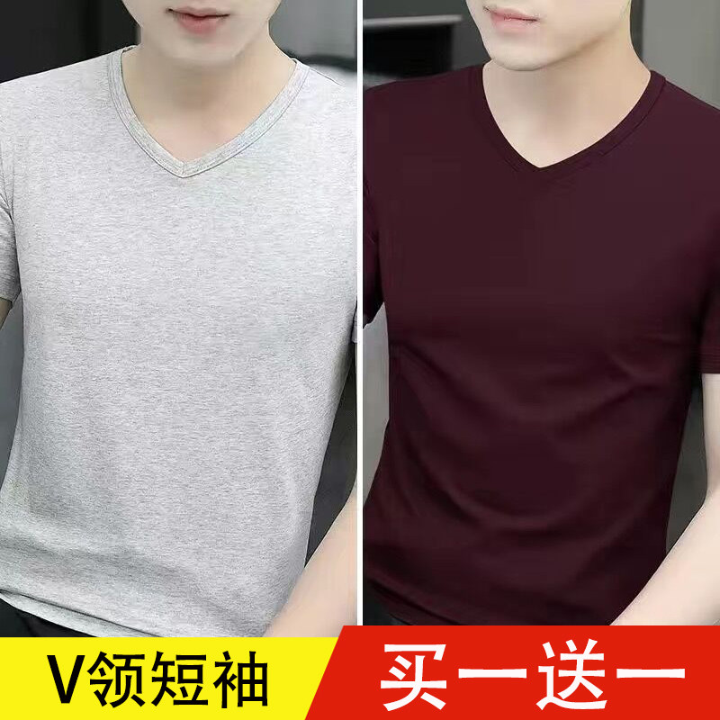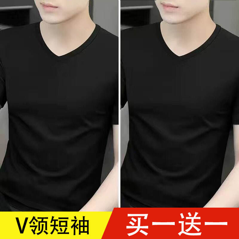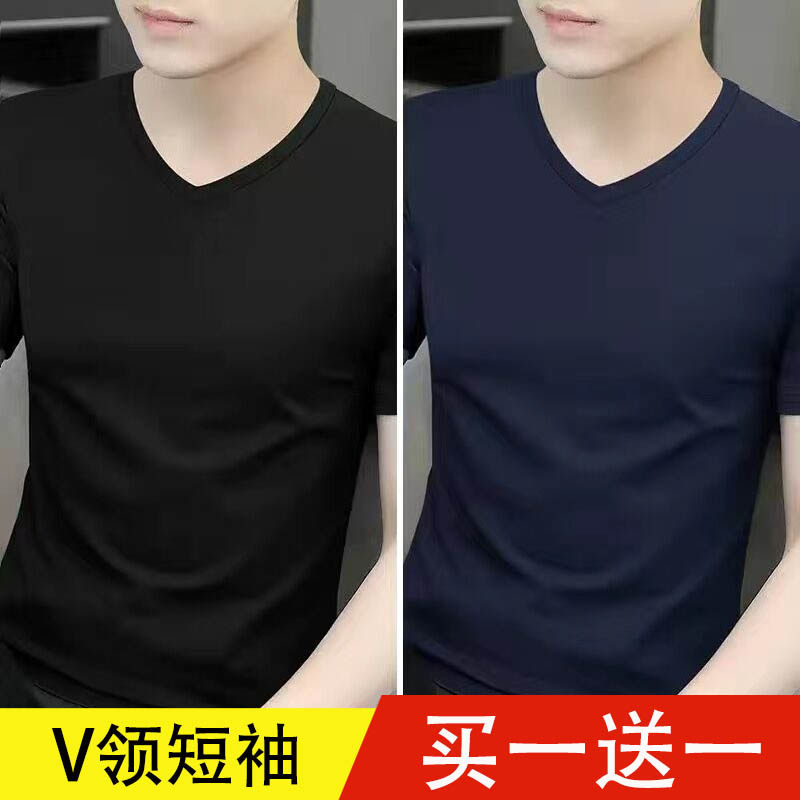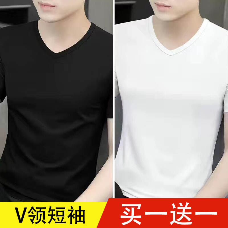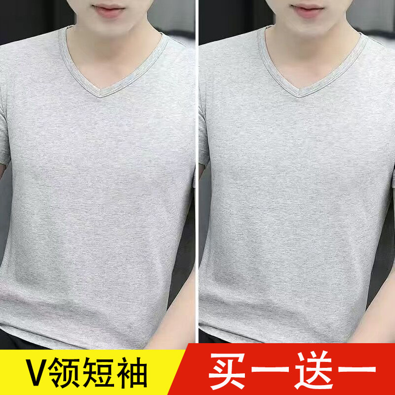 清仓捡漏莫代尔冰丝短袖t恤男装V领纯色潮流夏季薄款半袖上衣汗衫
