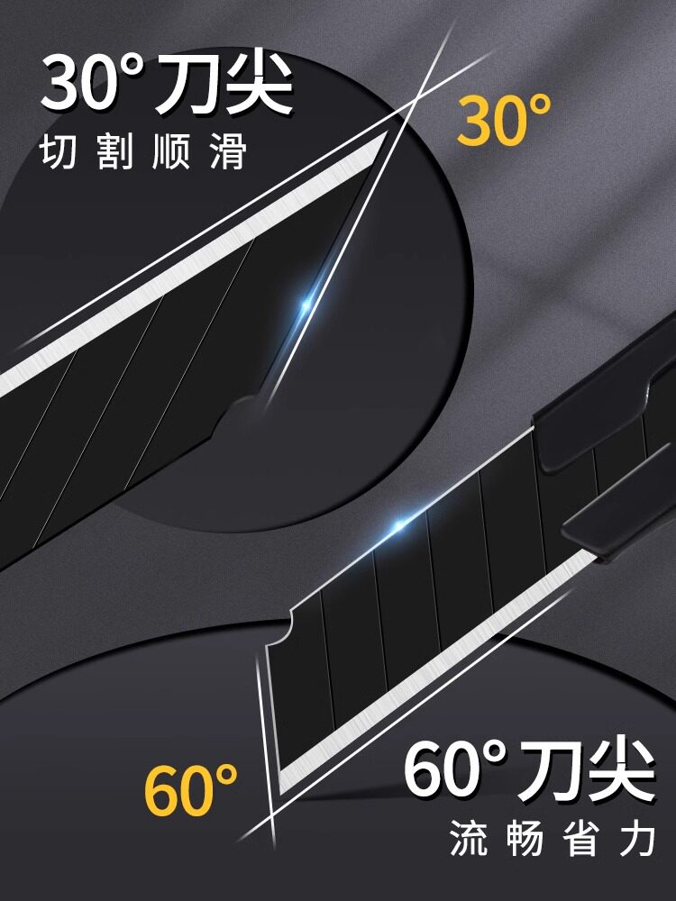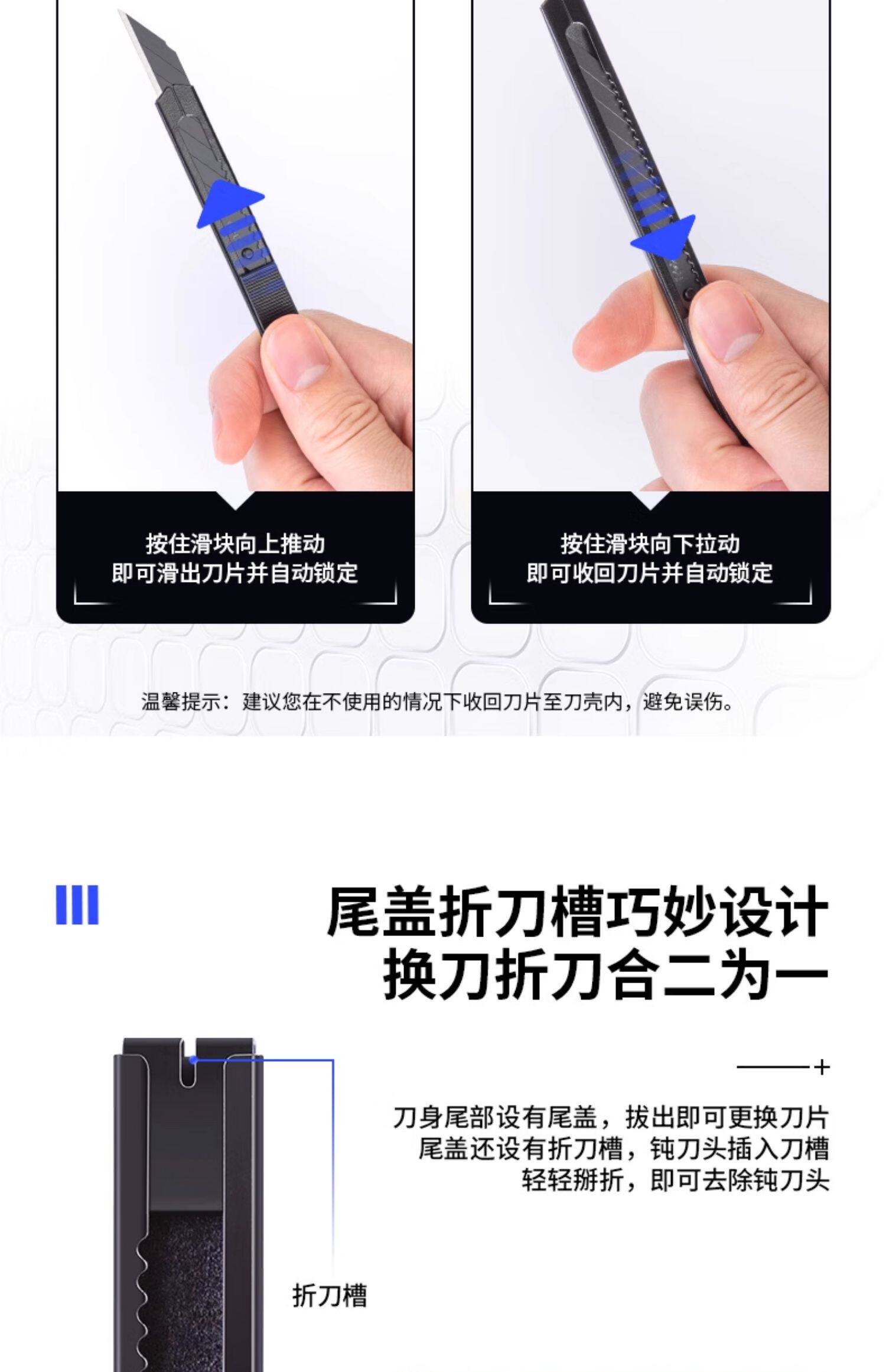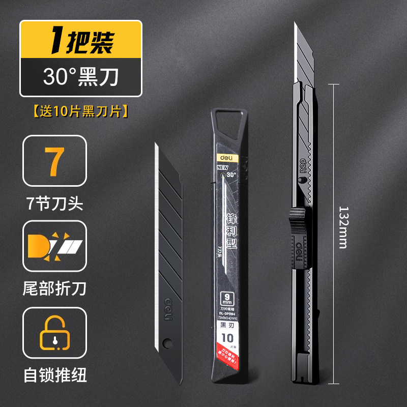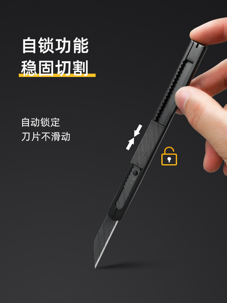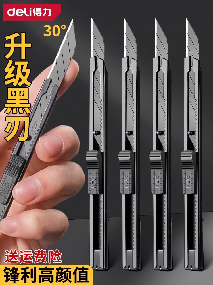 HomeProducts得力黑刃美工刀钨钢黑科技小型裁纸刀拆快递小刀壁纸刀工业级不锈钢刀身合金刀片30度雕刻刀开箱刀美术生专用