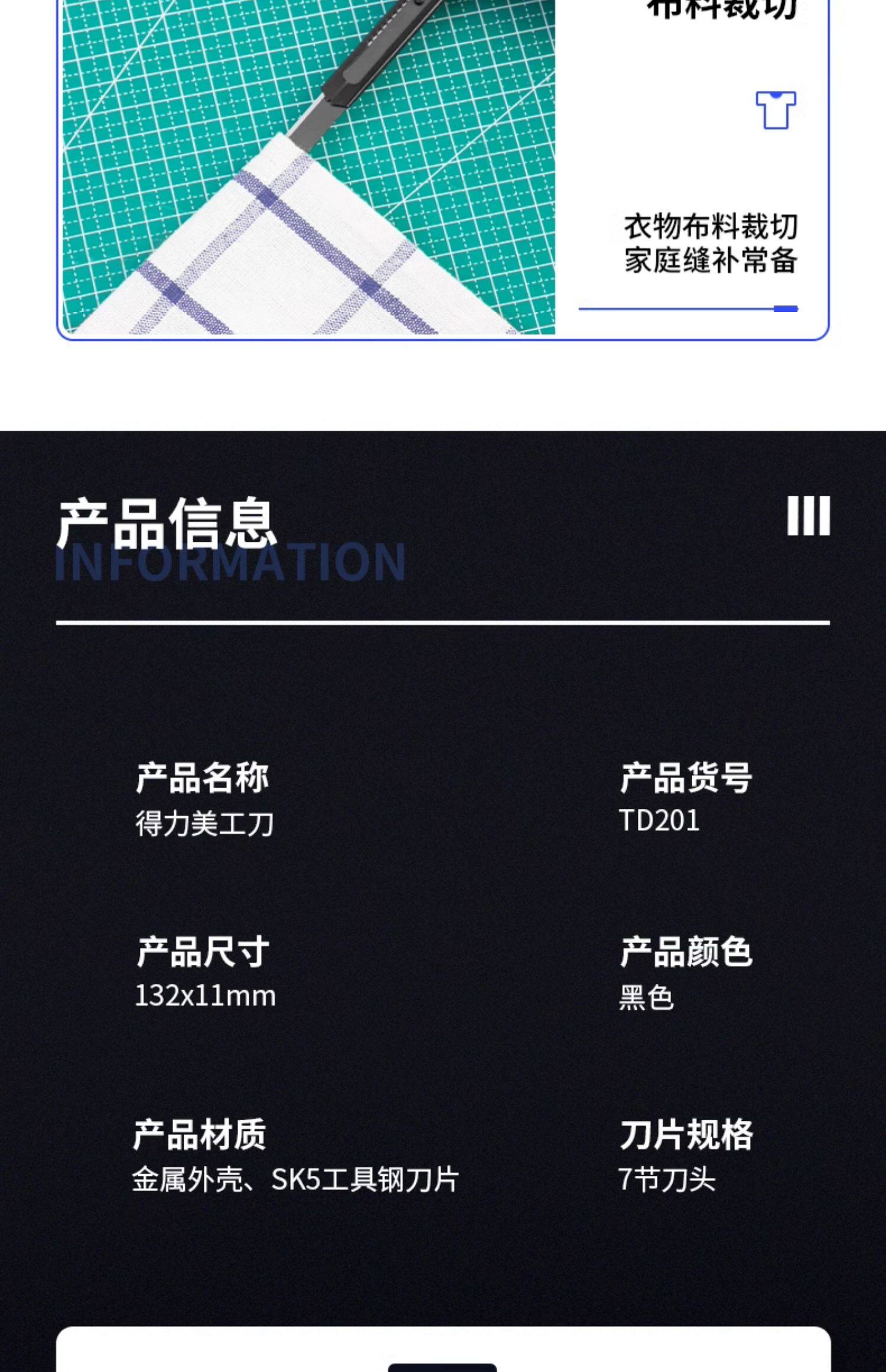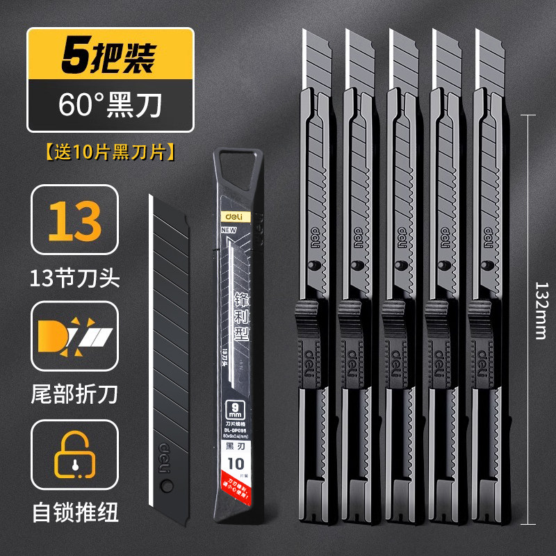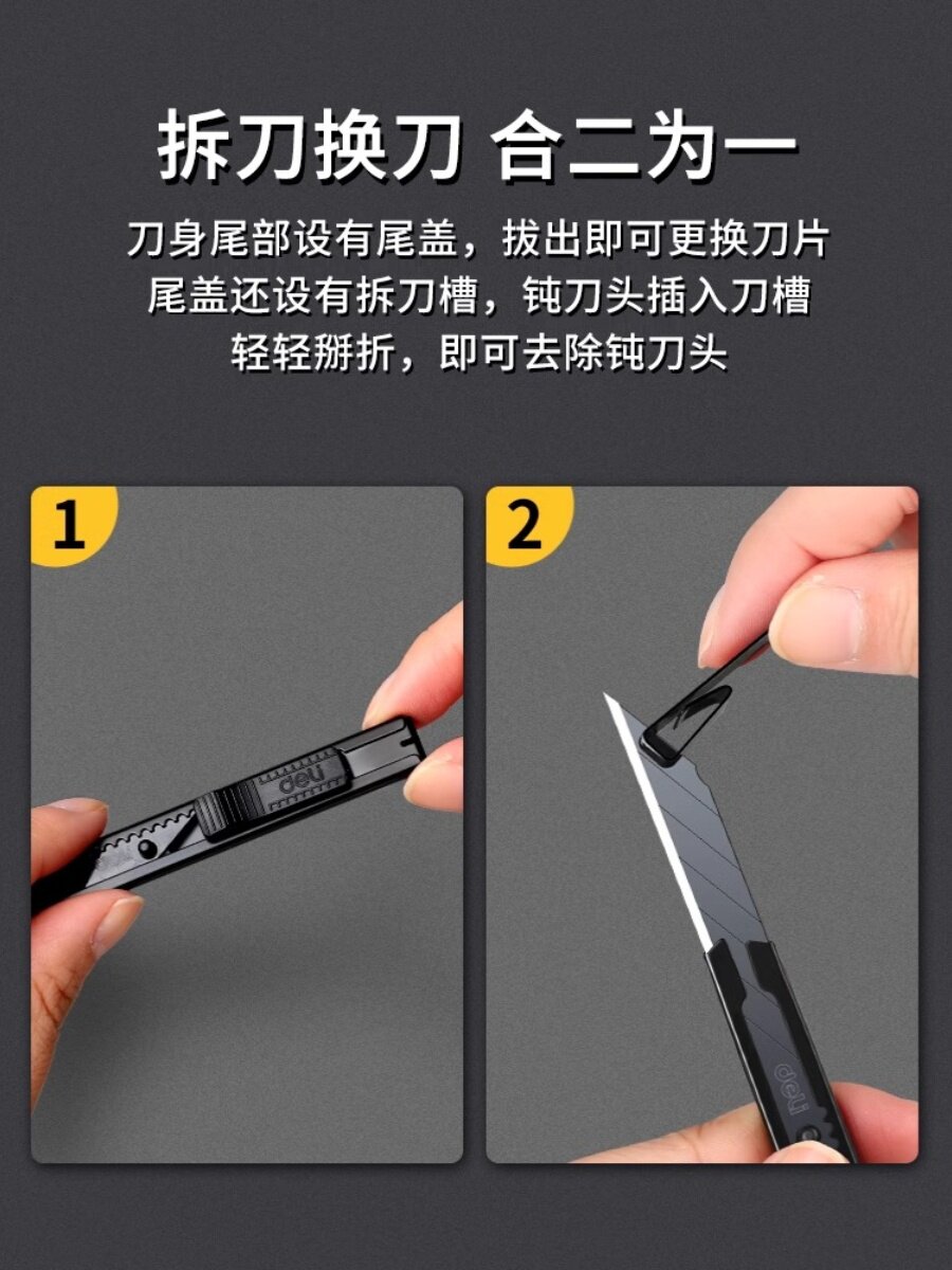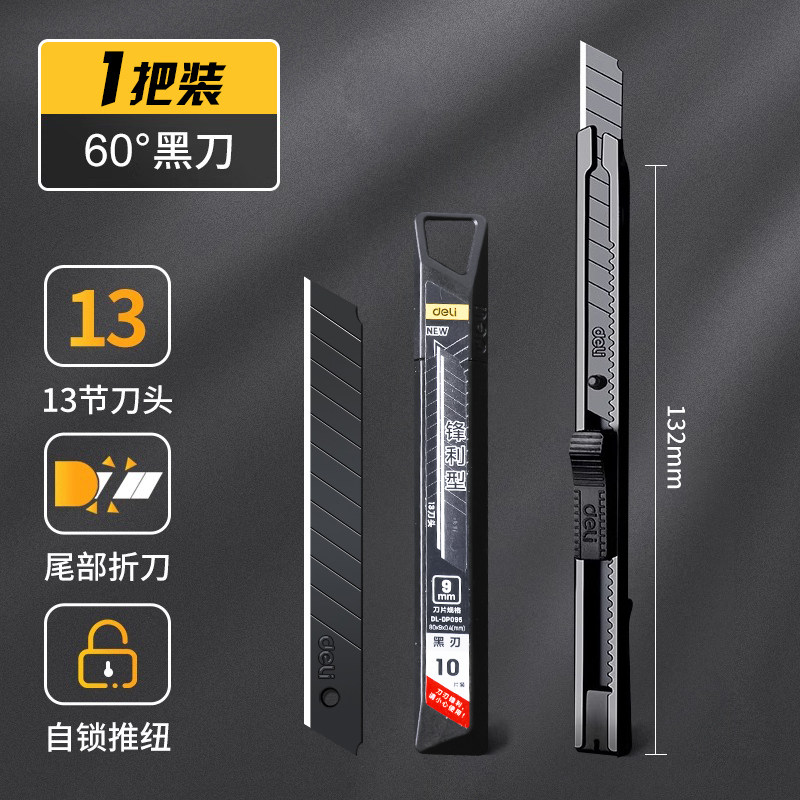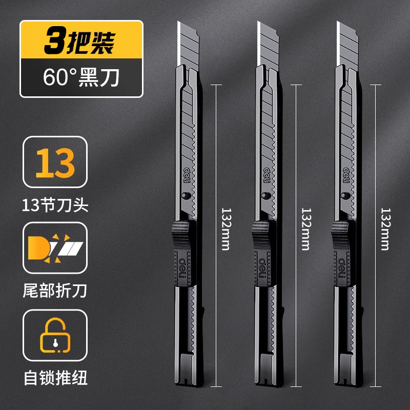 HomeProducts得力黑刃美工刀钨钢黑科技小型裁纸刀拆快递小刀壁纸刀工业级不锈钢刀身合金刀片30度雕刻刀开箱刀美术生专用
