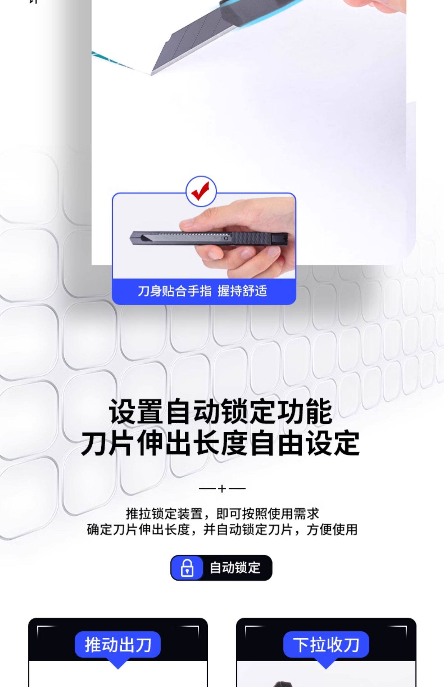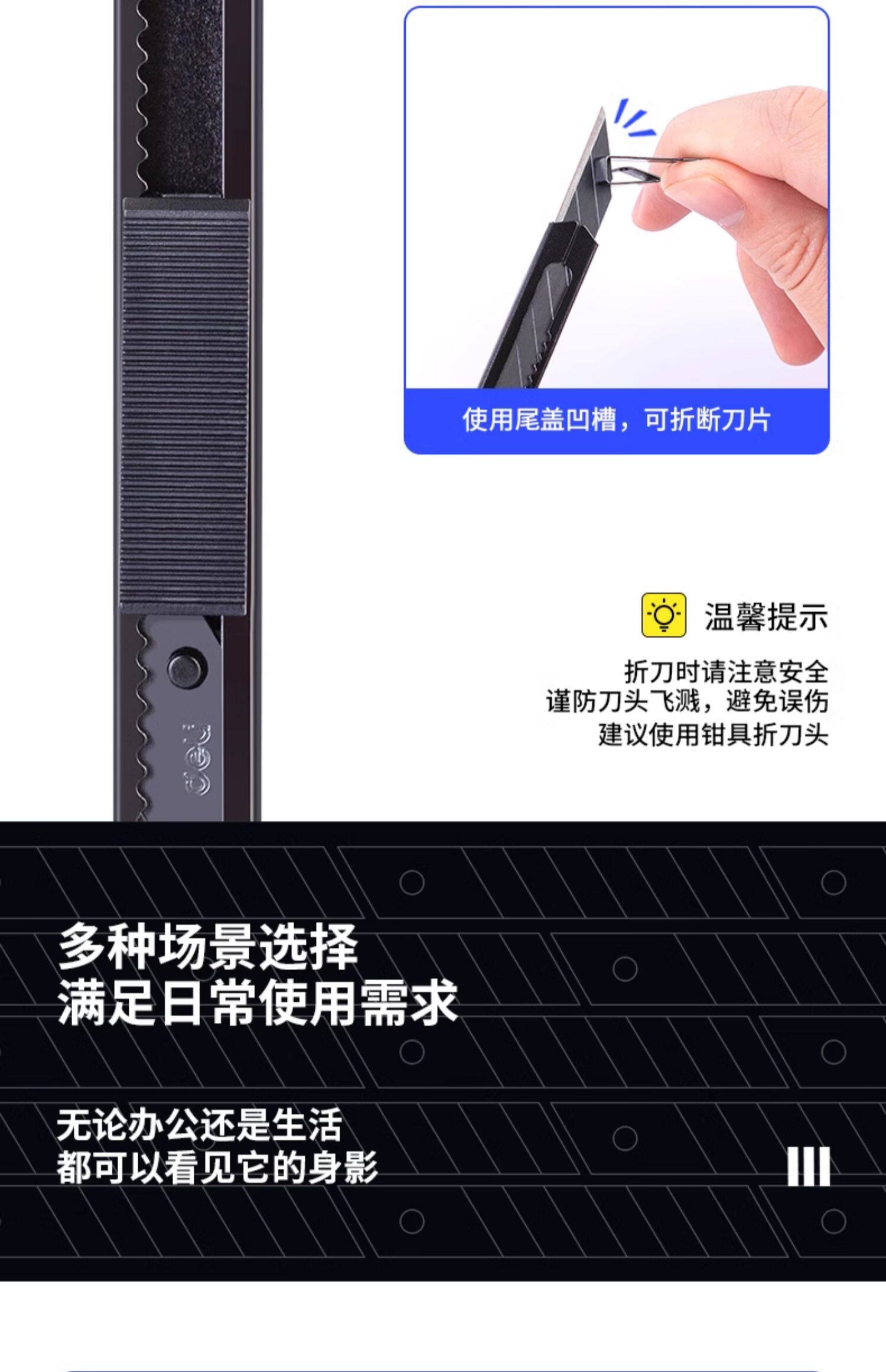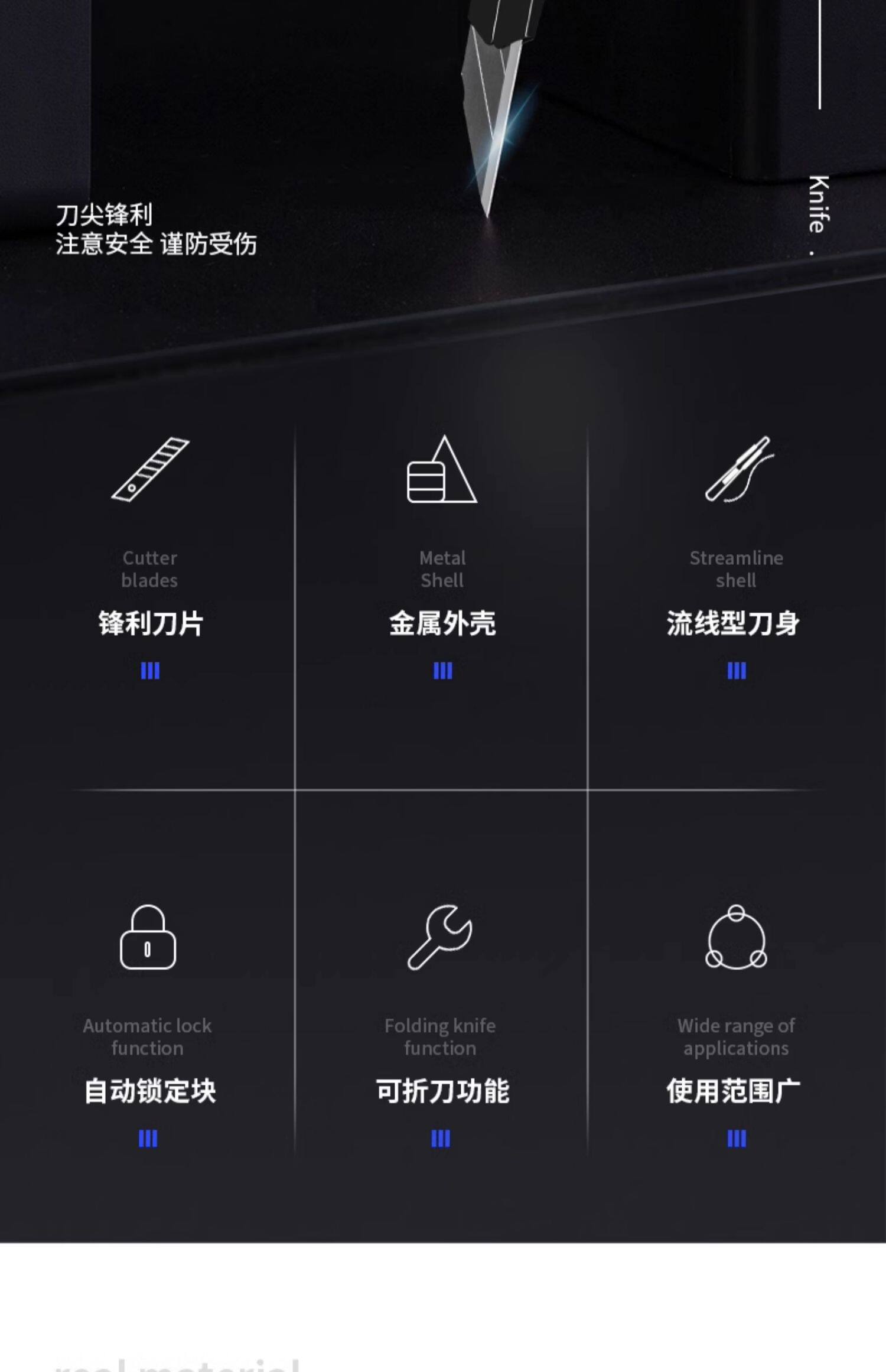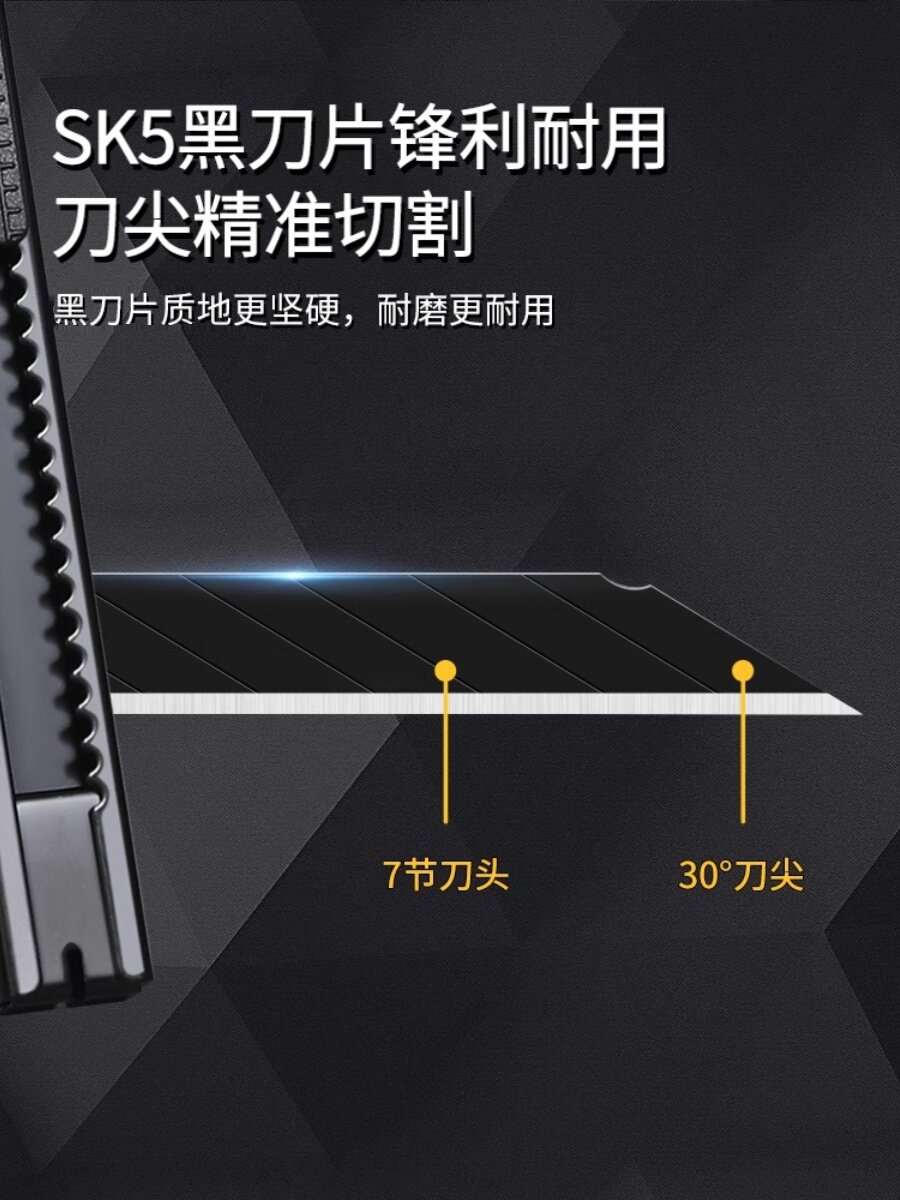 HomeProducts得力黑刃美工刀钨钢黑科技小型裁纸刀拆快递小刀壁纸刀工业级不锈钢刀身合金刀片30度雕刻刀开箱刀美术生专用