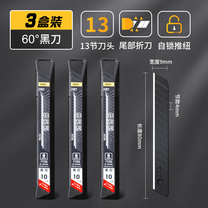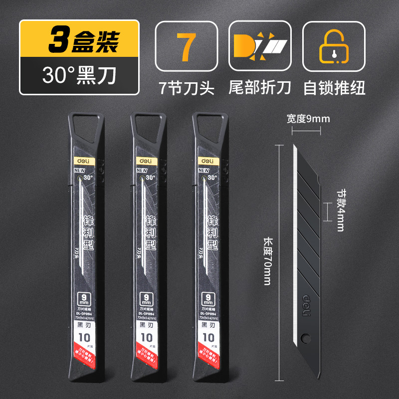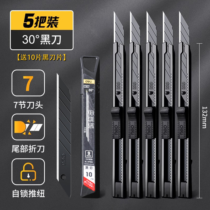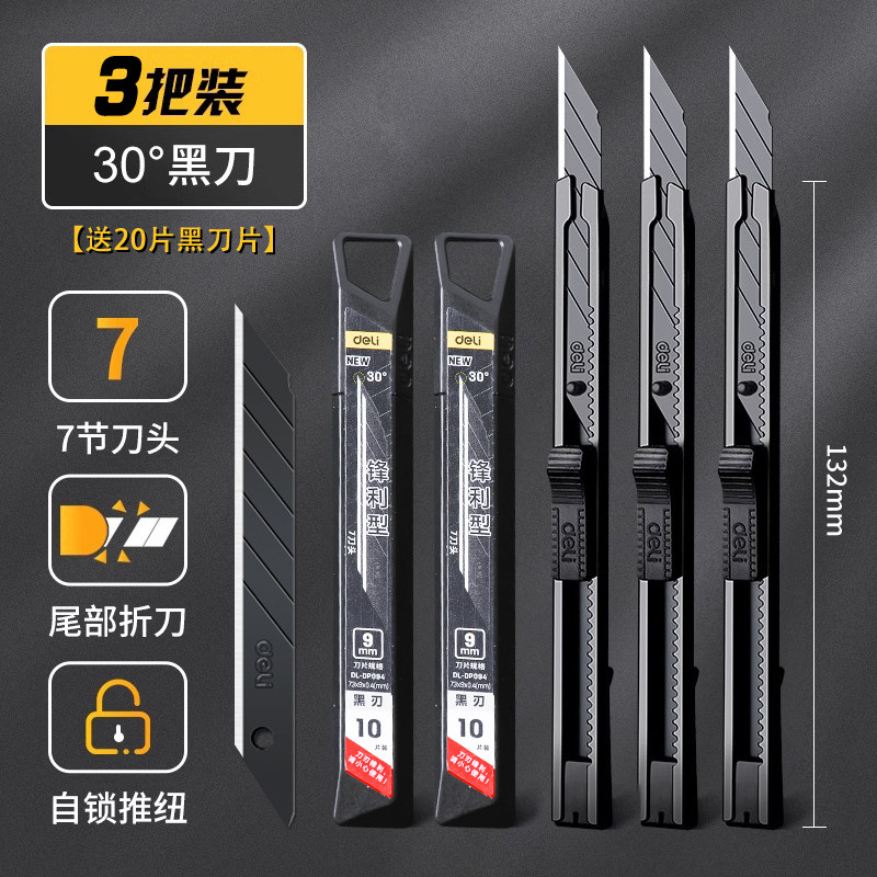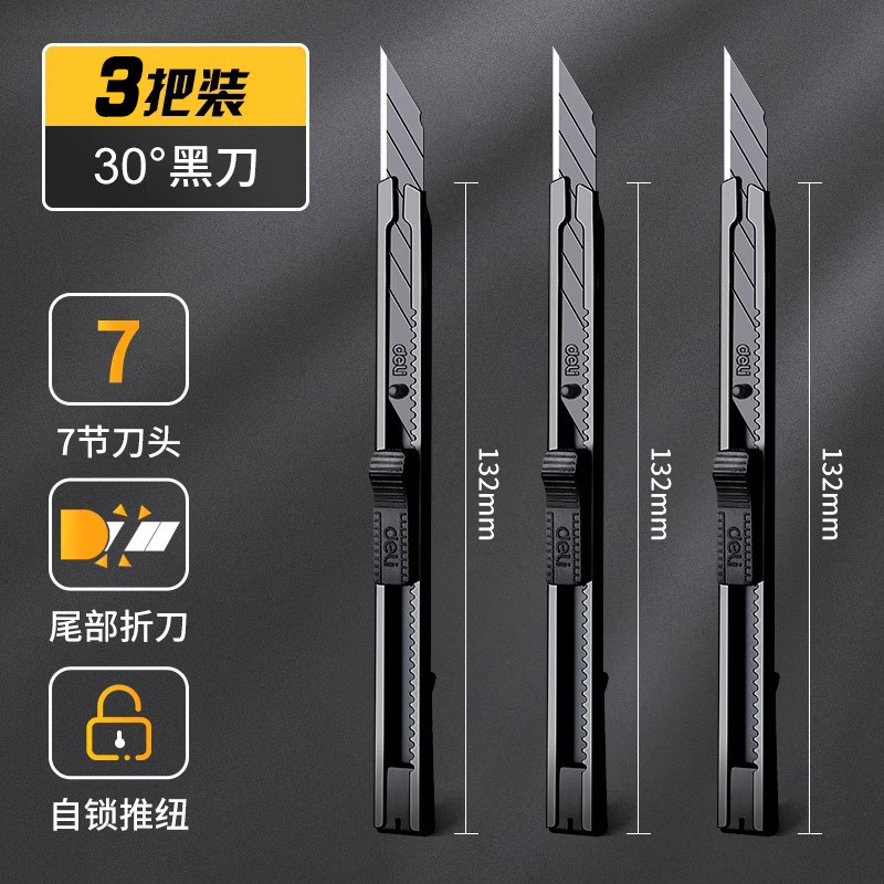 得力黑刃美工刀钨钢黑科技小型裁纸刀拆快递小刀壁纸刀工业级不锈钢刀身合金刀片30度雕刻刀开箱刀美术生专用