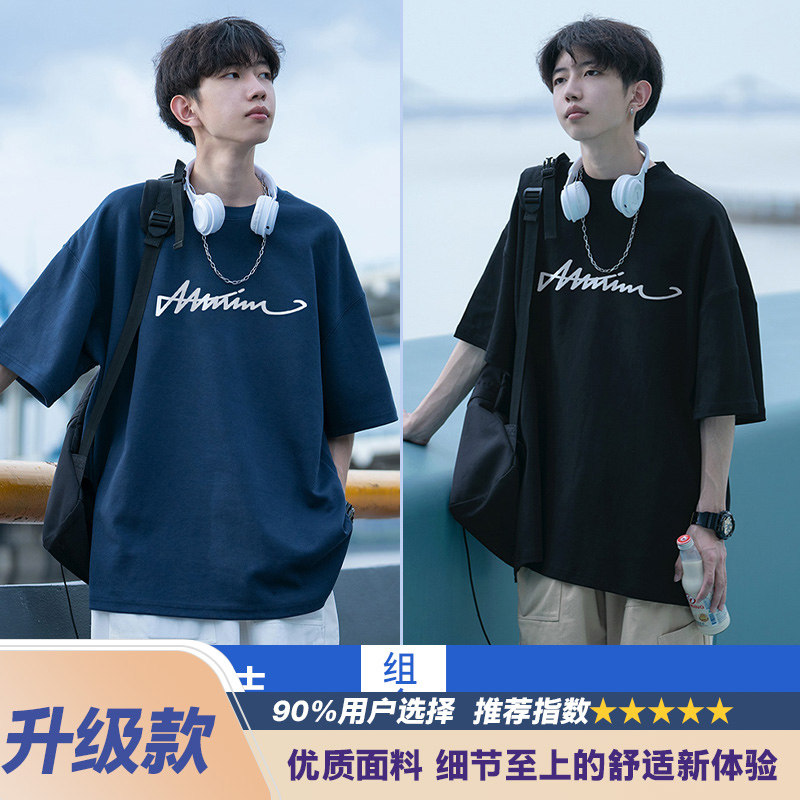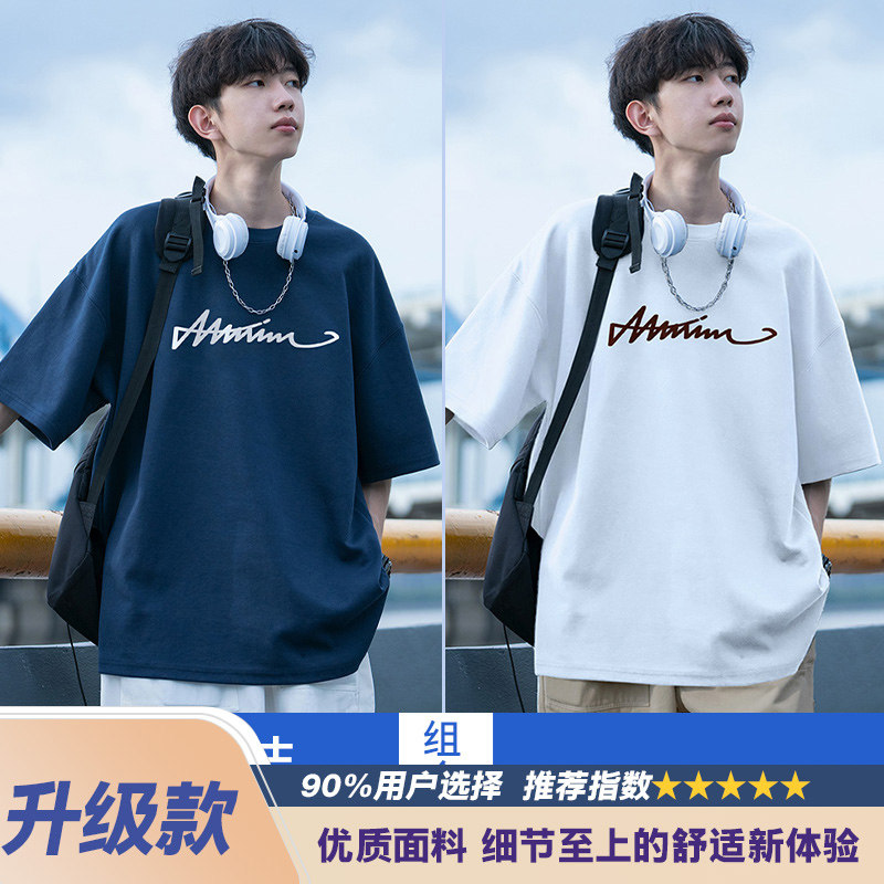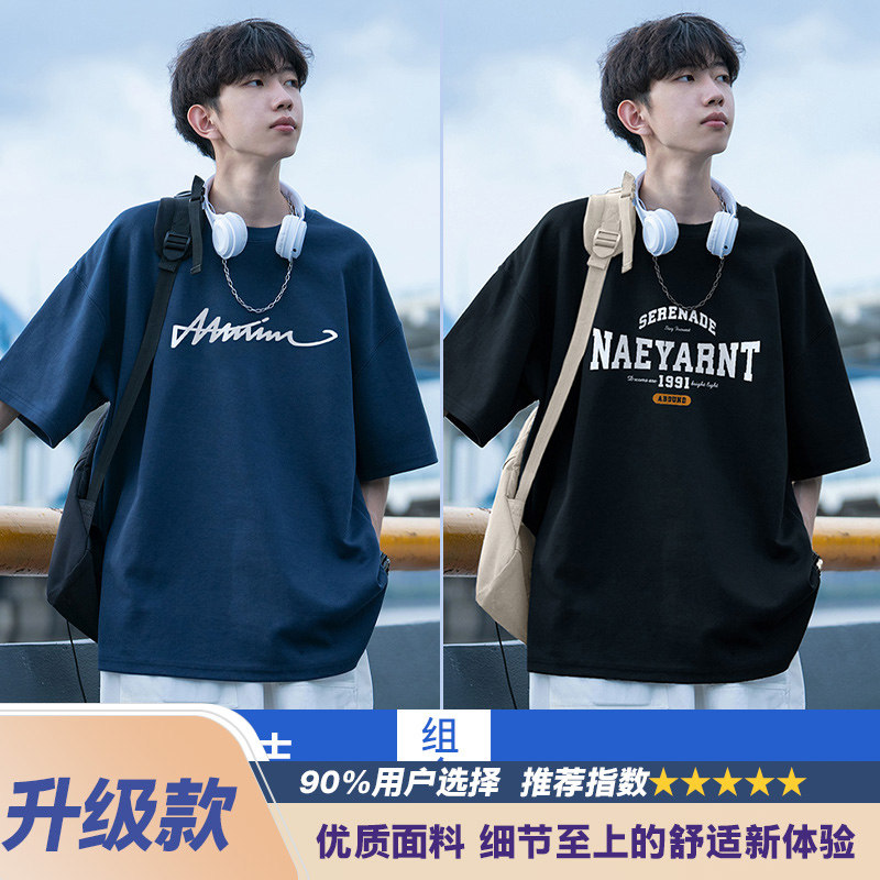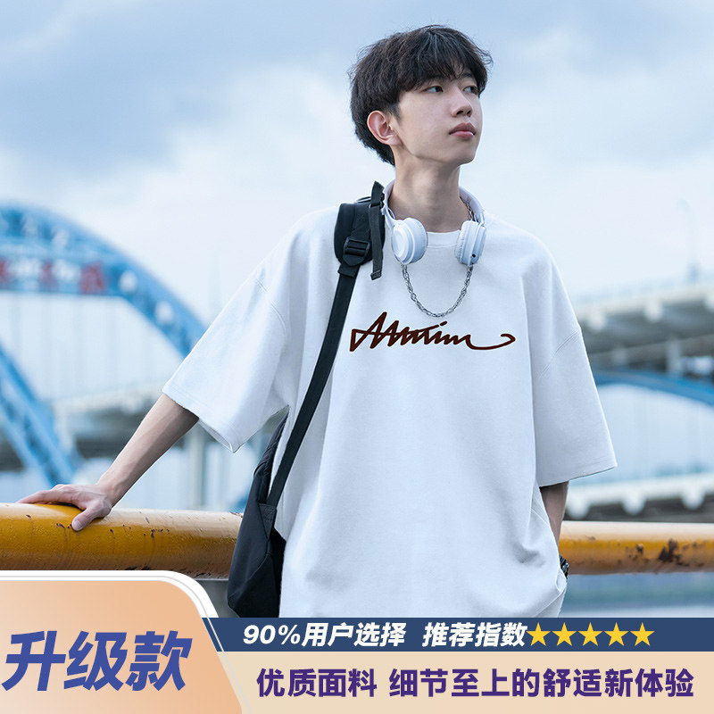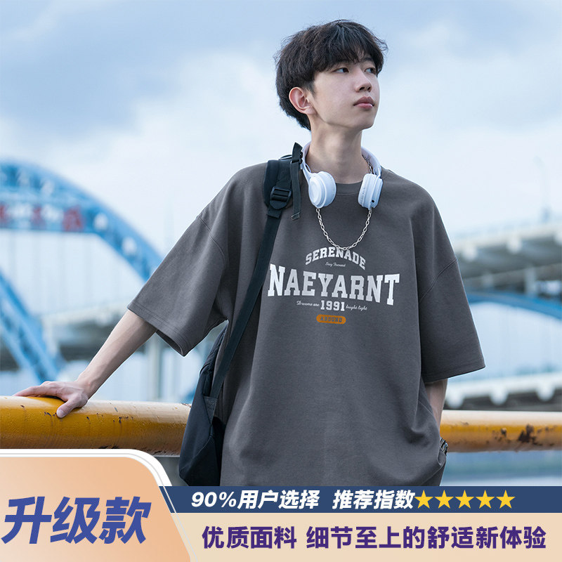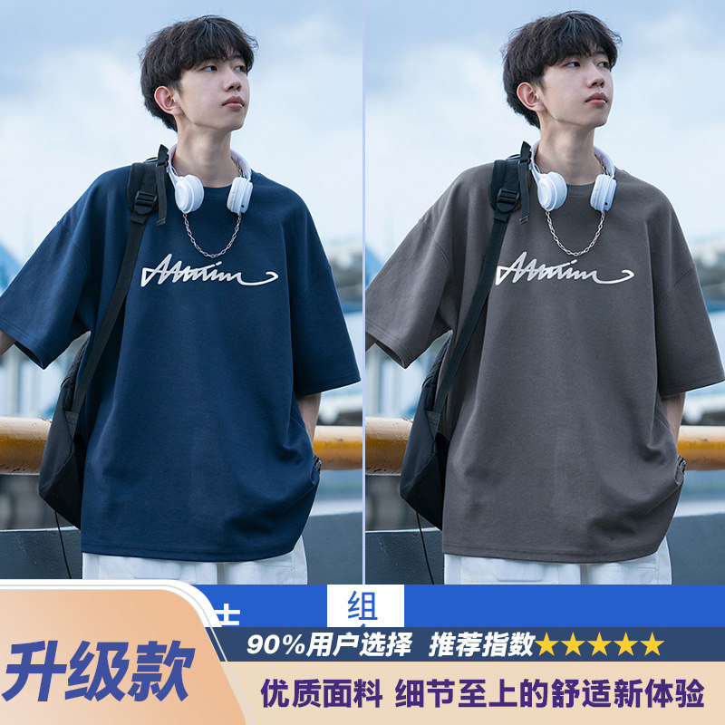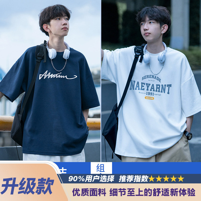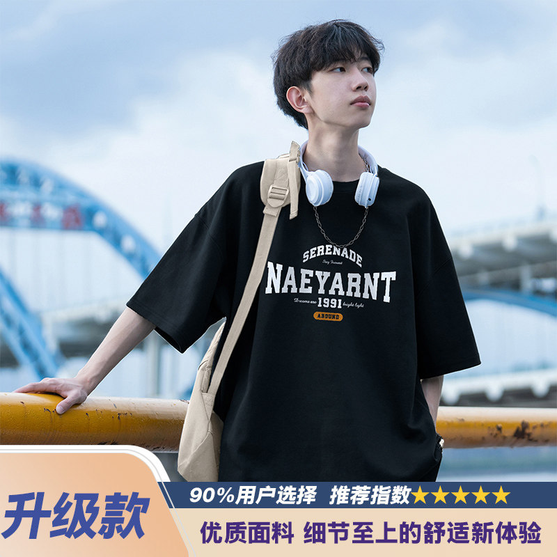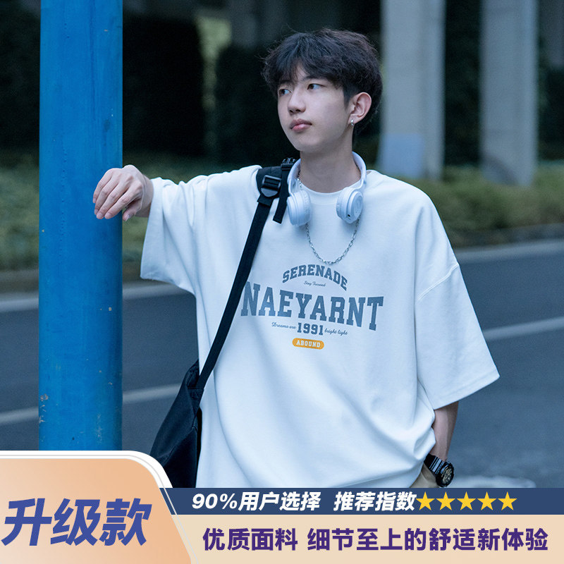 纯棉短袖t恤男士夏季2026新款休闲潮牌潮流宽松男生夏天体恤衣服