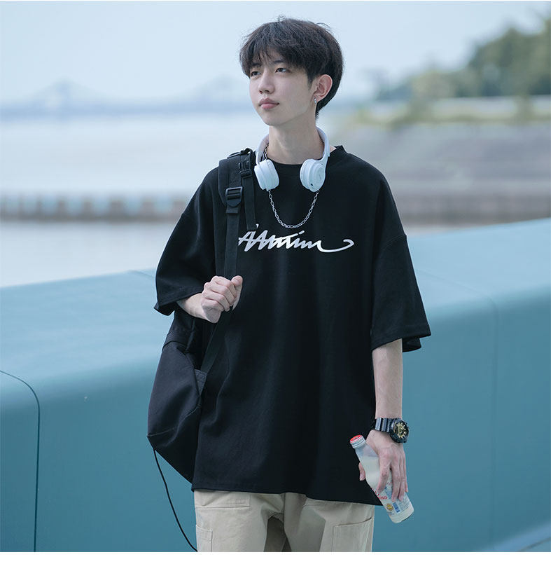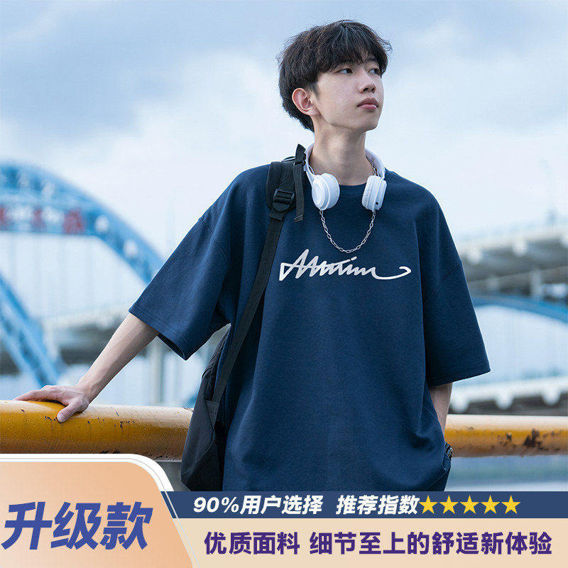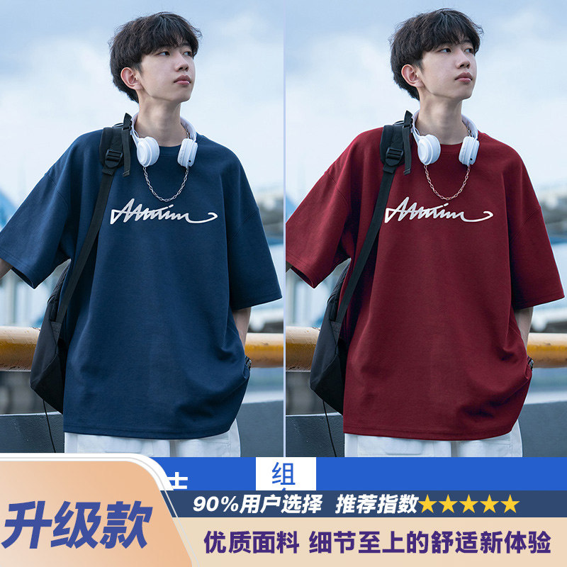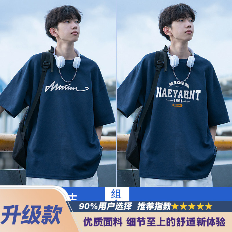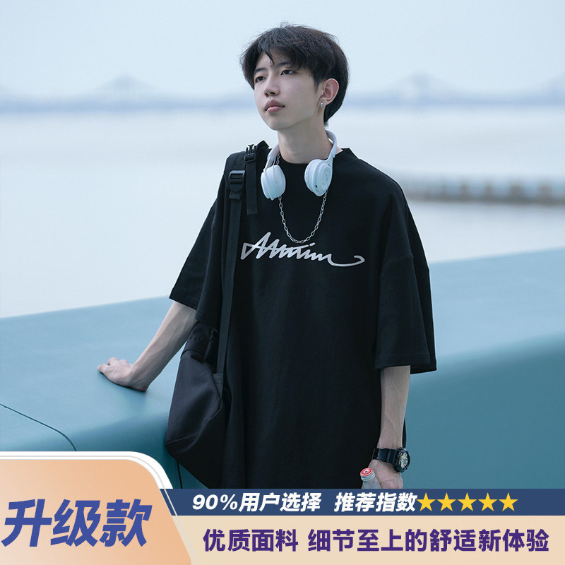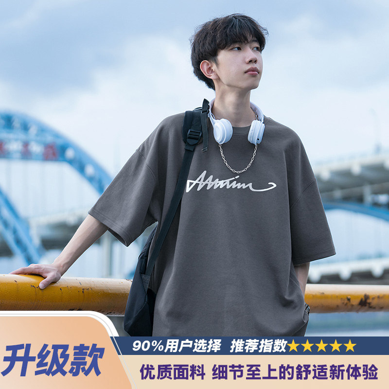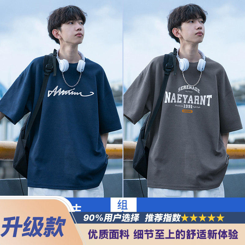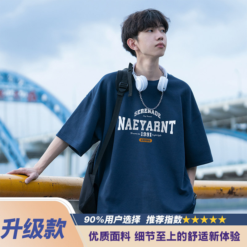 纯棉短袖t恤男士夏季2026新款休闲潮牌潮流宽松男生夏天体恤衣服