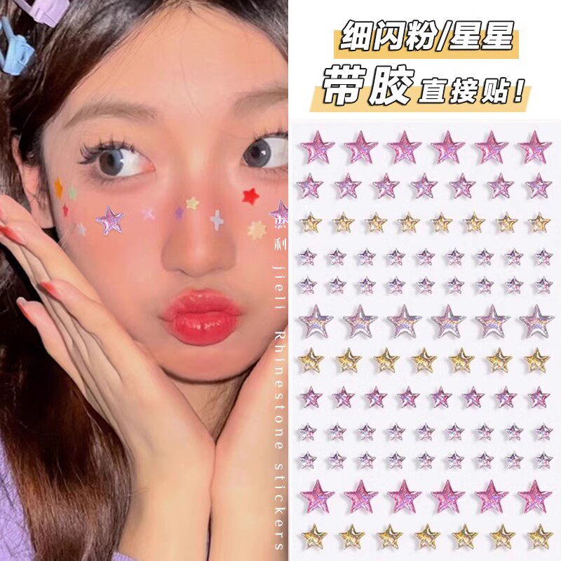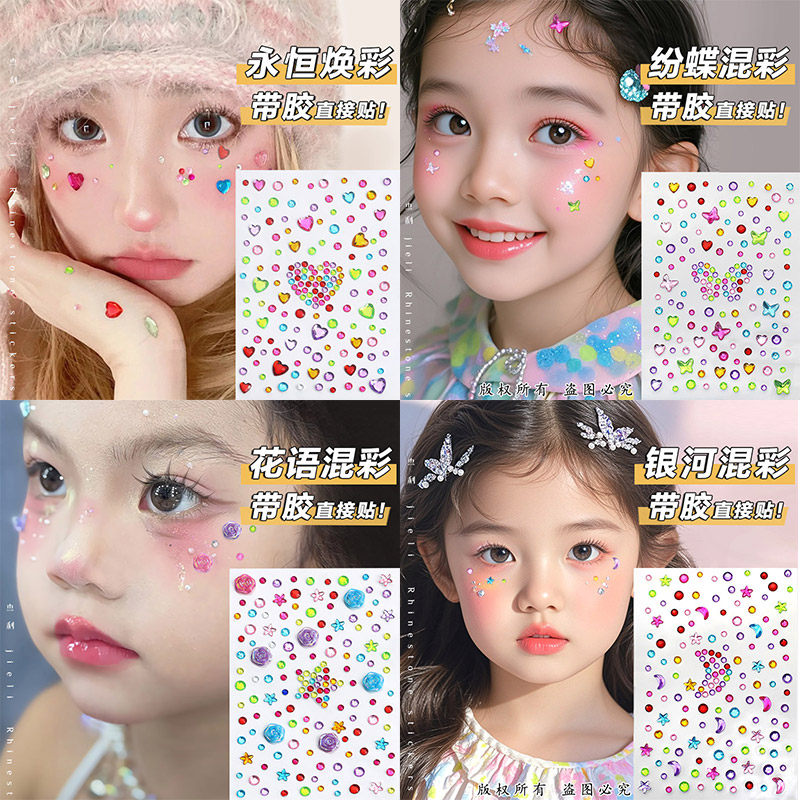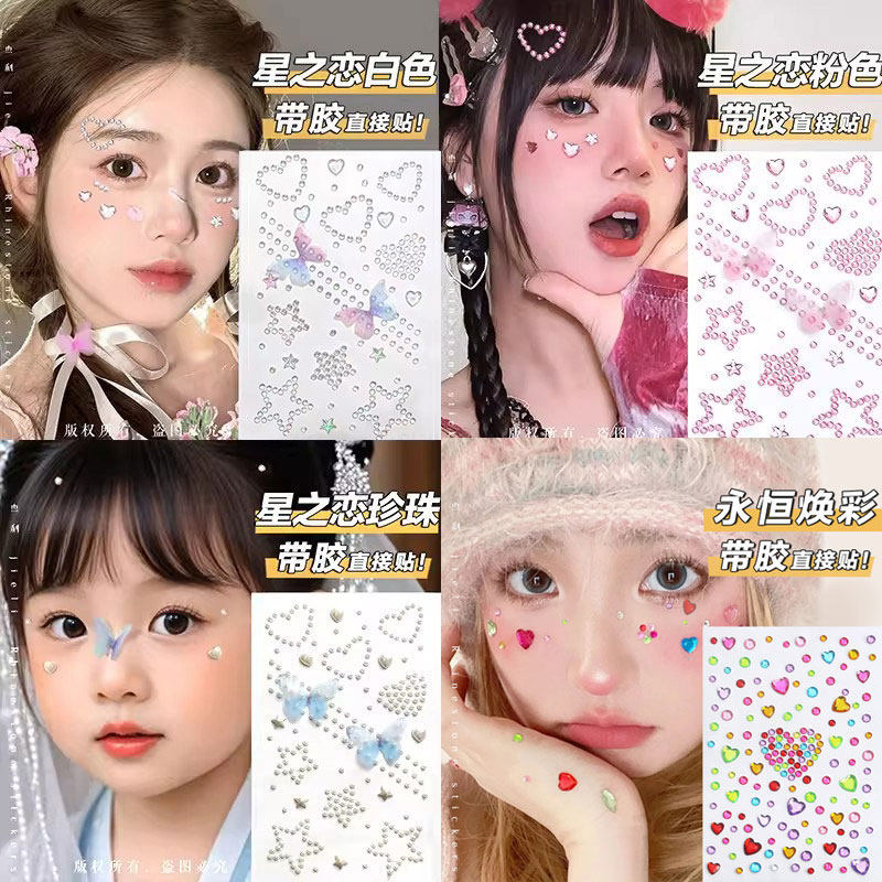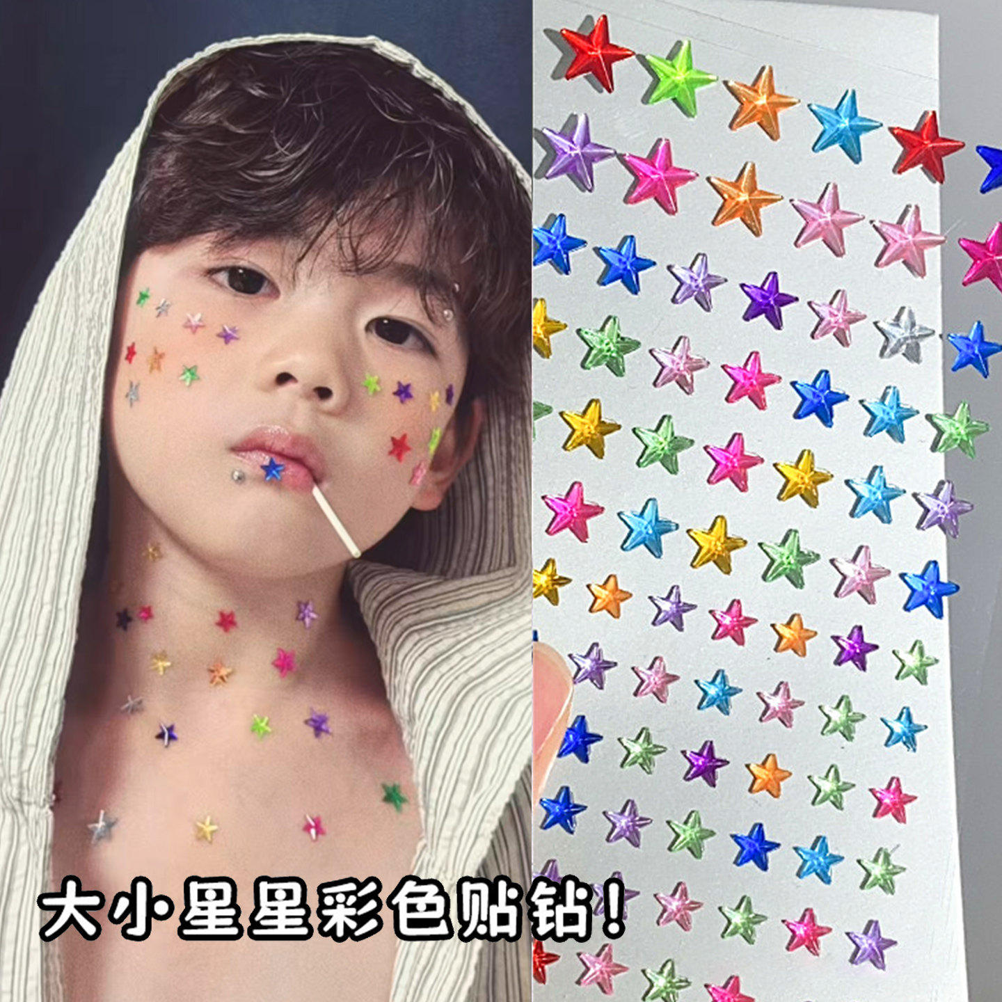 钻石星星贴纸脸部儿童宝石水晶奖励红色爱心女孩孕妇肚子立体珍珠彩色装饰拍照美甲演唱会舞台妆音乐节电音节