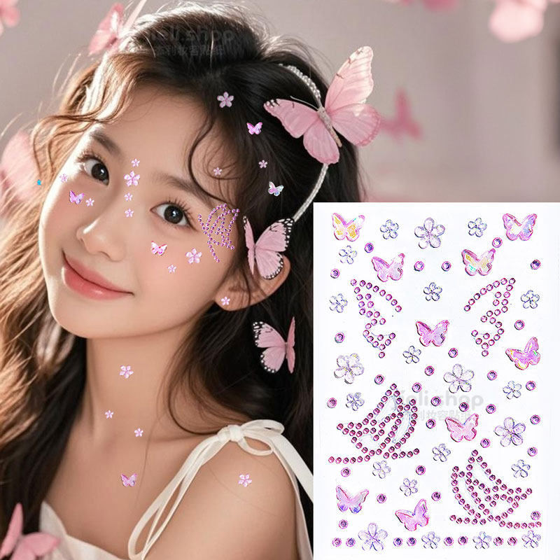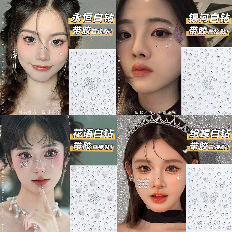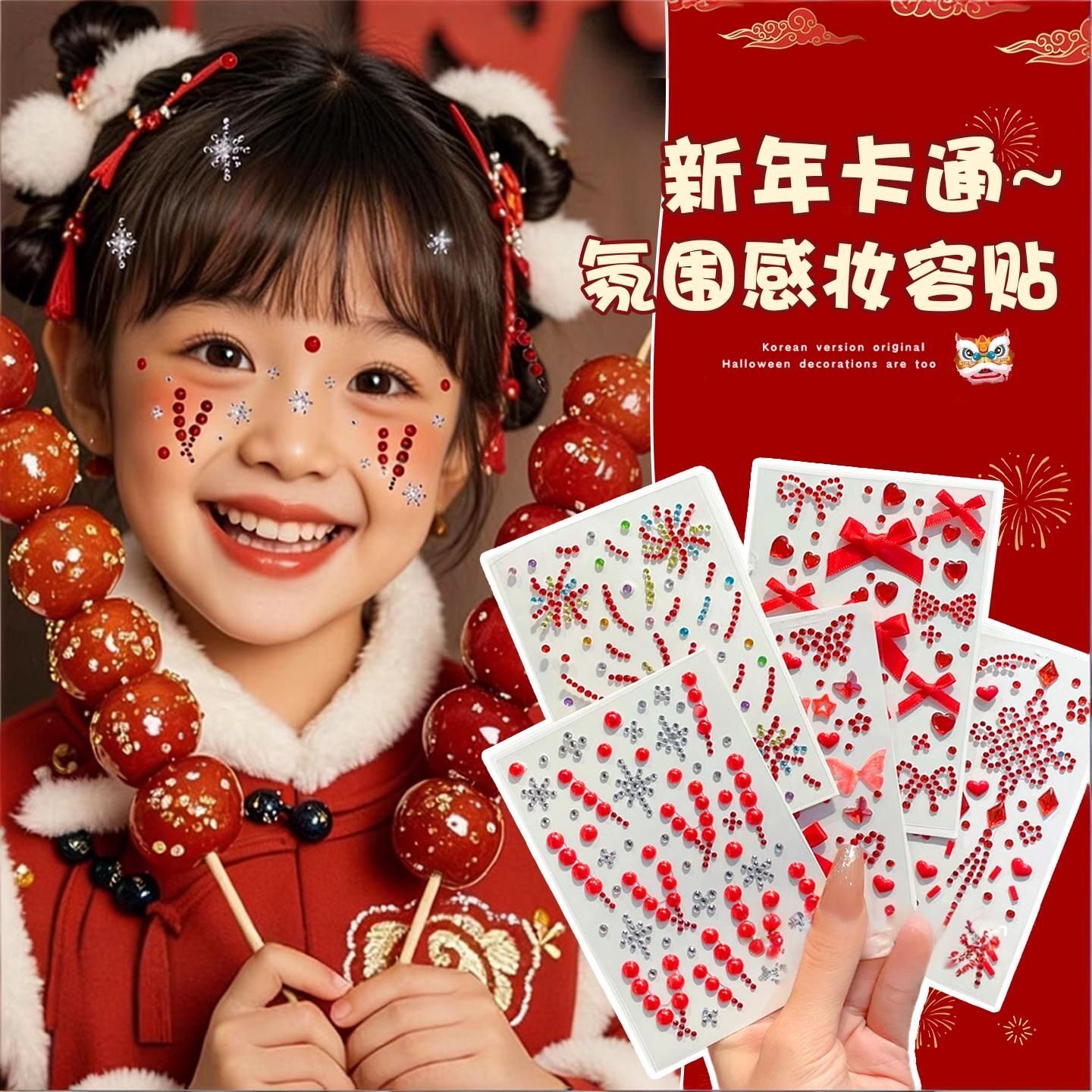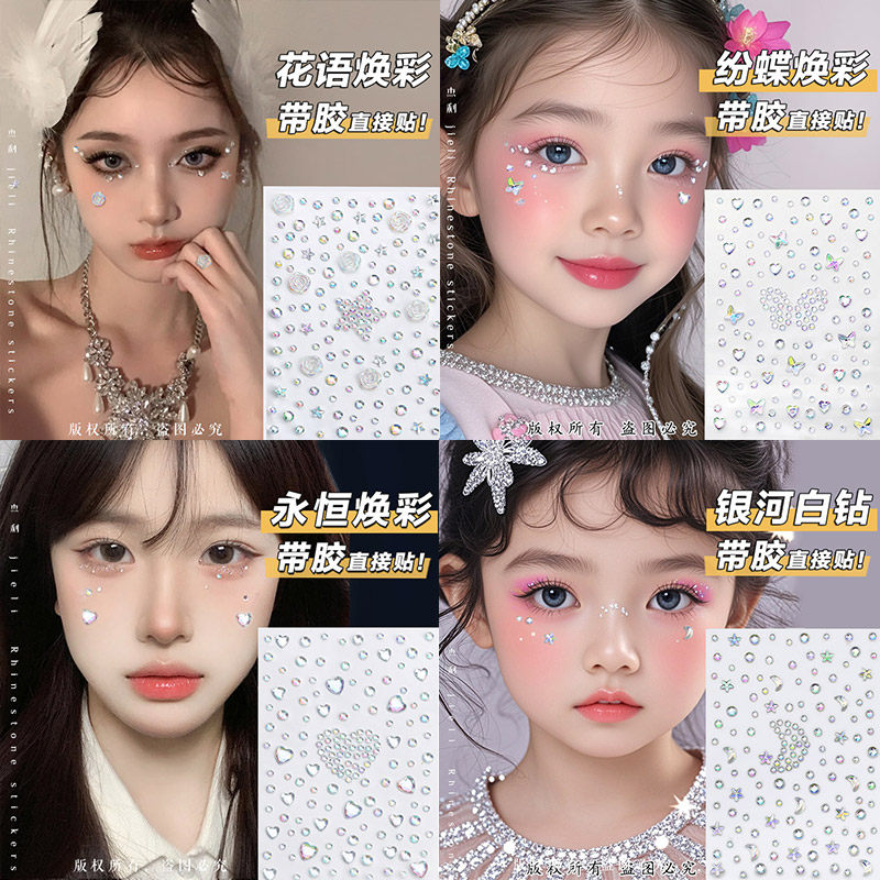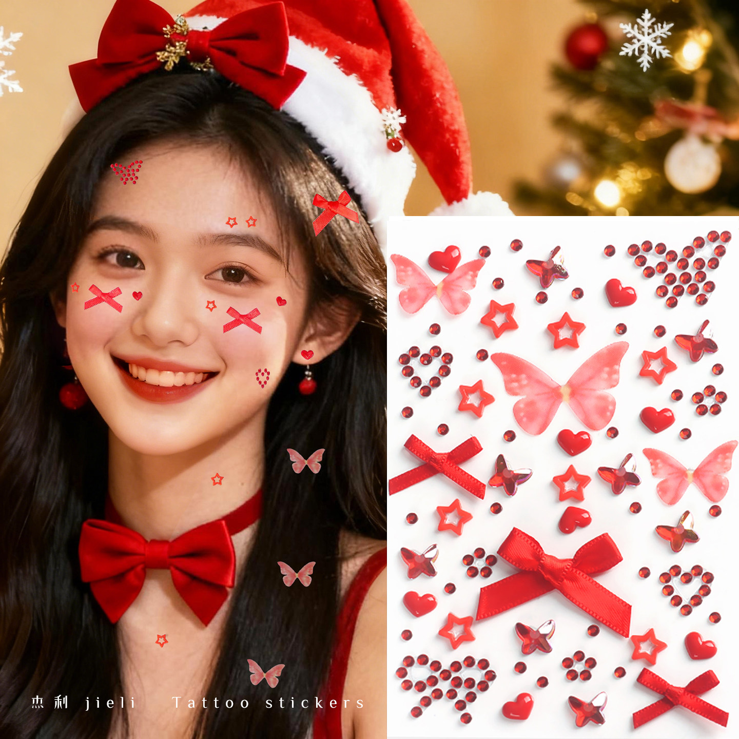 钻石星星贴纸脸部儿童宝石水晶奖励红色爱心女孩孕妇肚子立体珍珠彩色装饰拍照美甲演唱会舞台妆音乐节电音节