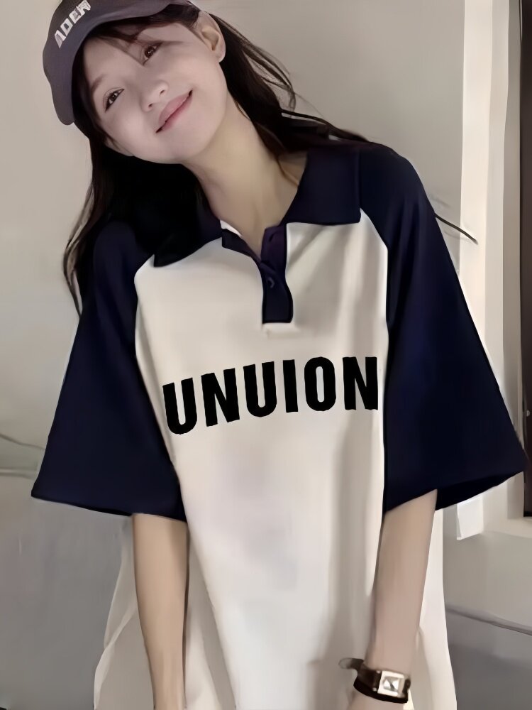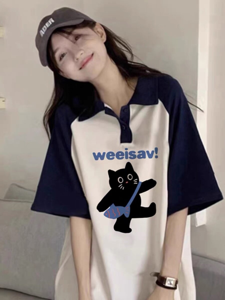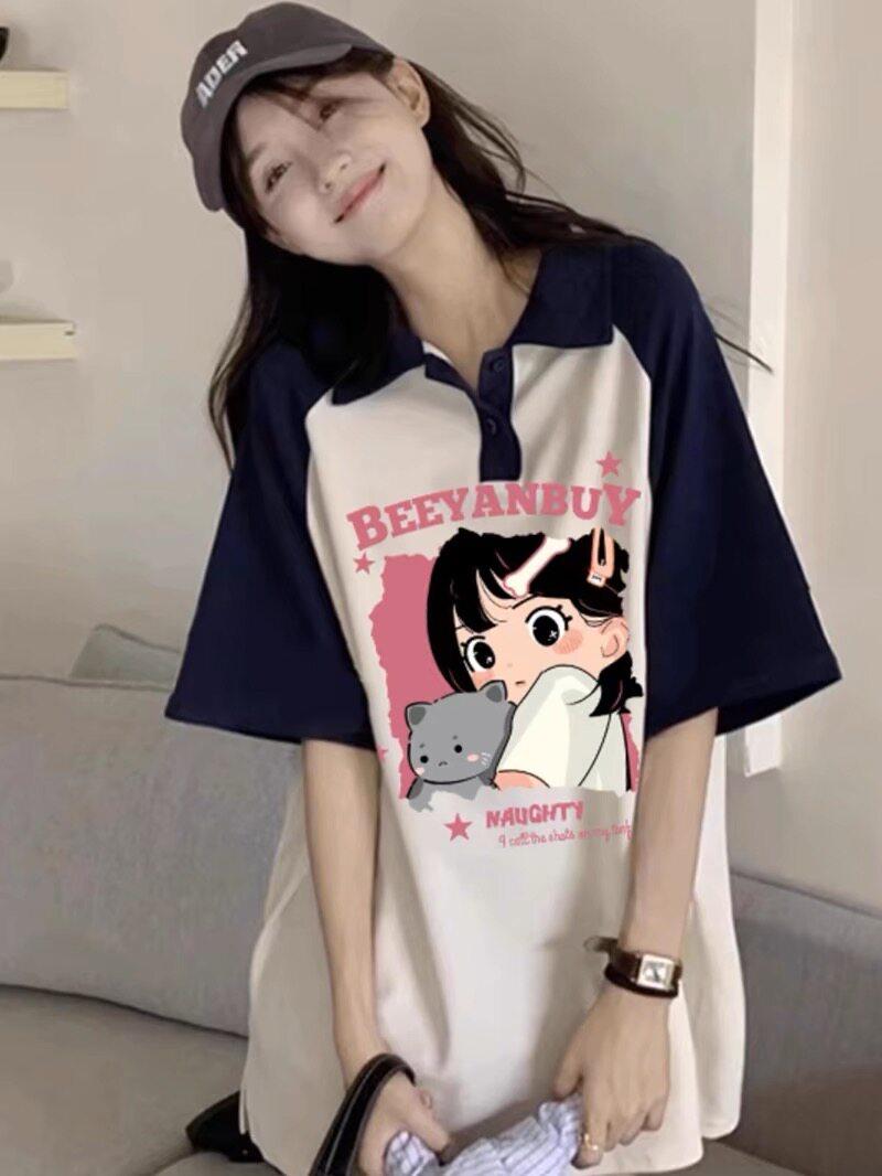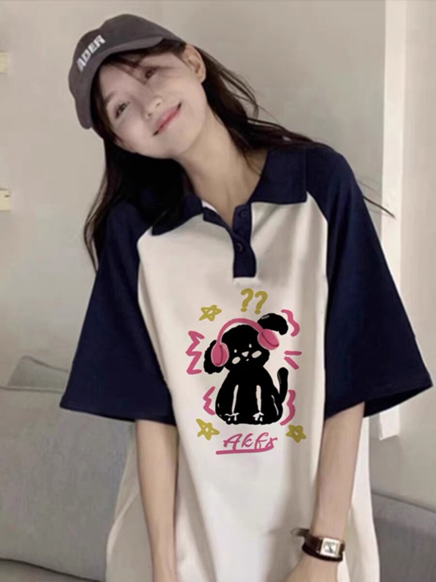 大童少女拼色POLO衫短袖t恤女夏季2026新款初中学生宽松半袖上衣