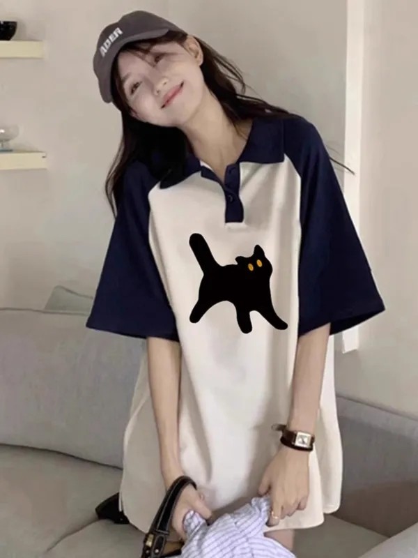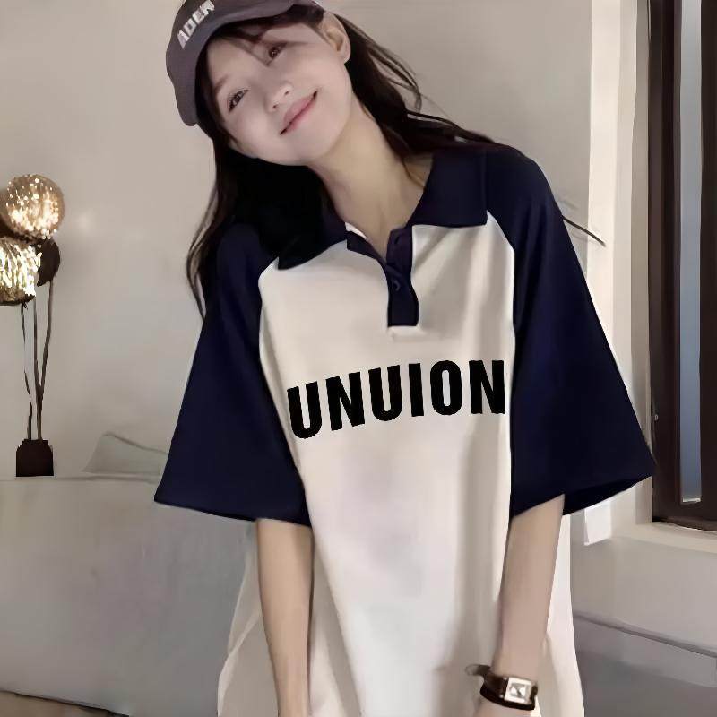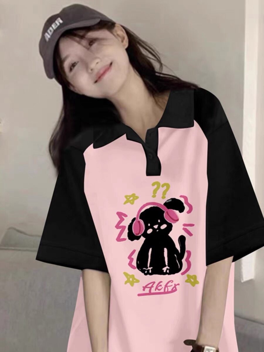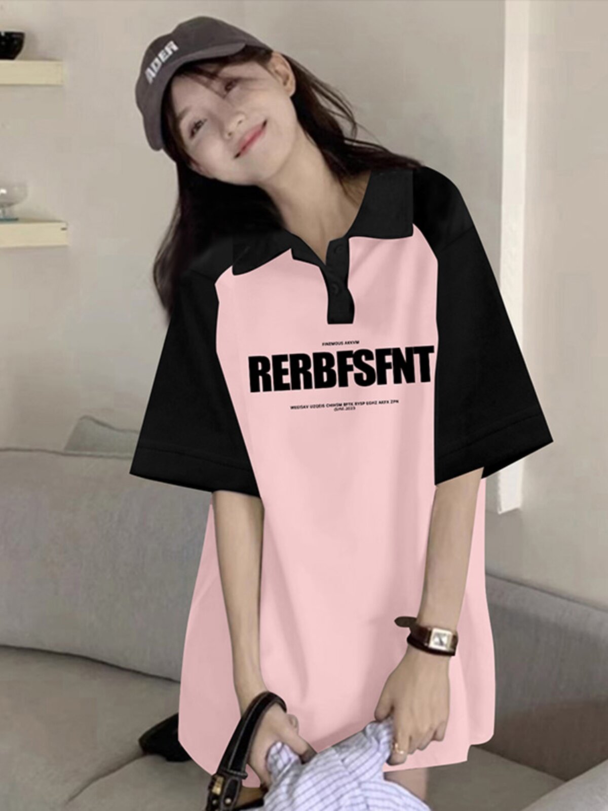 大童少女拼色POLO衫短袖t恤女夏季2026新款初中学生宽松半袖上衣