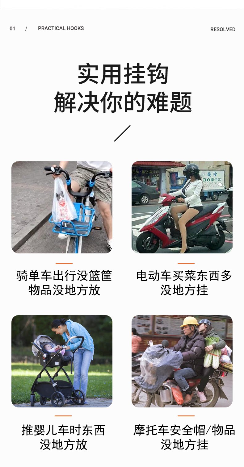 电动车挂钩前置通用万能自行车摩托车电车挂物钩头盔外卖专用挂扣