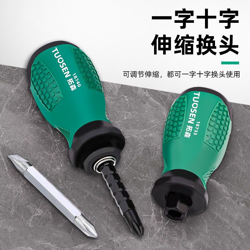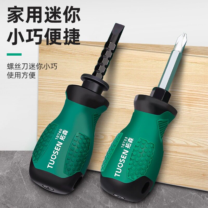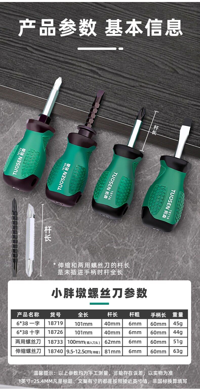 迷你十字螺丝刀小胖墩带磁起子可伸缩两用改锥家用短款一字螺丝批