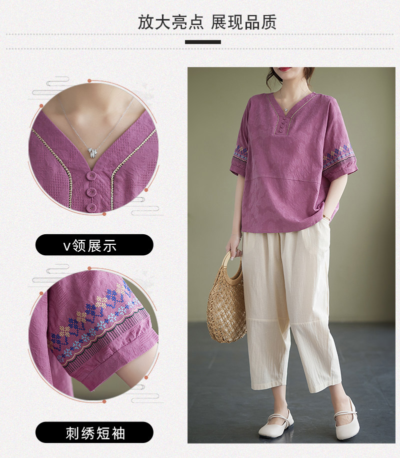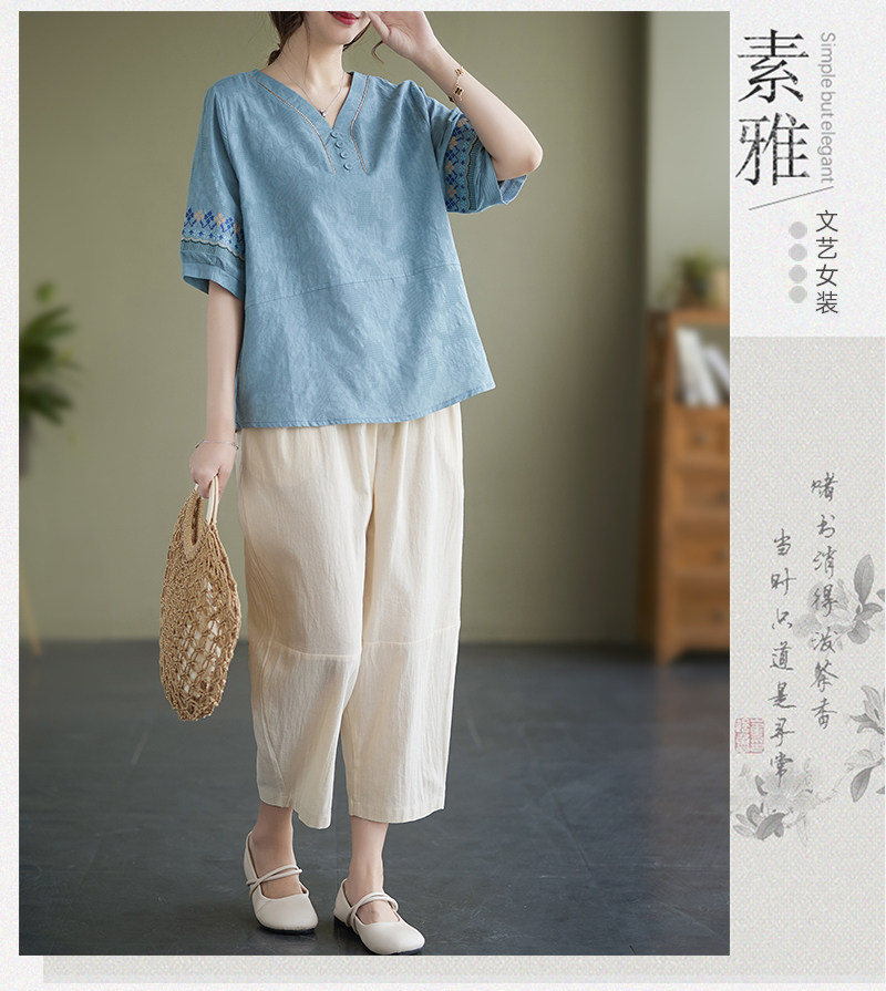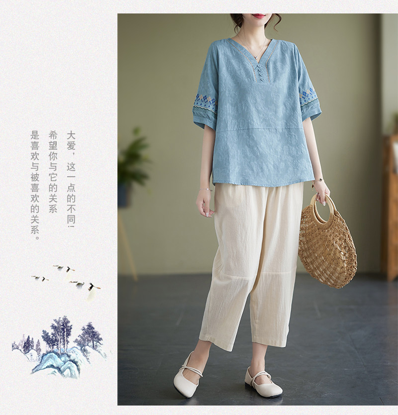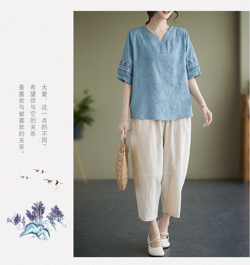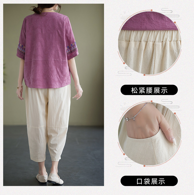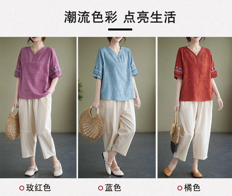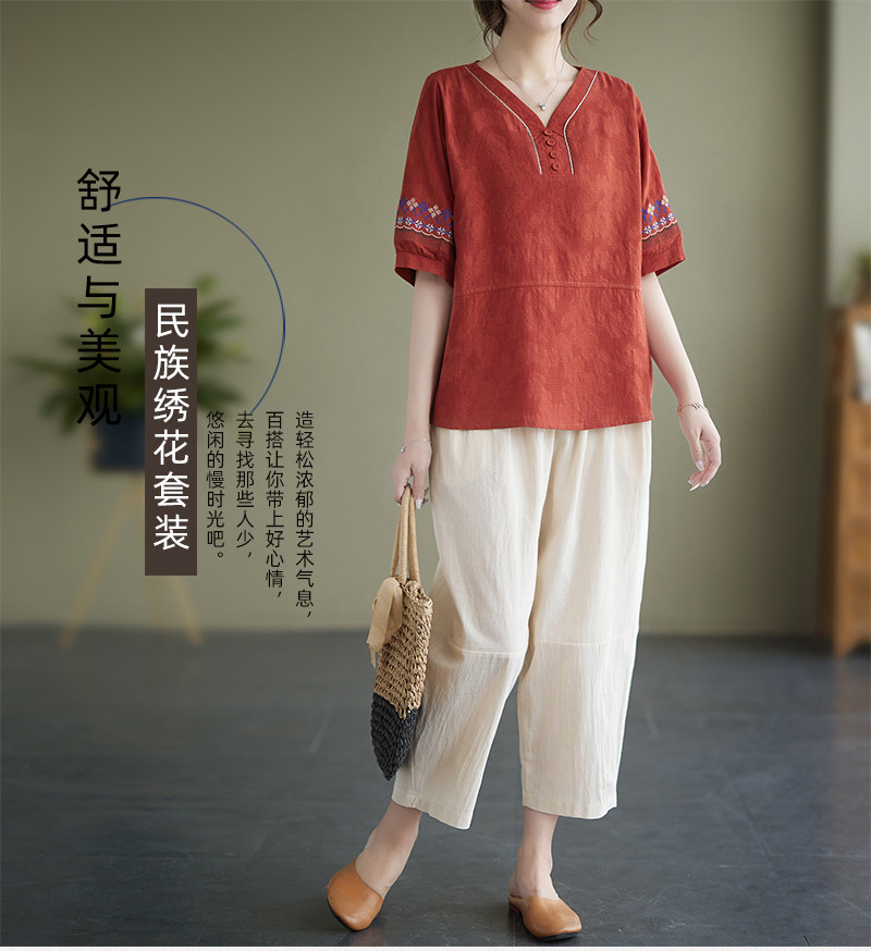 2026新款民族风夏装套装女上衣夏季新款中老年妈妈宽松减龄两件套
