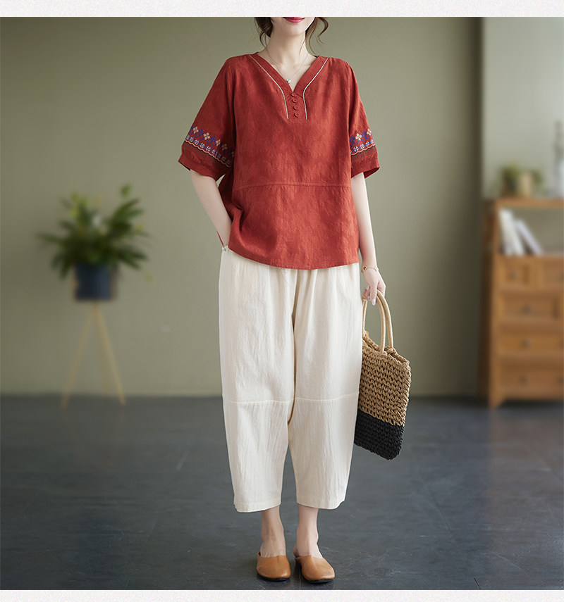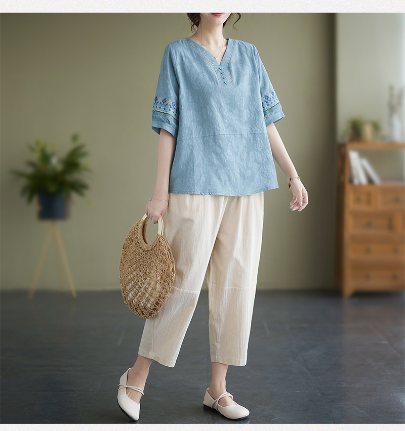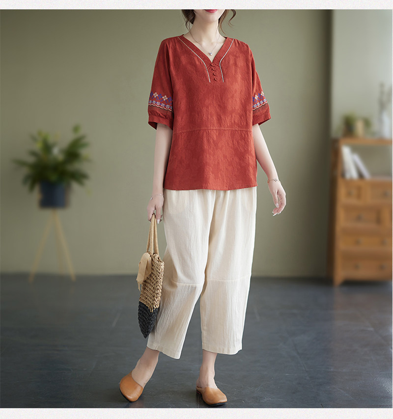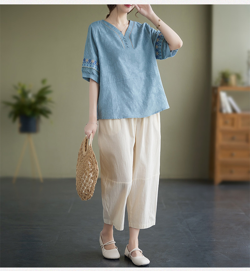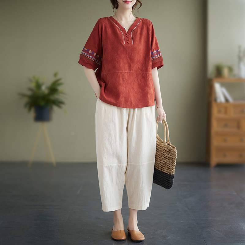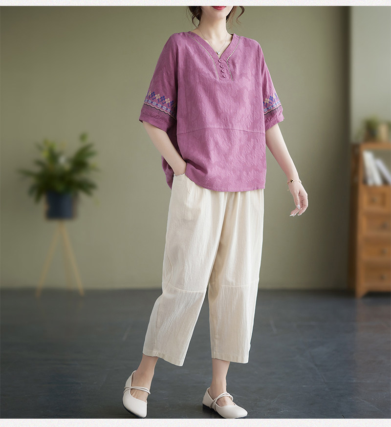 2026新款民族风夏装套装女上衣夏季新款中老年妈妈宽松减龄两件套
