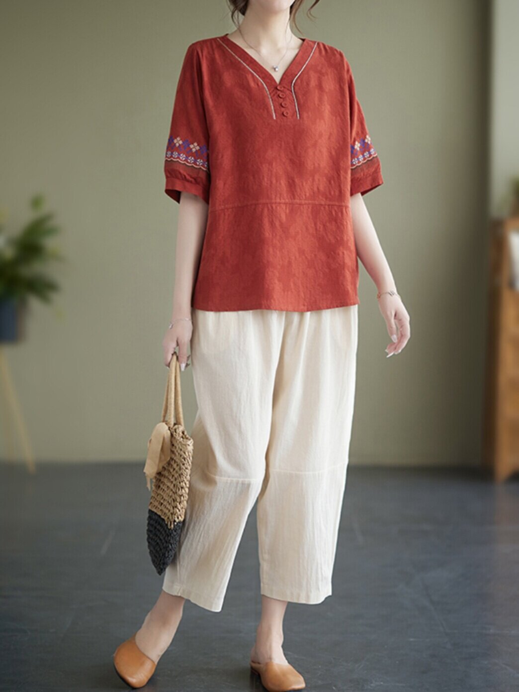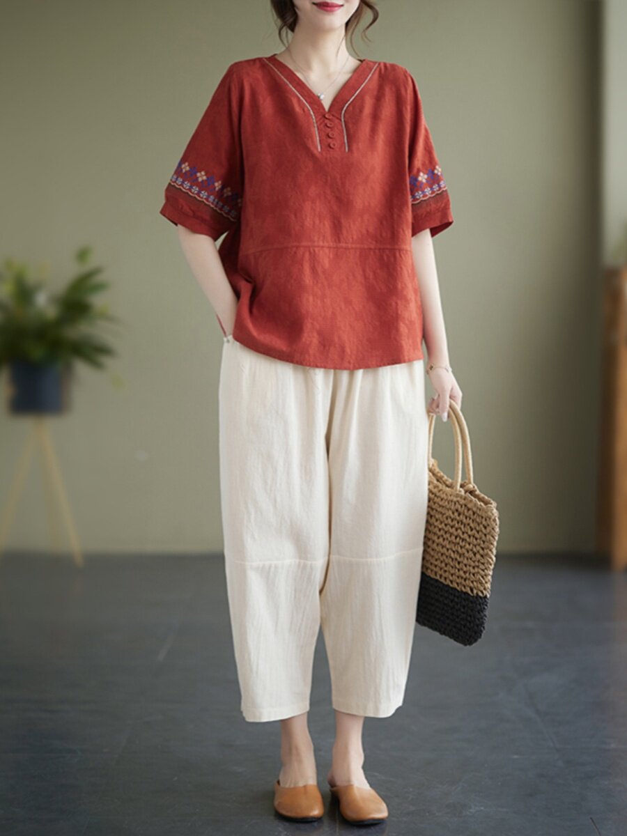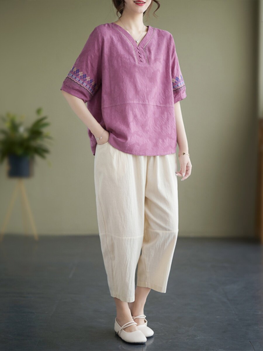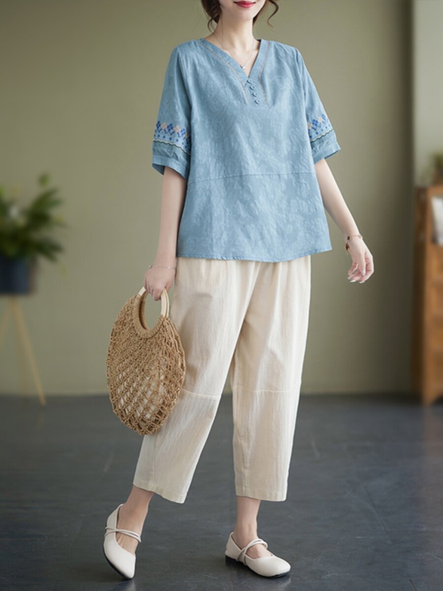 2026新款民族风夏装套装女上衣夏季新款中老年妈妈宽松减龄两件套