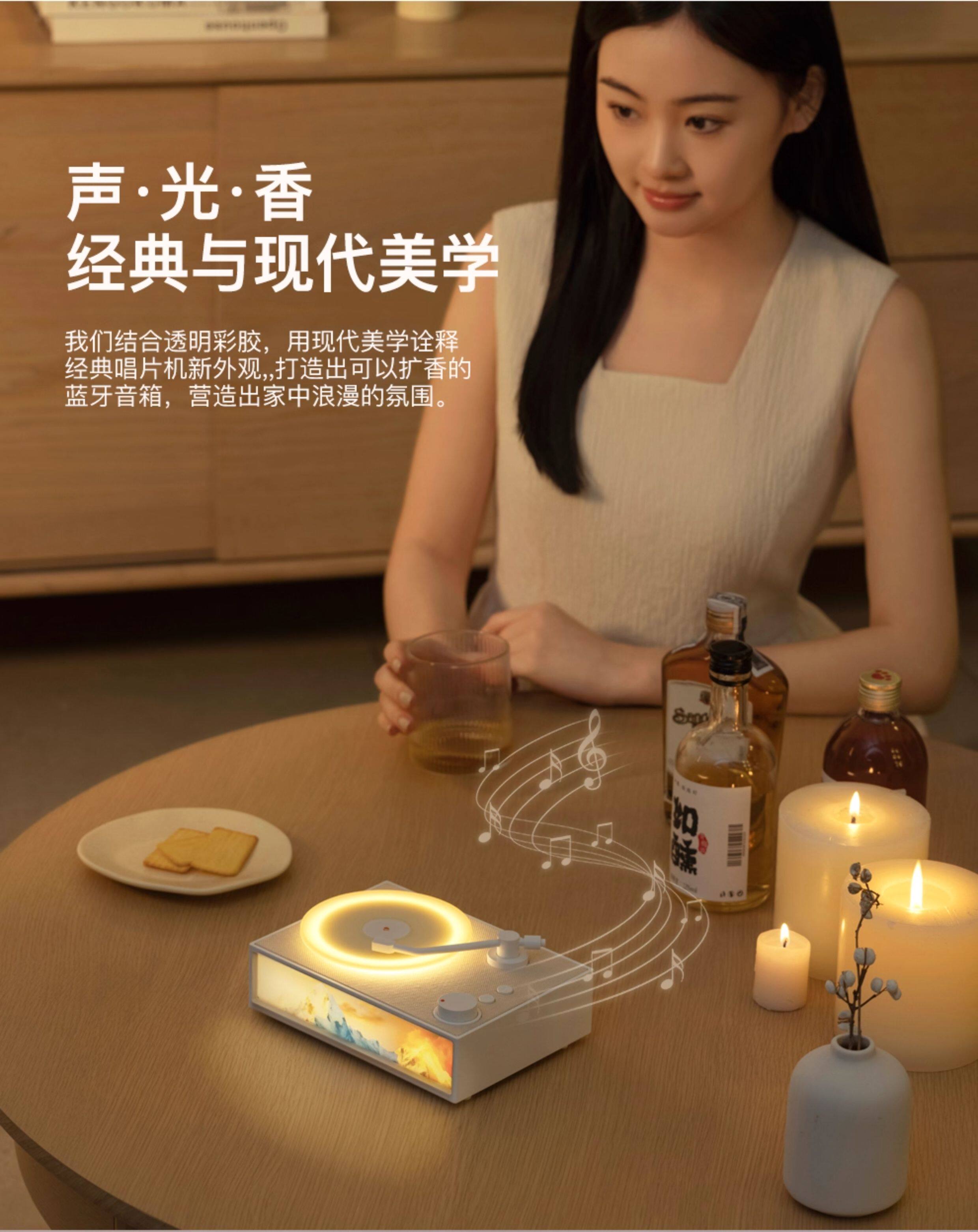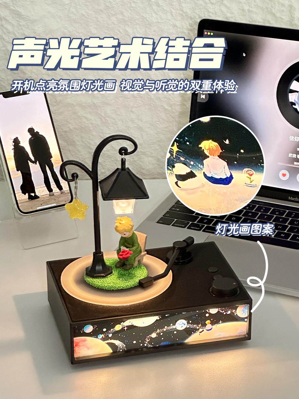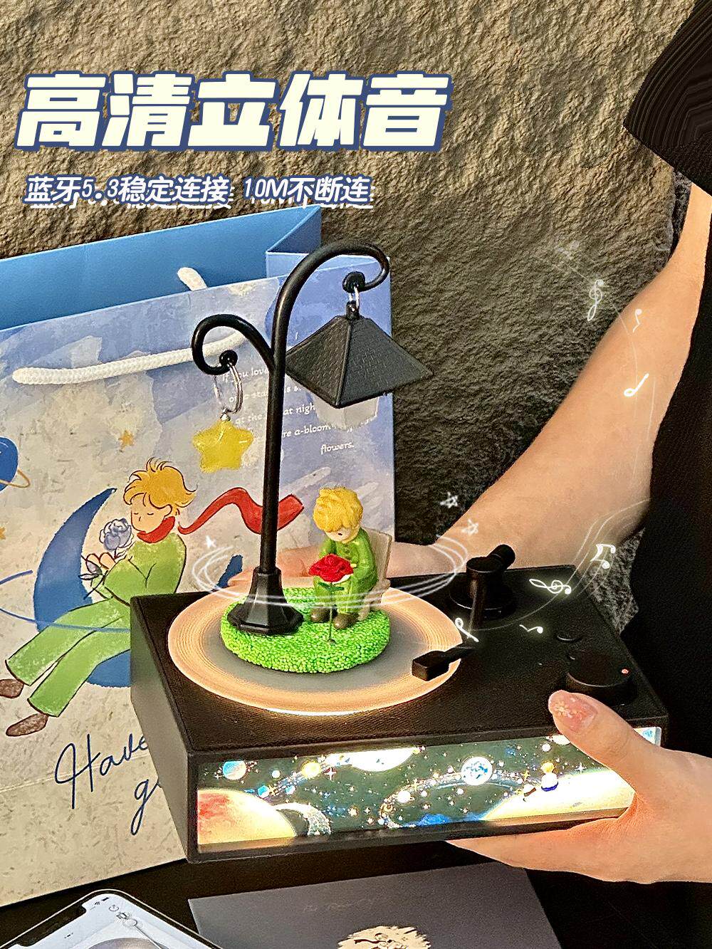香薰夜灯音响-黑色+路灯小王子摆件