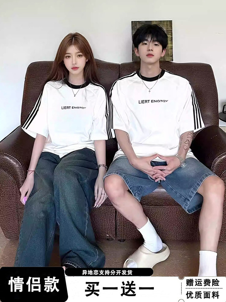 不一样网红情侣装t恤2026新款夏装高质量短袖小众disoo衣服三条杠