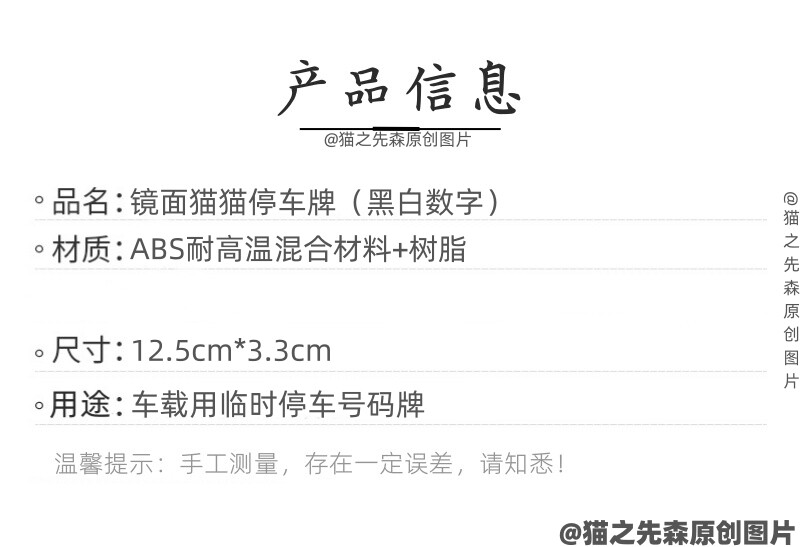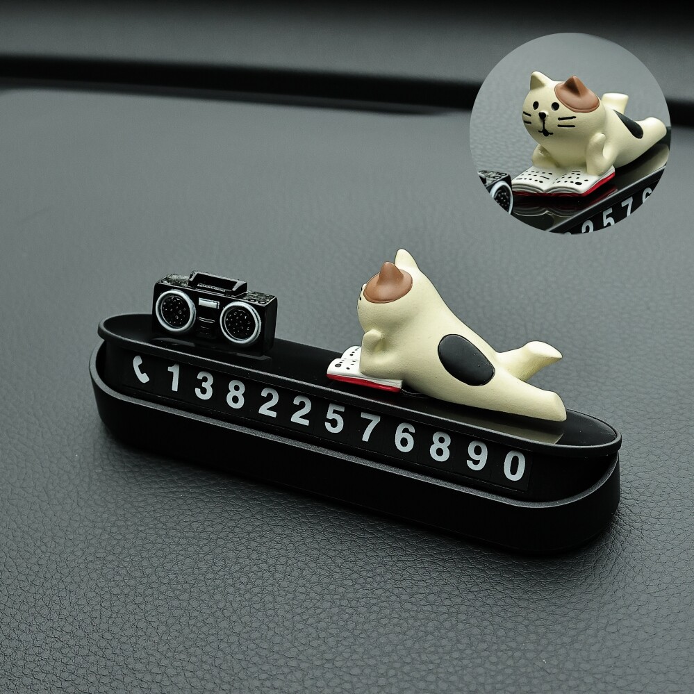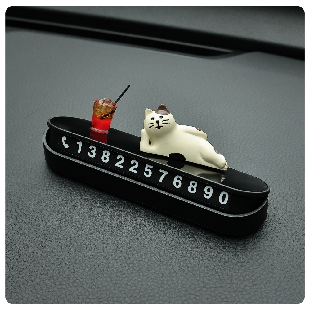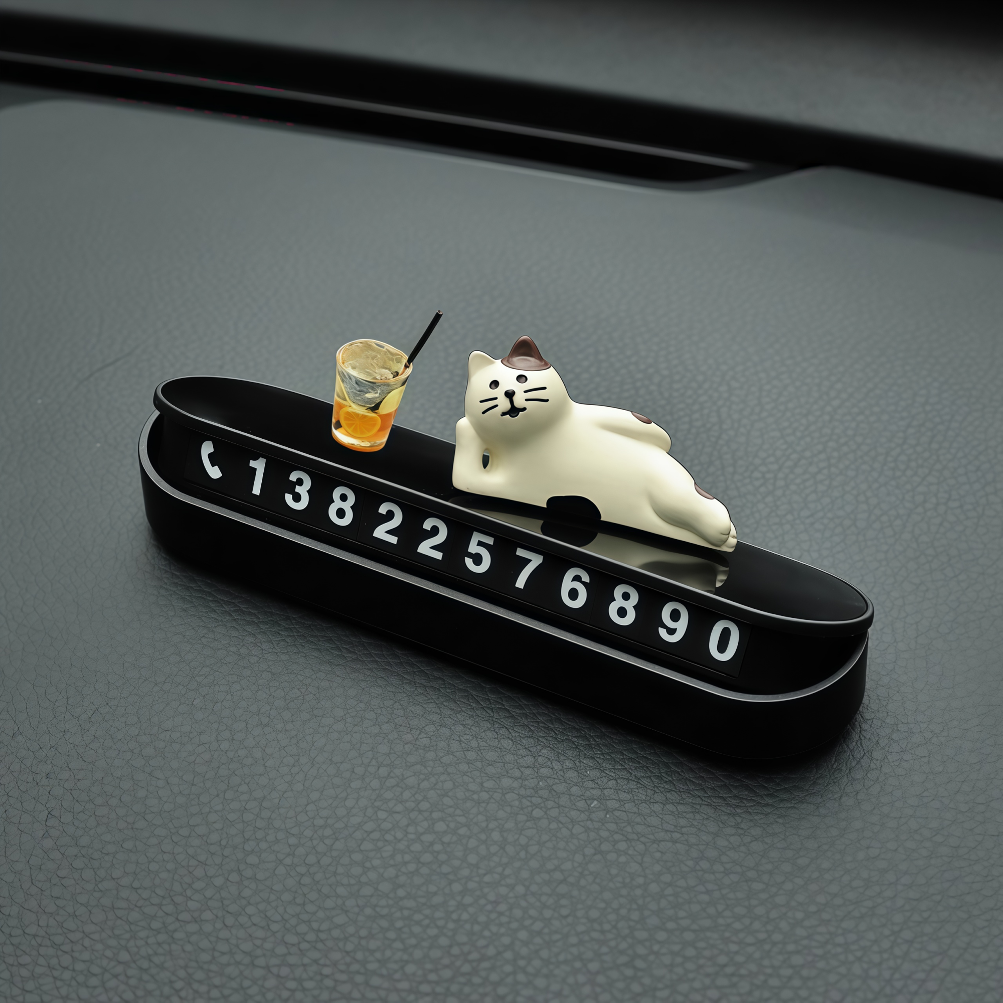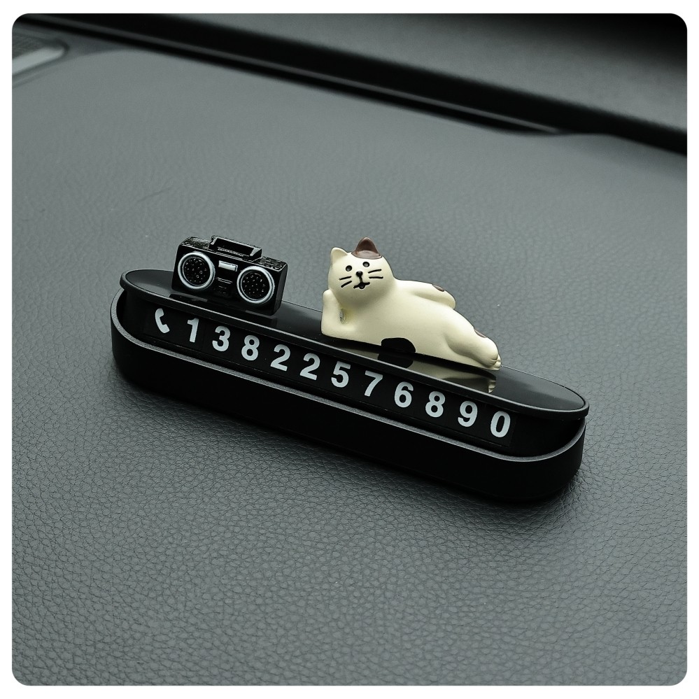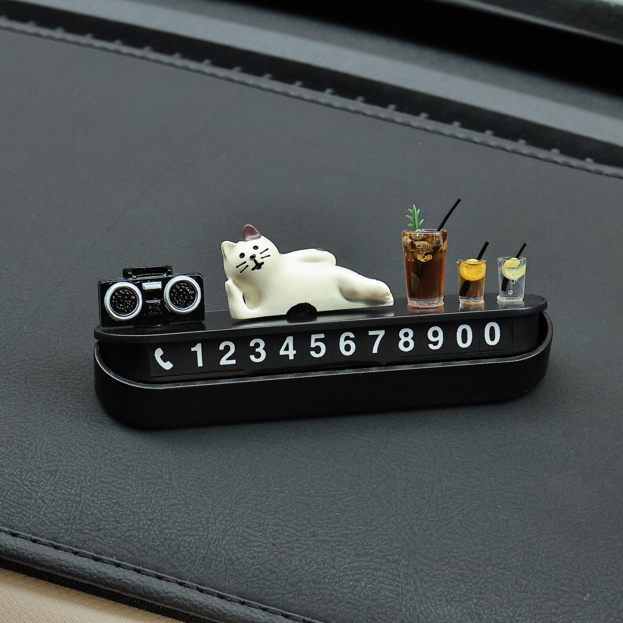黑白数字猫猫挪车电话牌可爱临时停车号码牌车载内饰创意2026新款