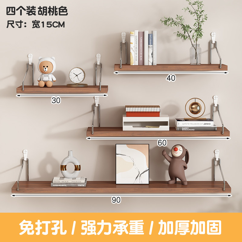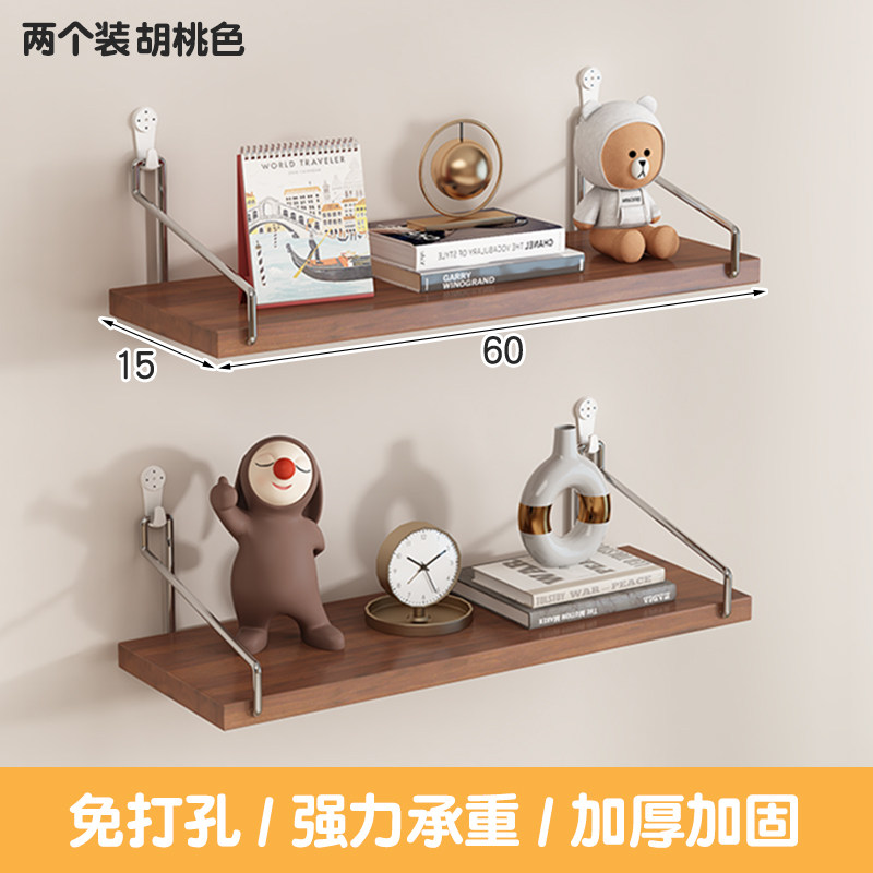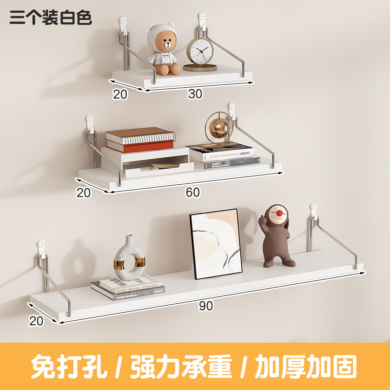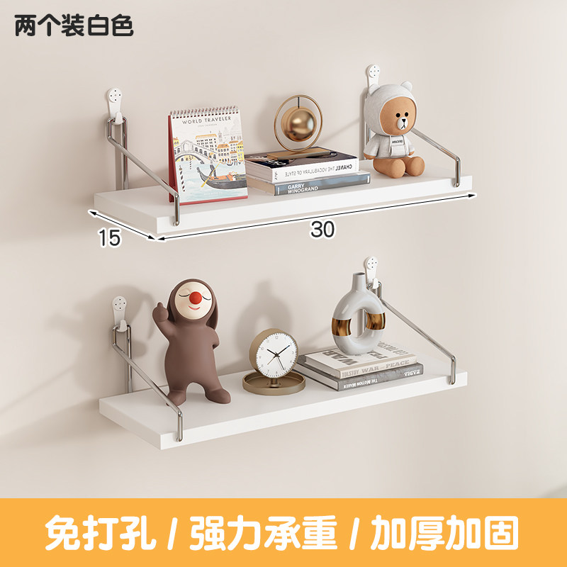 墙上置物架床头壁挂免打孔隔板客厅墙面投影仪路由器架子挂墙书架