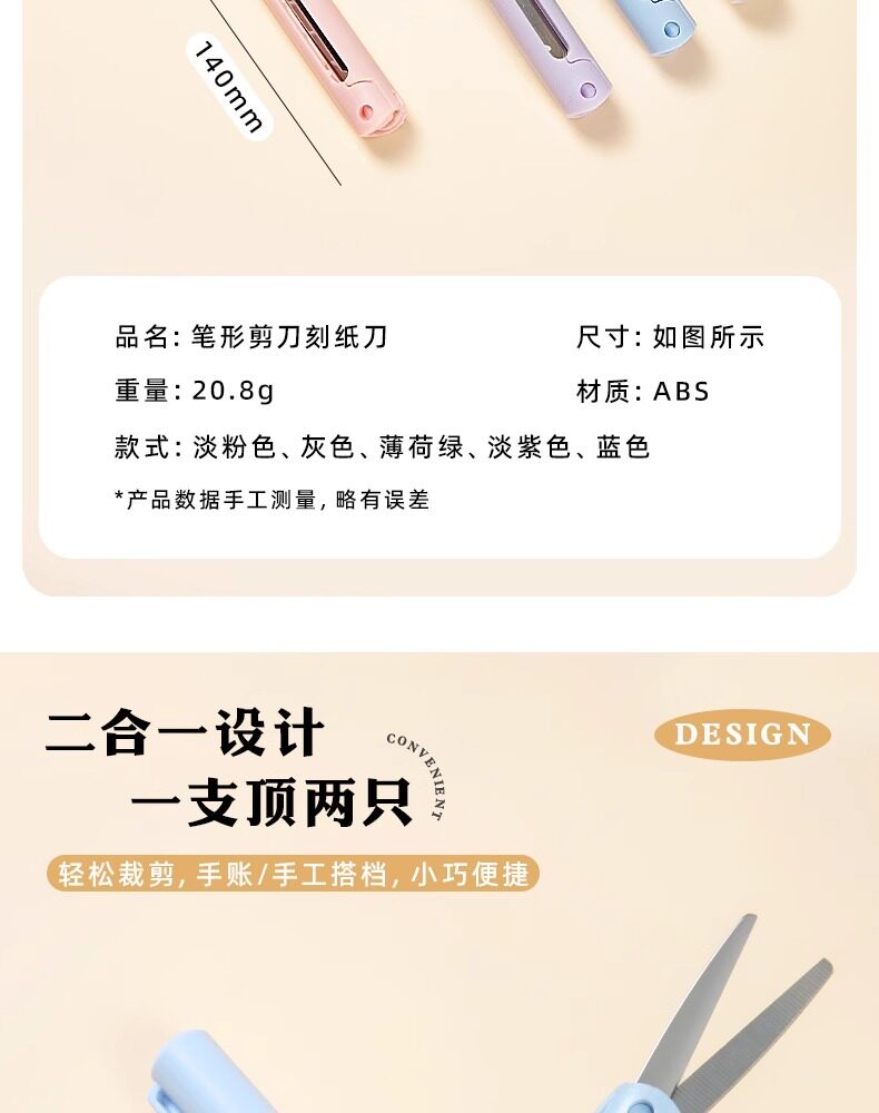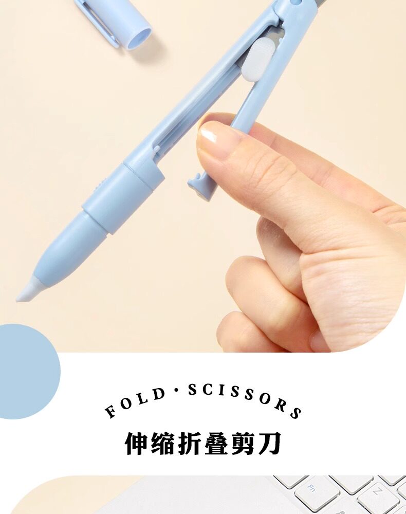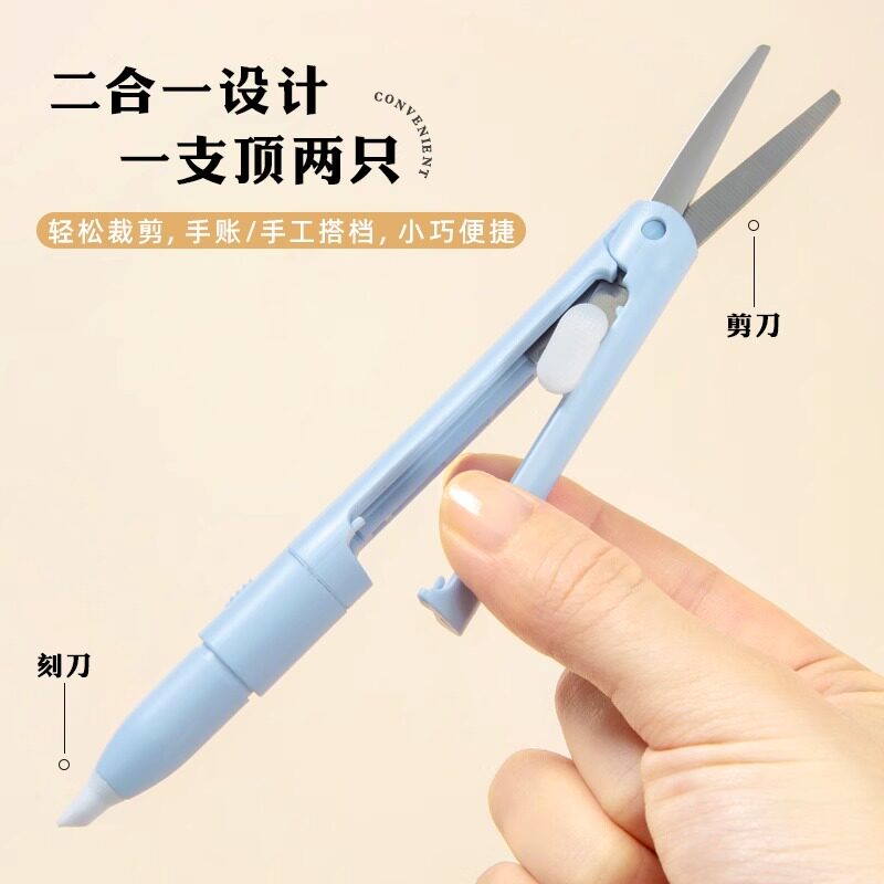 二合一折叠笔式剪刀刻纸刀学生小型迷你剪刀多功能手账裁切笔刀