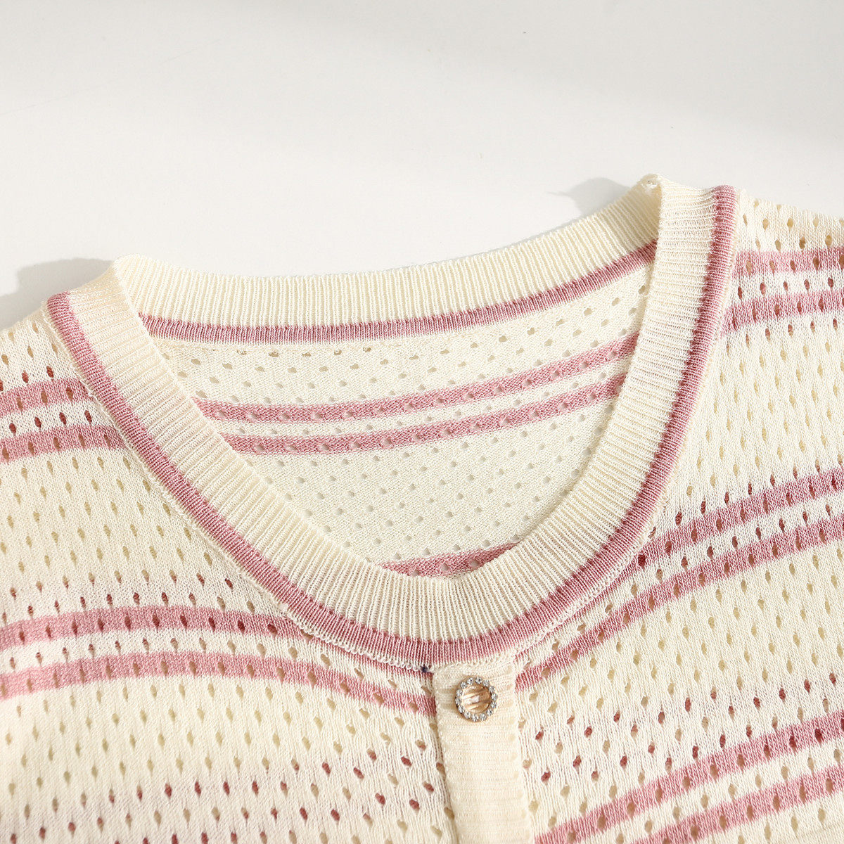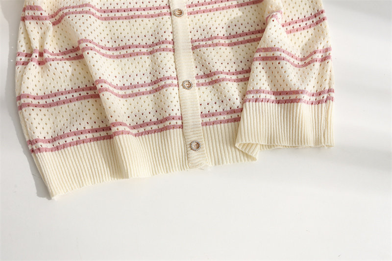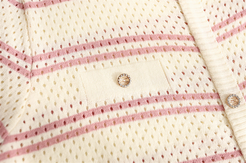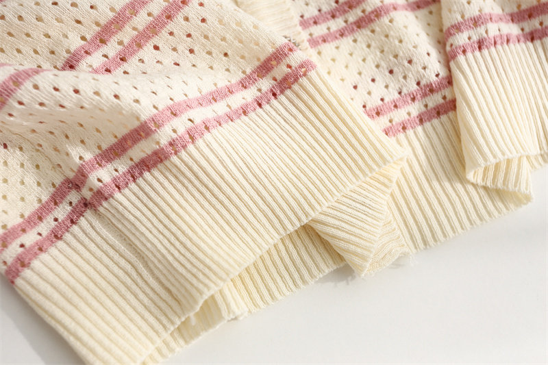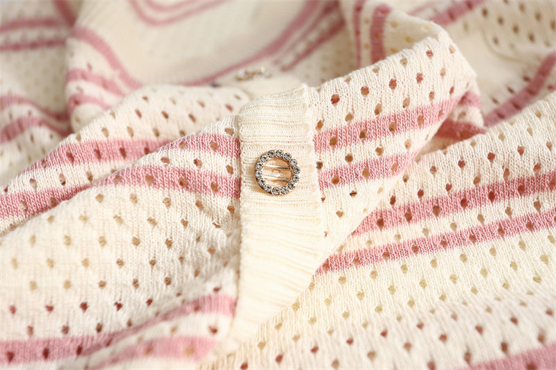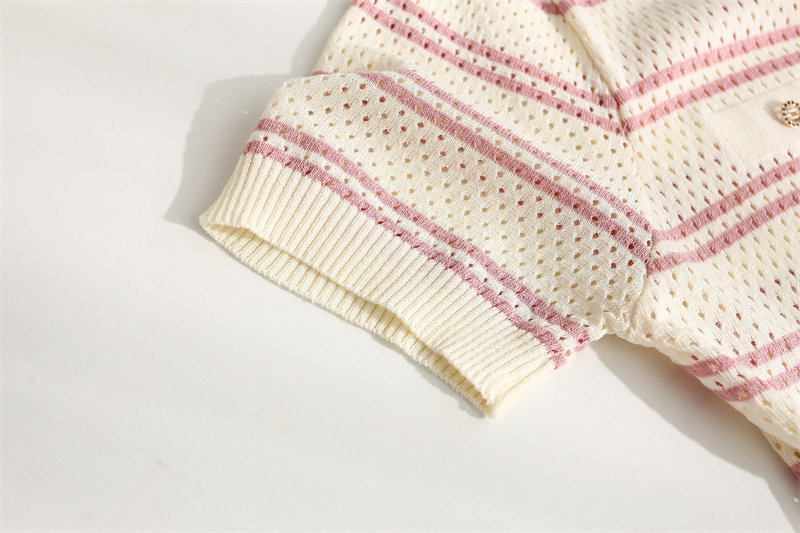 条纹针织短袖女2026夏装新款冰丝针织衫宽松上衣T恤小香风薄