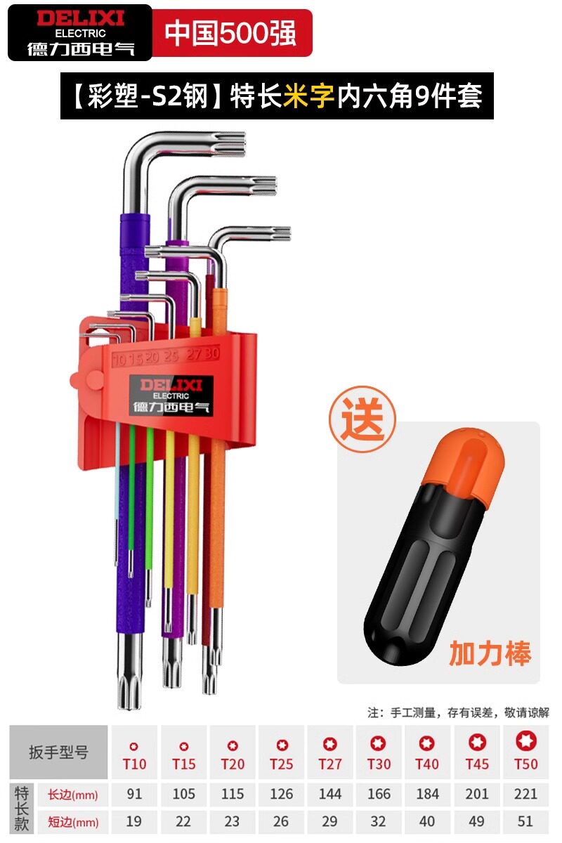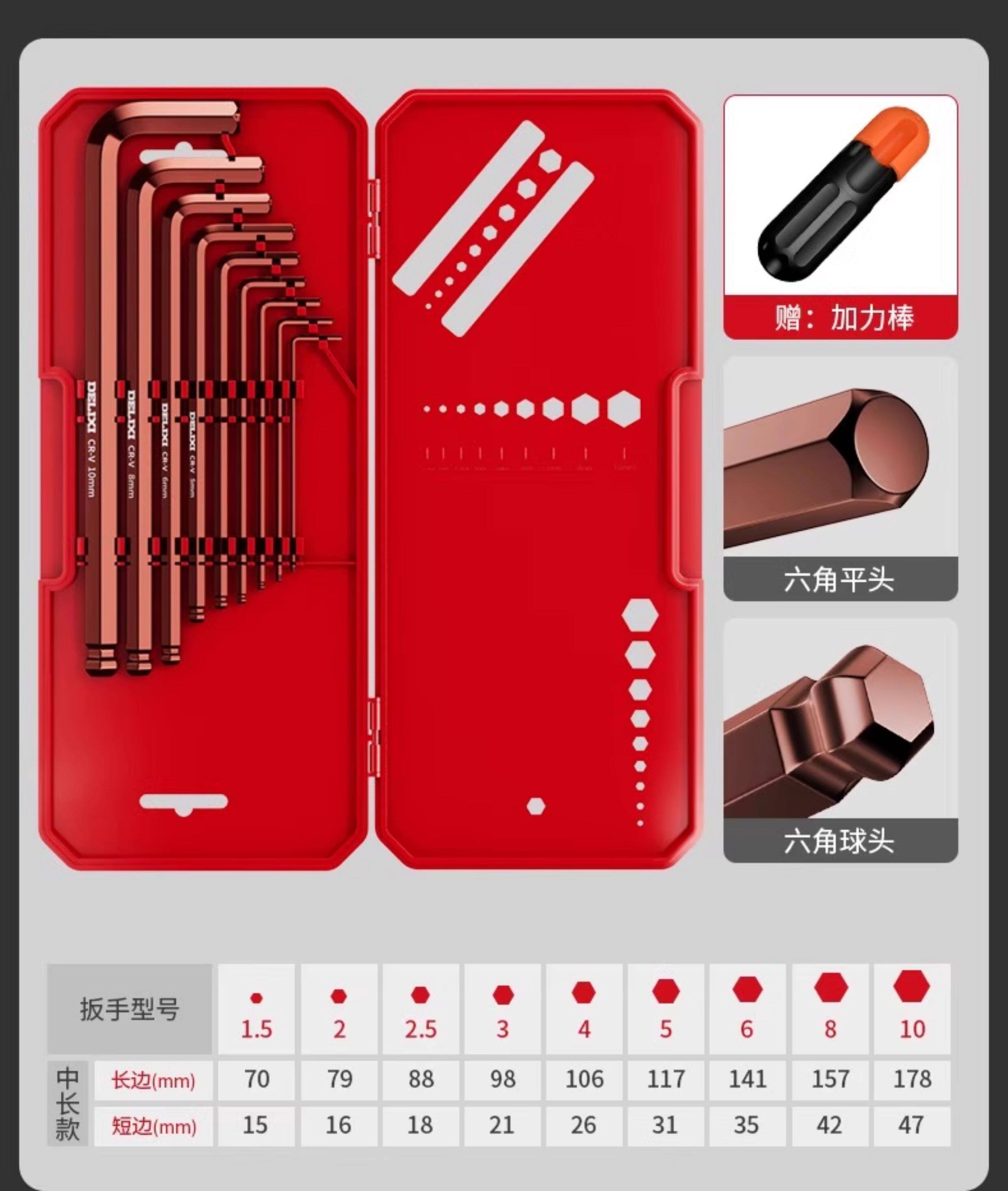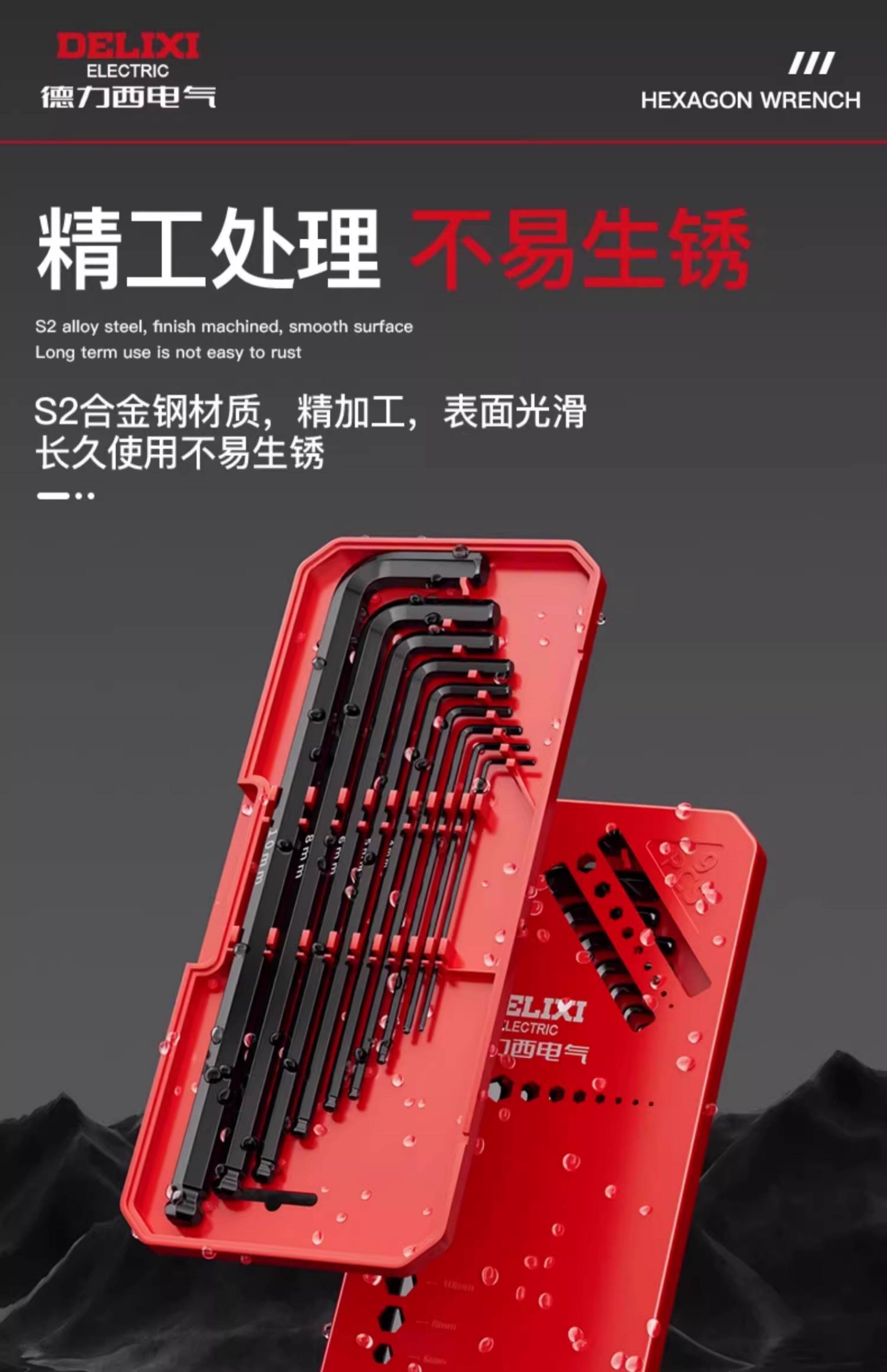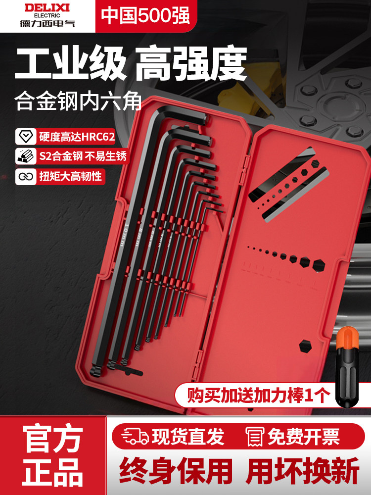 HomeProducts德力西电气高硬度内六角扳手套装加长梅花螺丝刀工具六棱六方6匙