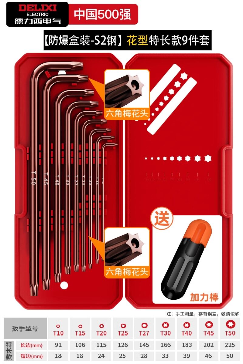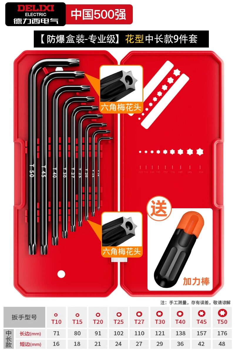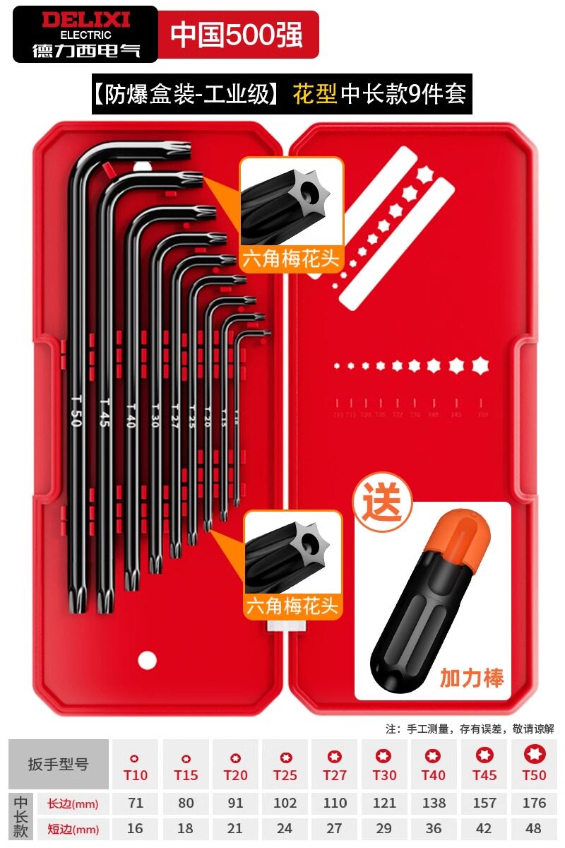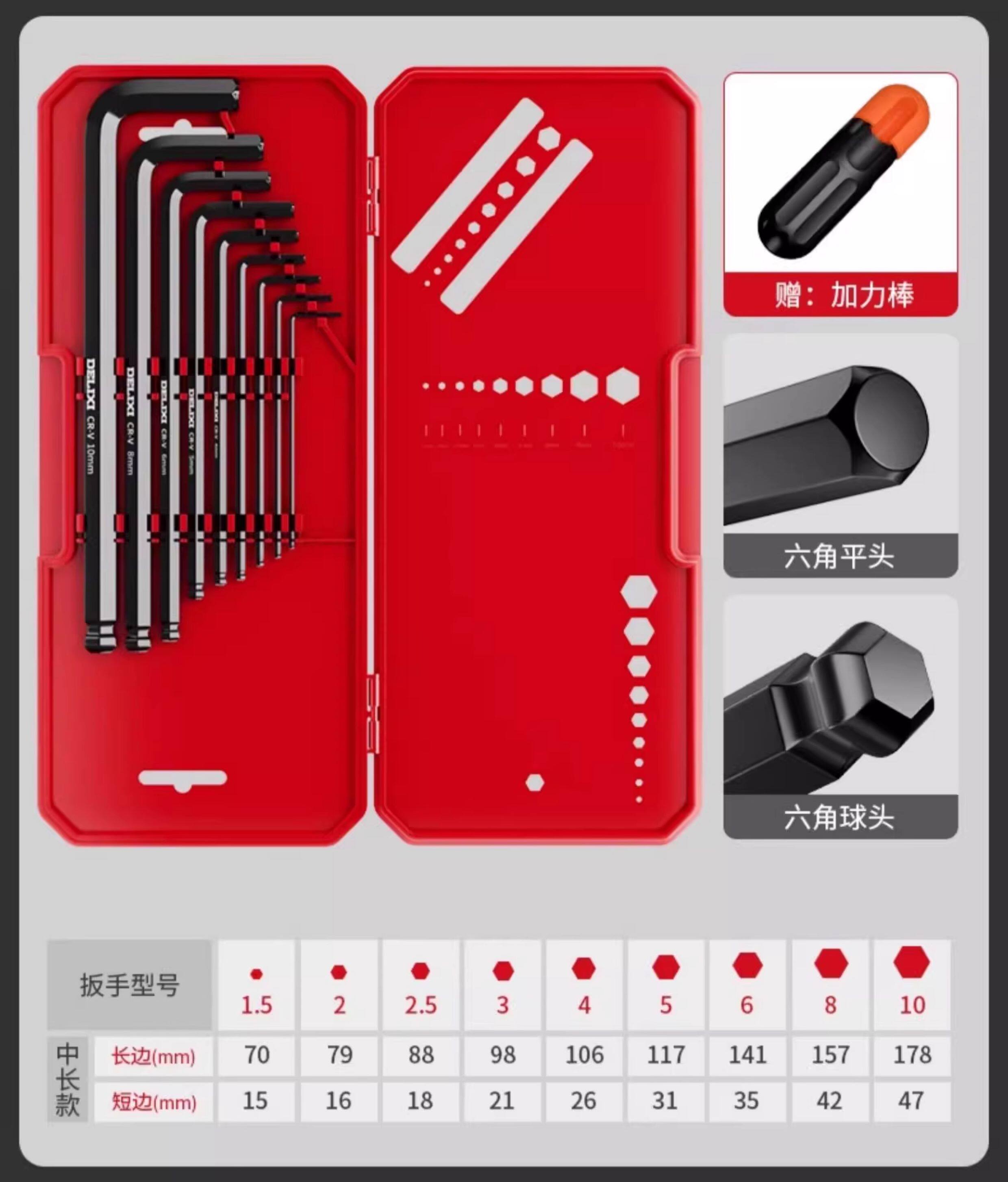 HomeProducts德力西电气高硬度内六角扳手套装加长梅花螺丝刀工具六棱六方6匙
