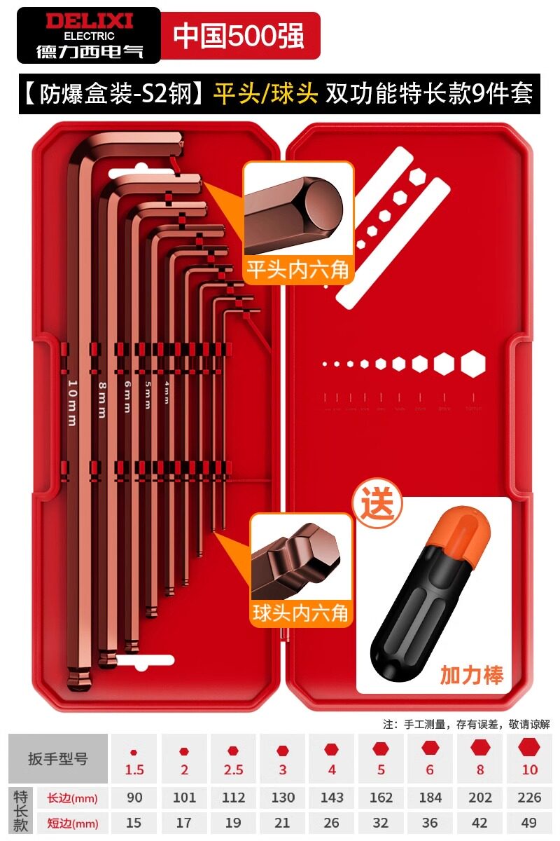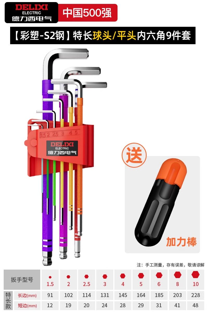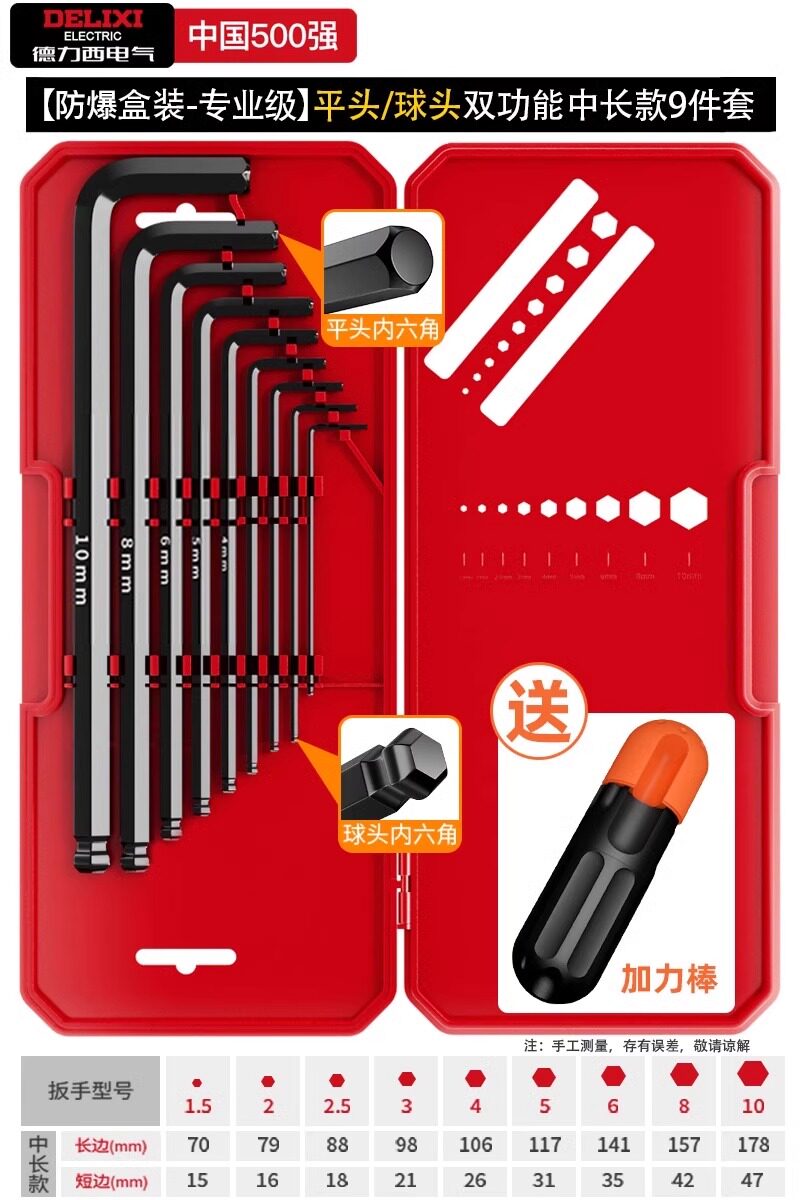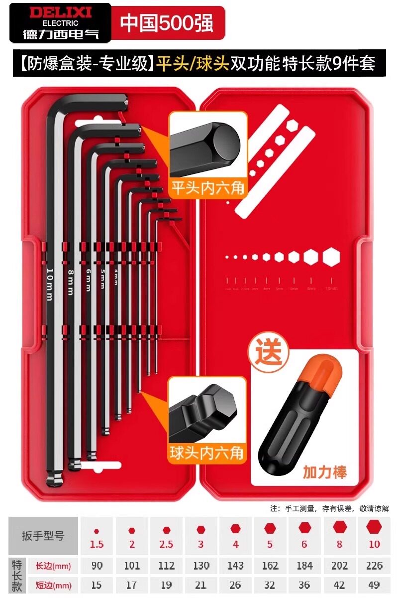 德力西电气高硬度内六角扳手套装加长梅花螺丝刀工具六棱六方6匙
