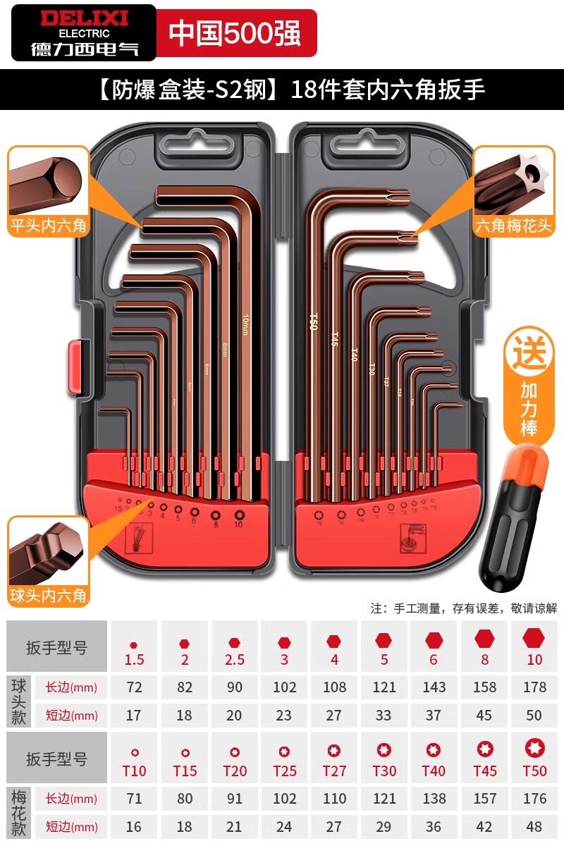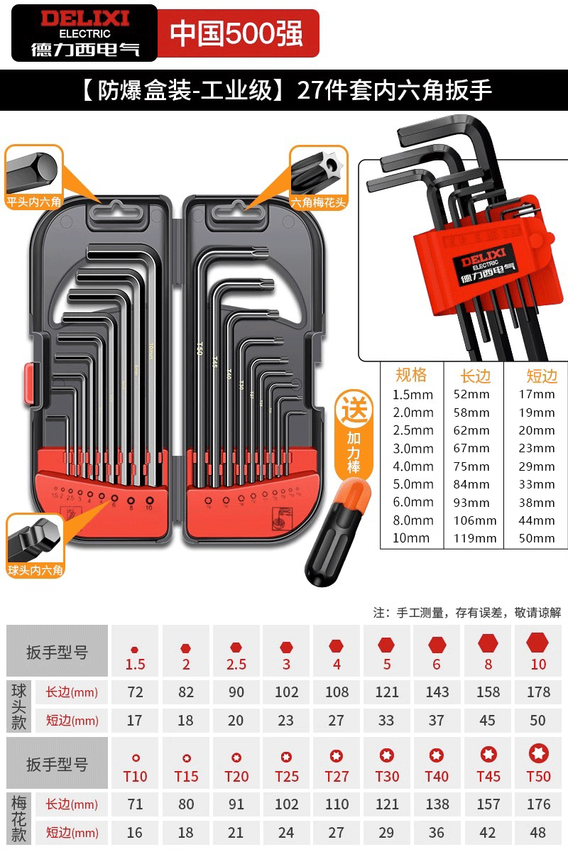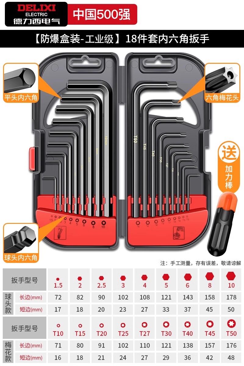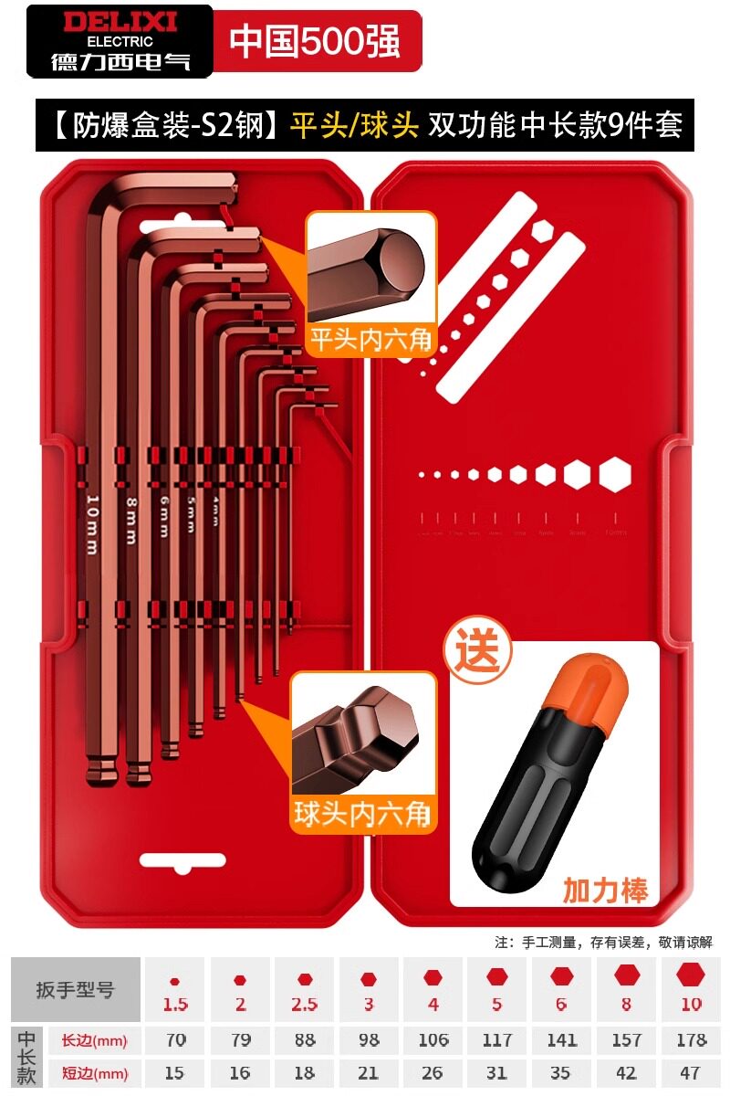 德力西电气高硬度内六角扳手套装加长梅花螺丝刀工具六棱六方6匙