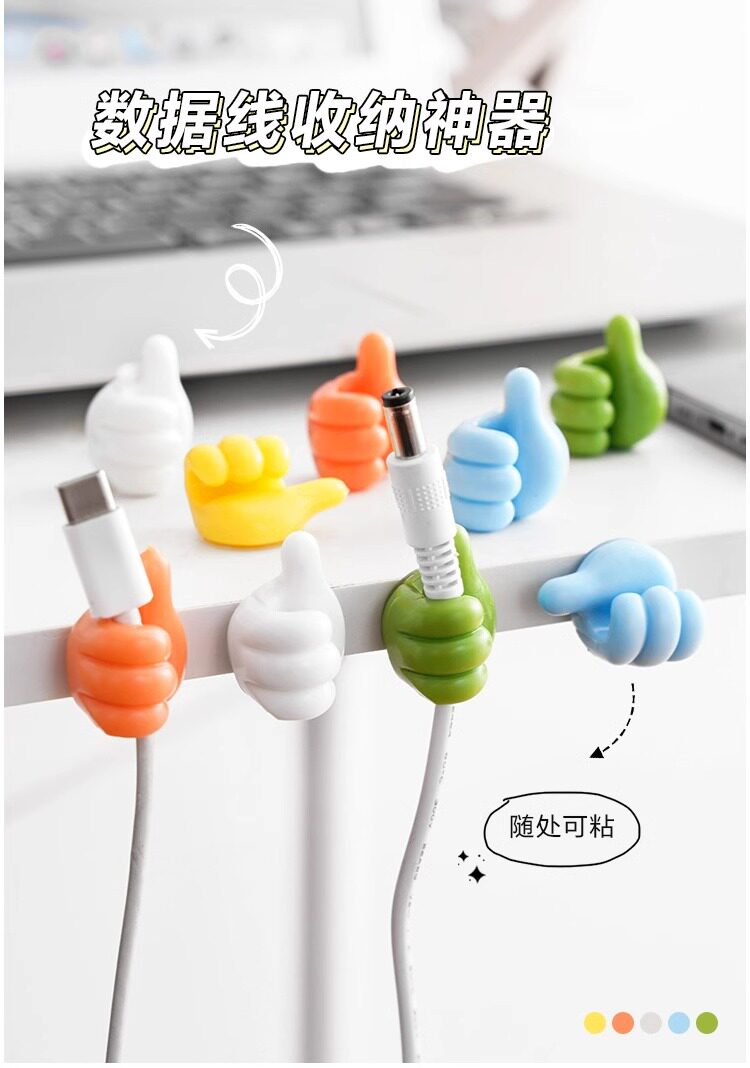 大拇指挂钩理线器多功能数据线桌面固定夹电线收纳粘胶可爱免打孔
