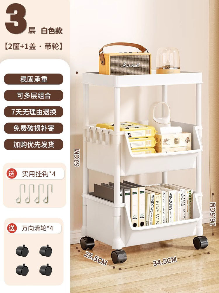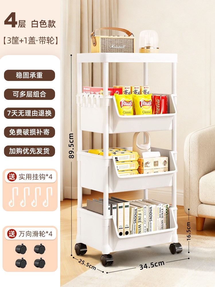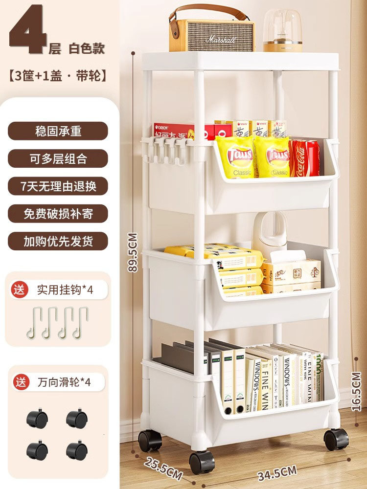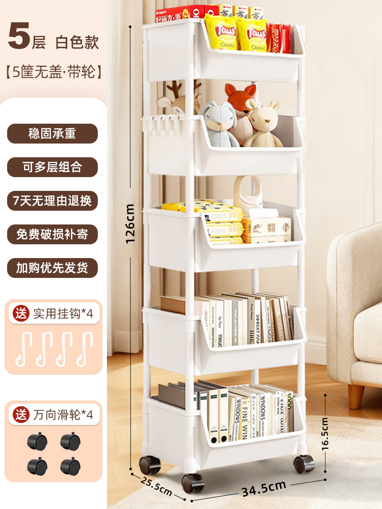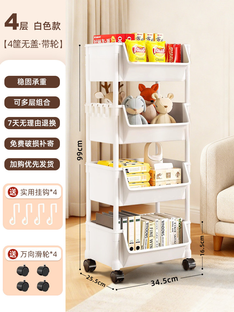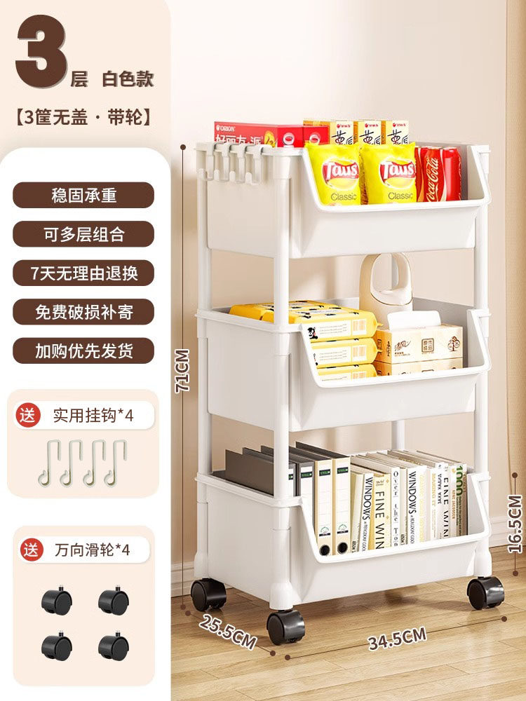 小推车置物架家用零食落地多层客厅收纳书架移动厨房果蔬菜篮架子