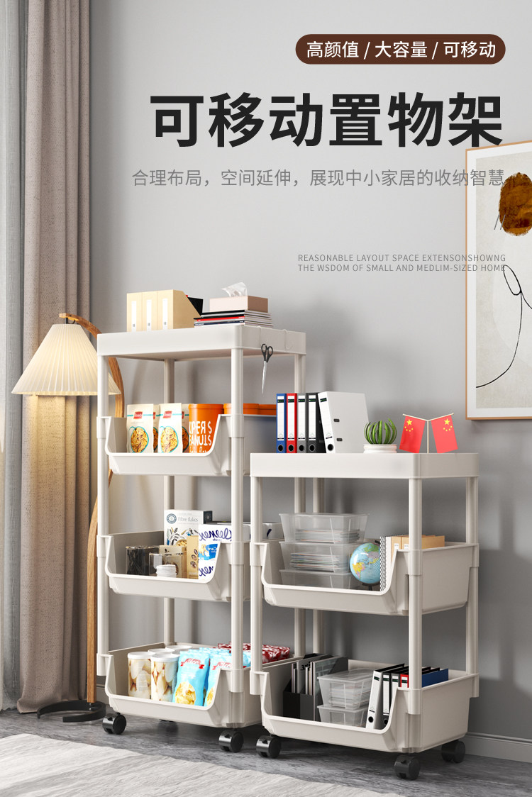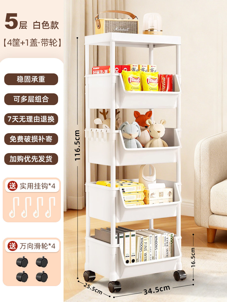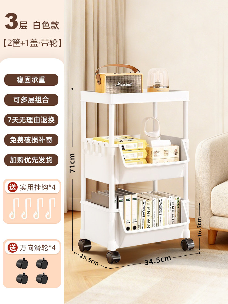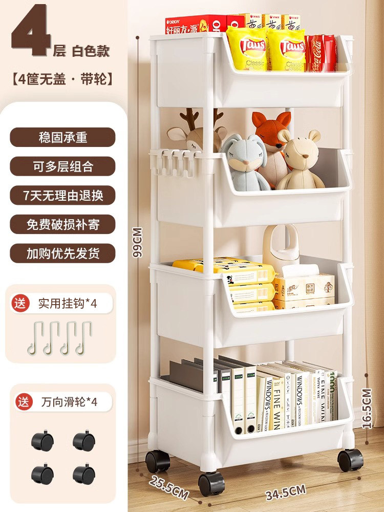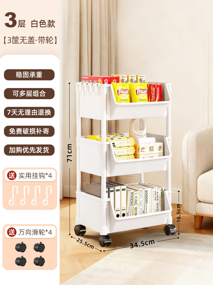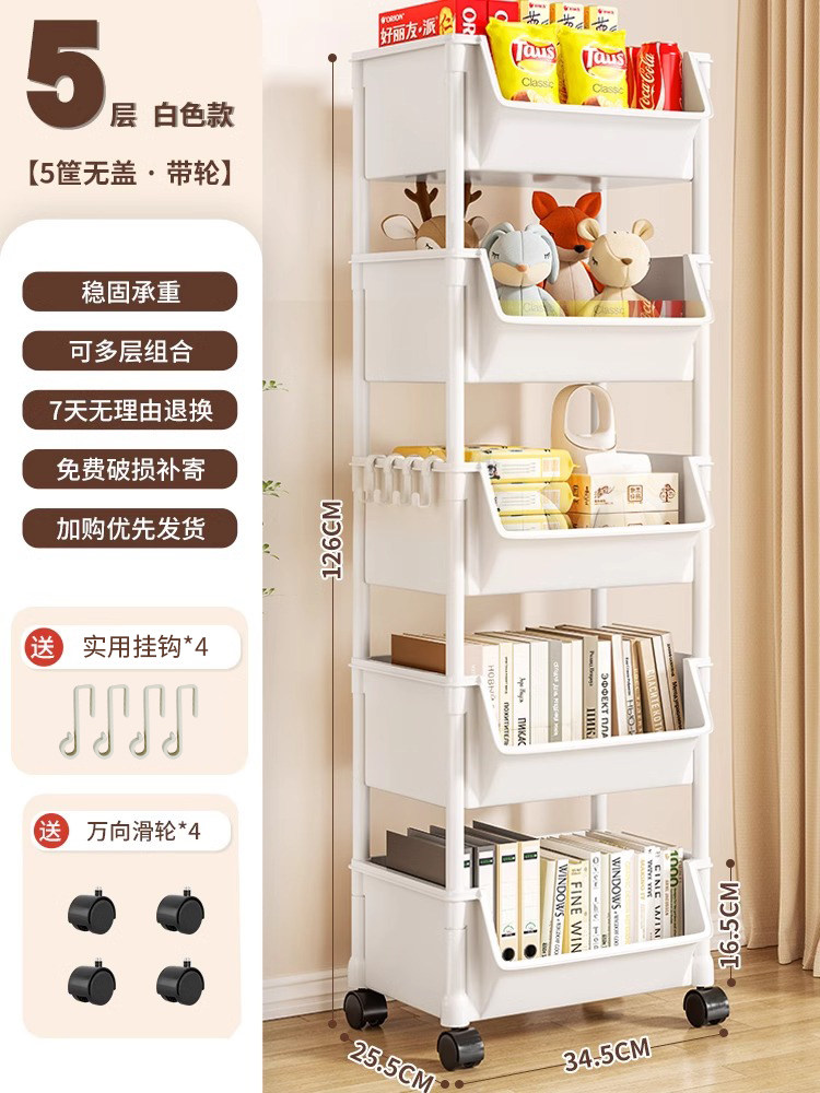 小推车置物架家用零食落地多层客厅收纳书架移动厨房果蔬菜篮架子