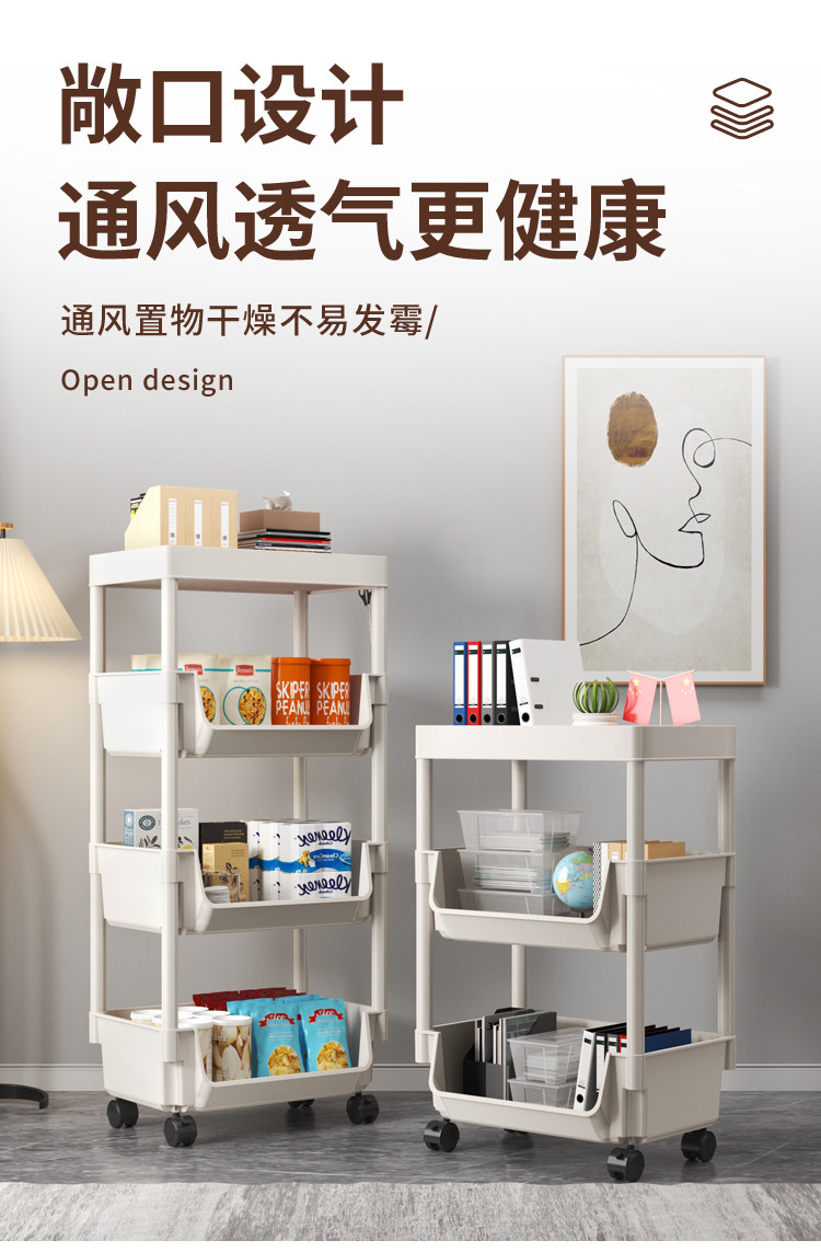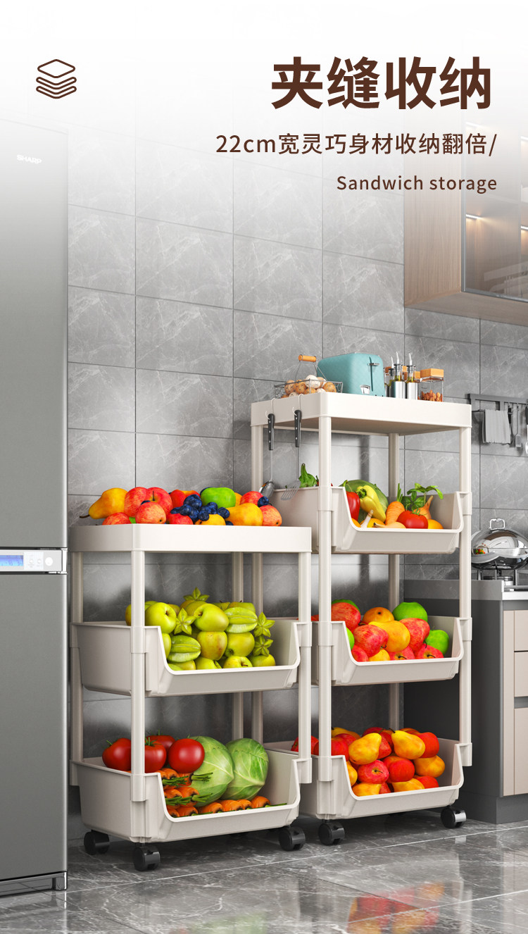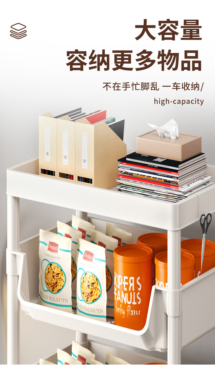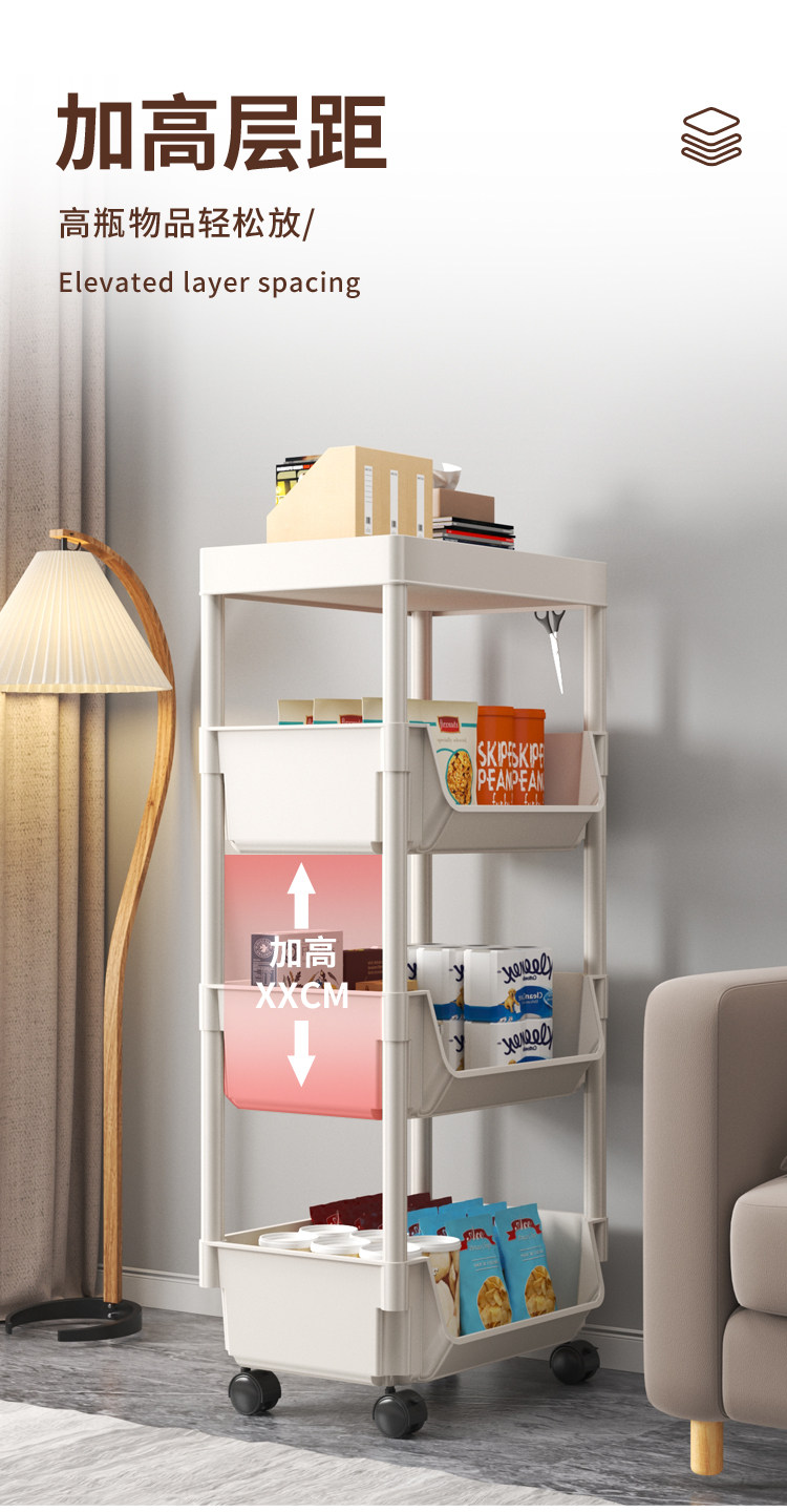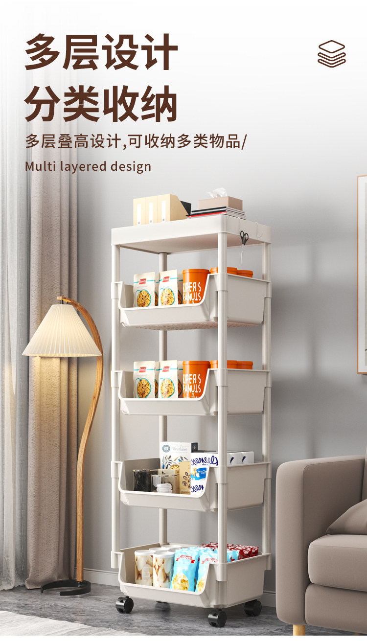 小推车置物架家用零食落地多层客厅收纳书架移动厨房果蔬菜篮架子