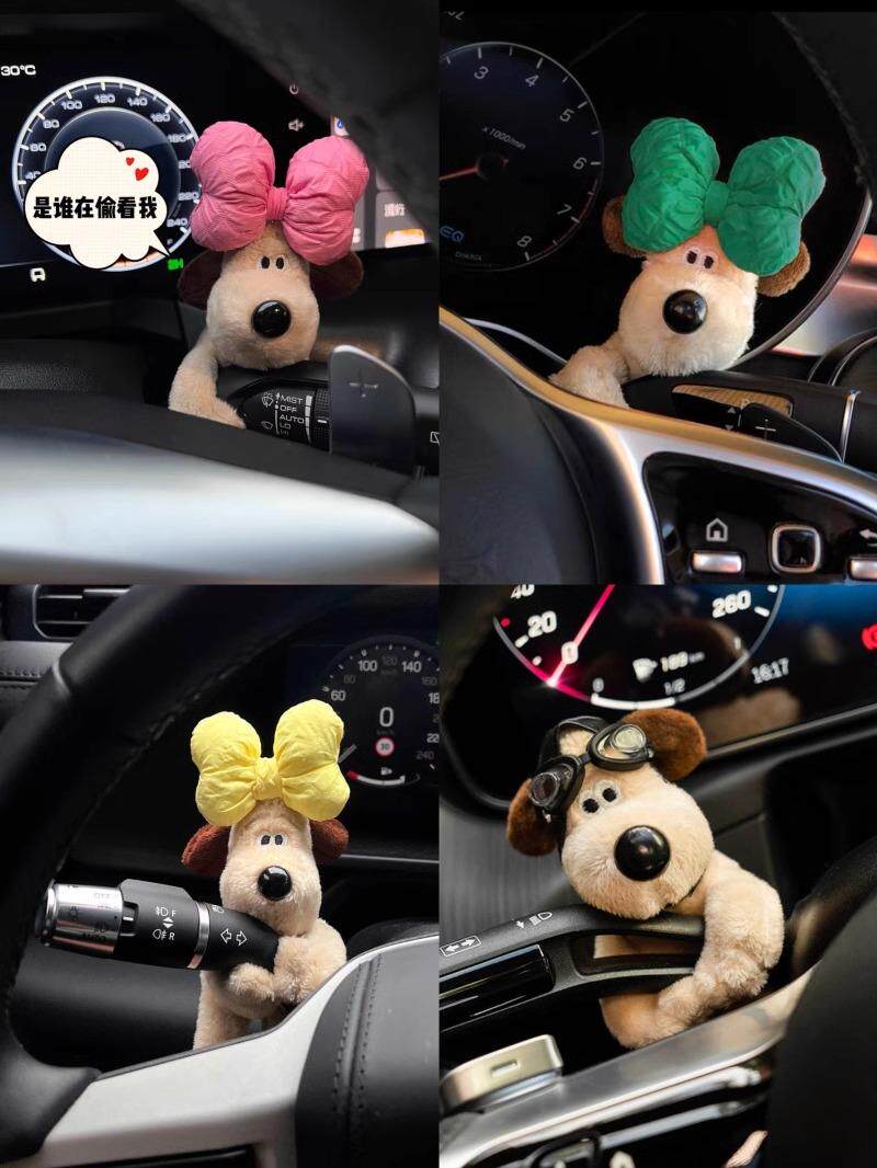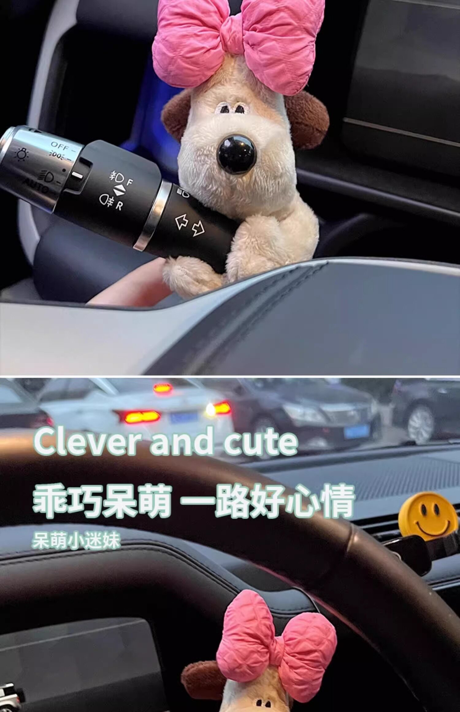 蝴蝶结小狗狗汽车怀挡雨刮器装饰车载转向灯车载狗停车牌摆件饰品