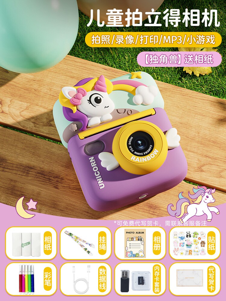 独角兽【无卡+3卷相纸】精美挂绳+相册本+贴纸