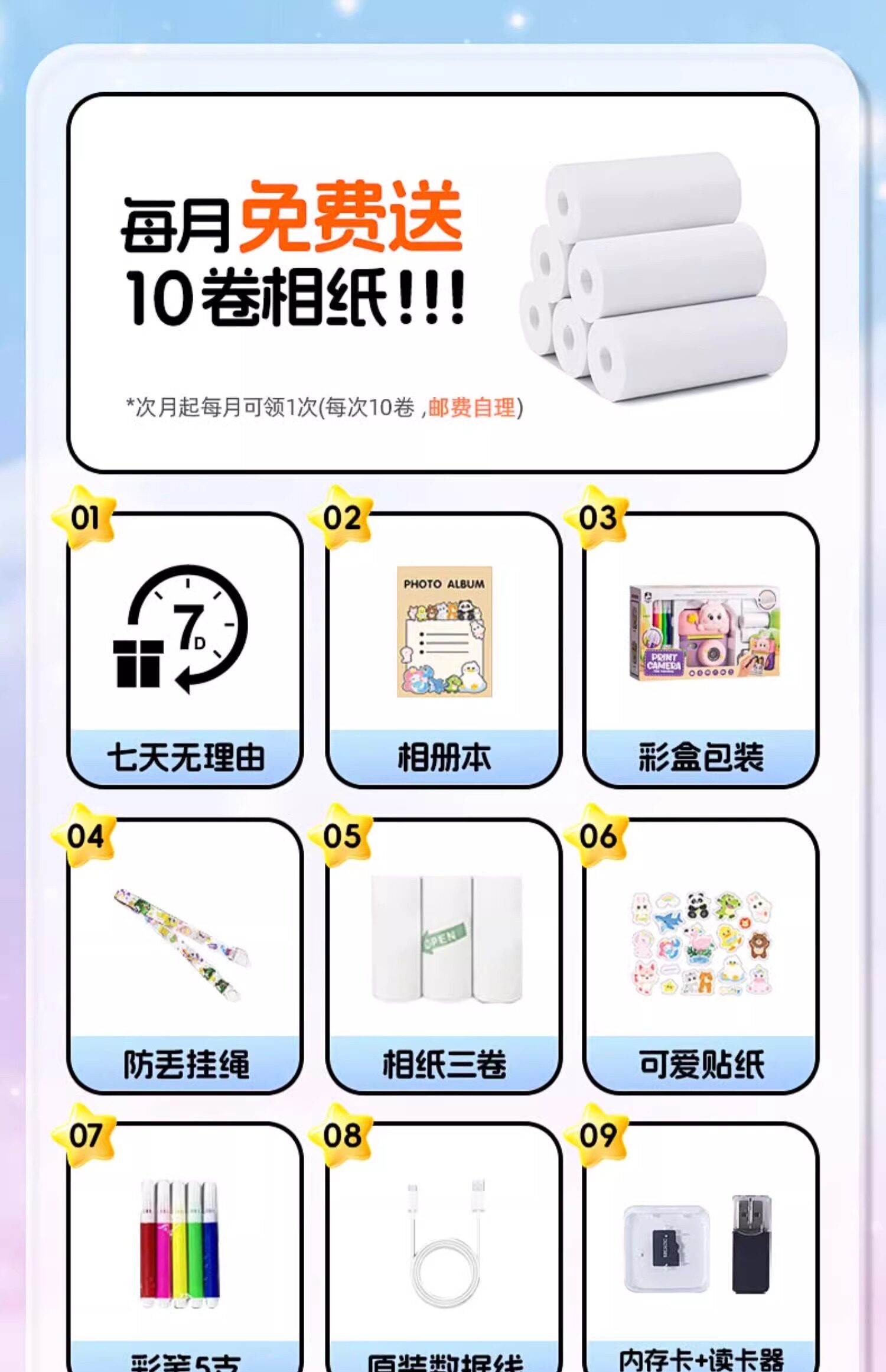 生日礼物女孩子六一儿童节小女童6岁以上的10十7拍立得照相机玩具