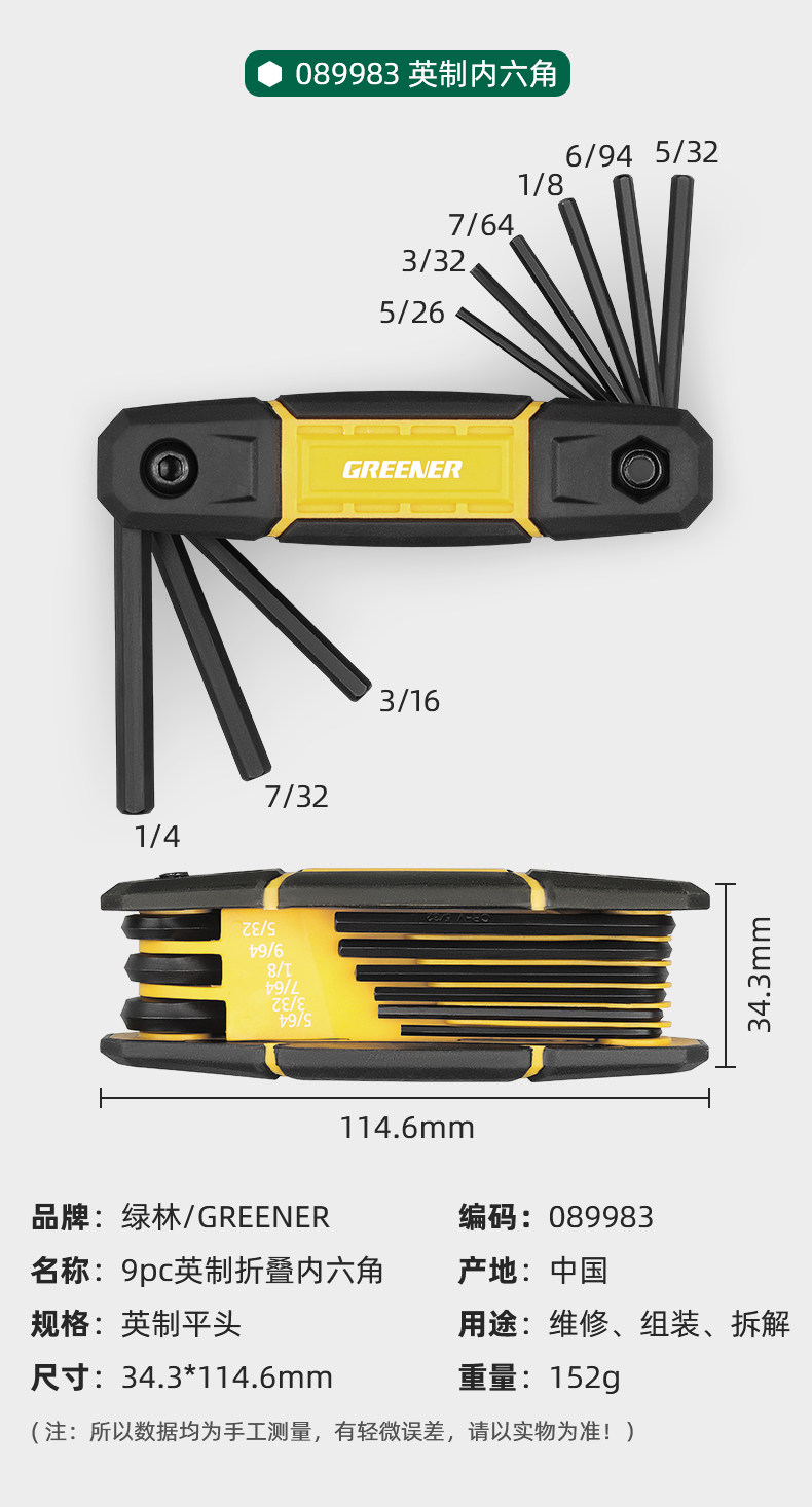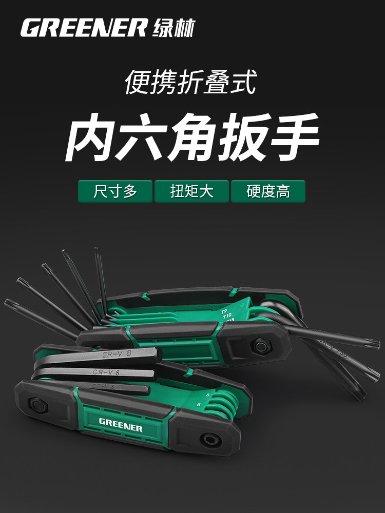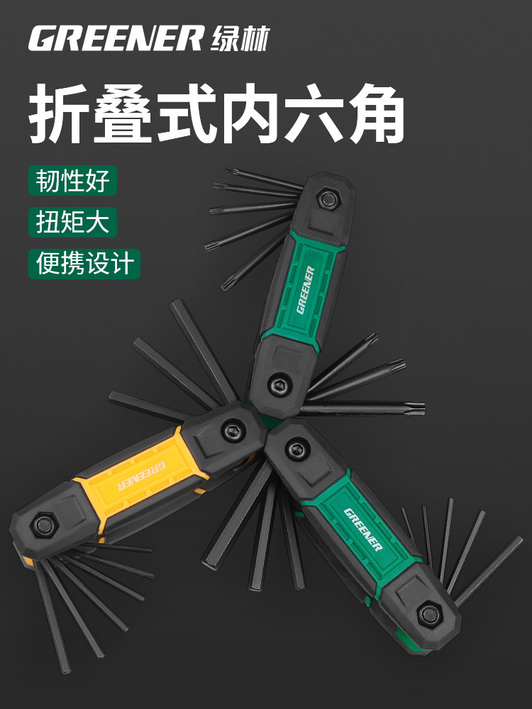 绿林折叠内六角扳手套装公英制德国梅花内六方六角螺丝刀六棱扳手
