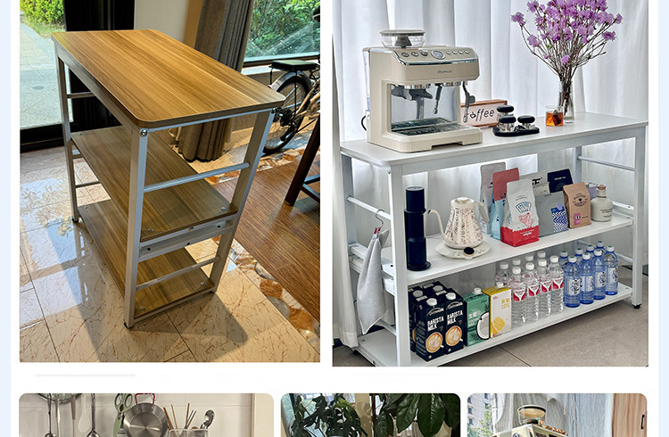 厨房多功能置物架落地多层微波炉储物窄边柜工作台切菜桌子收纳架