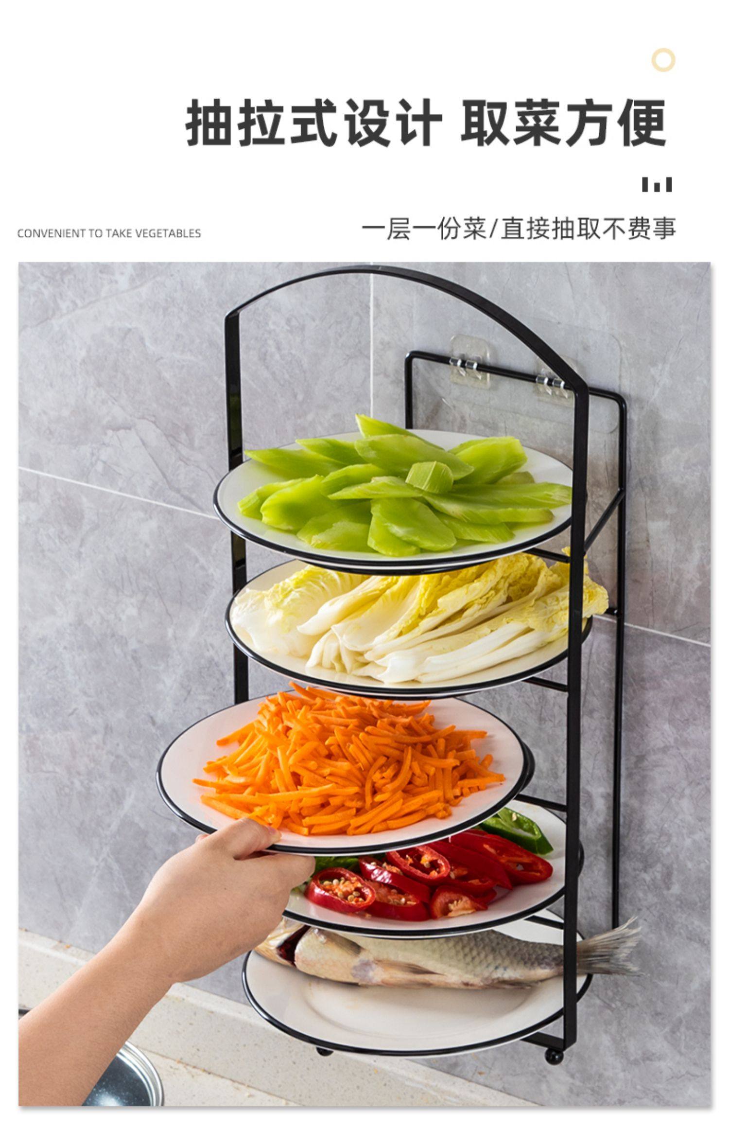 厨房备菜盘免打孔壁挂多层配菜盘家用收纳神器多功能备菜置物架