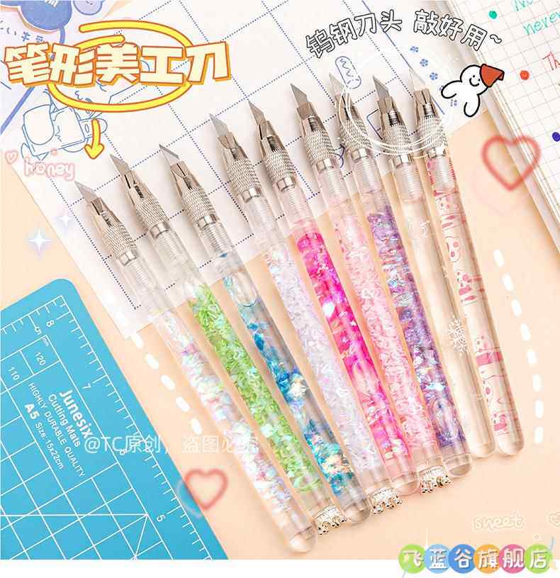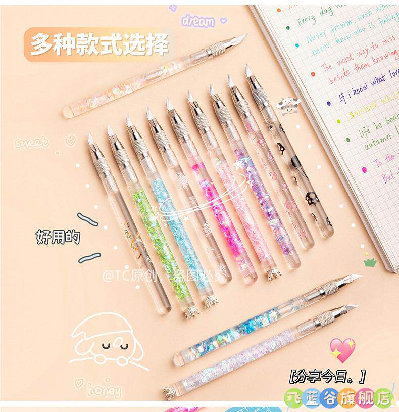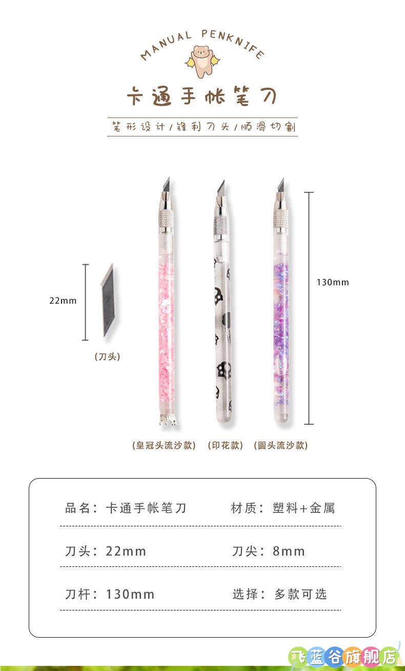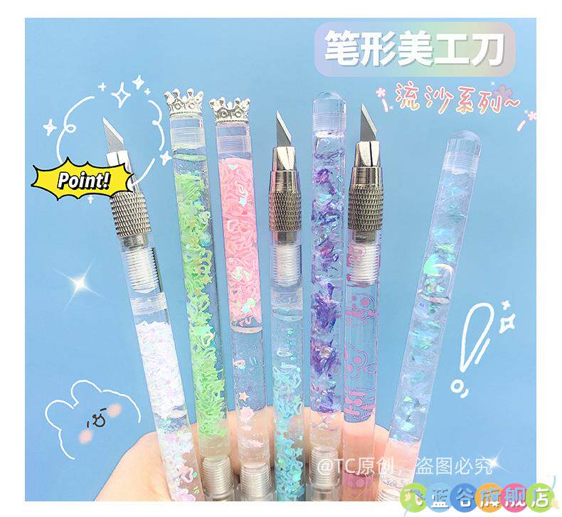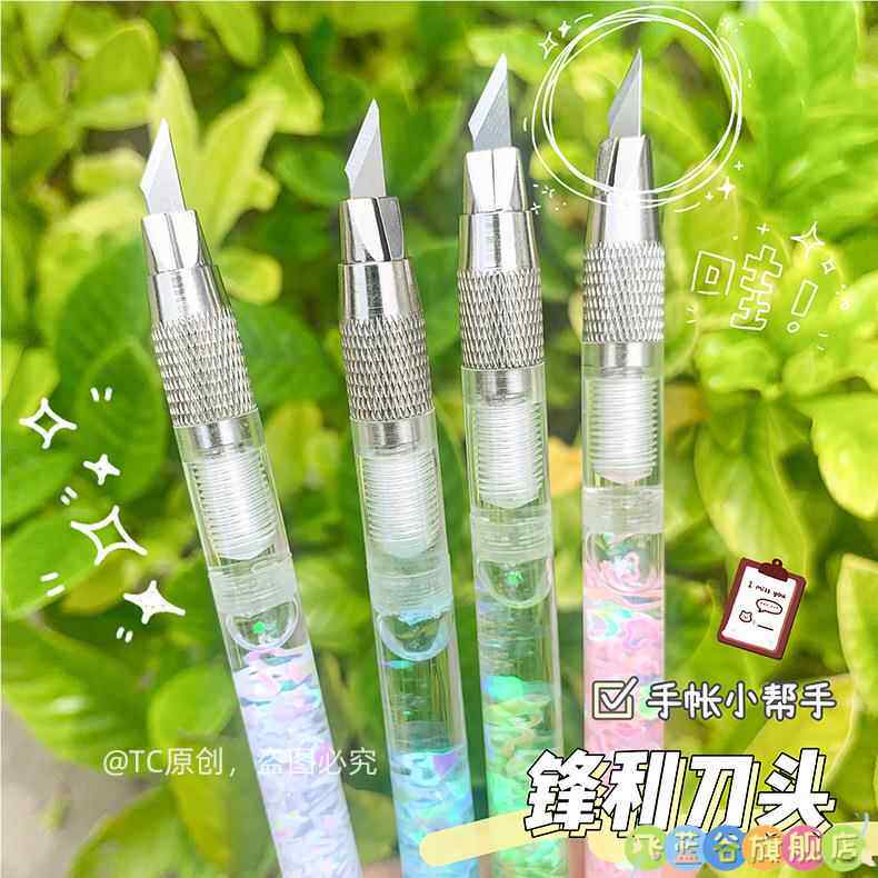 HomeProducts可爱手账笔刀 高颜值流沙美工刀手帐贴纸裁纸雕刻刀笔少女心学生专用手工切割小刀片手杖工具拆快递开箱神器