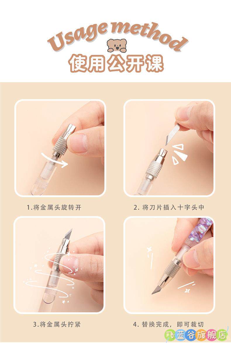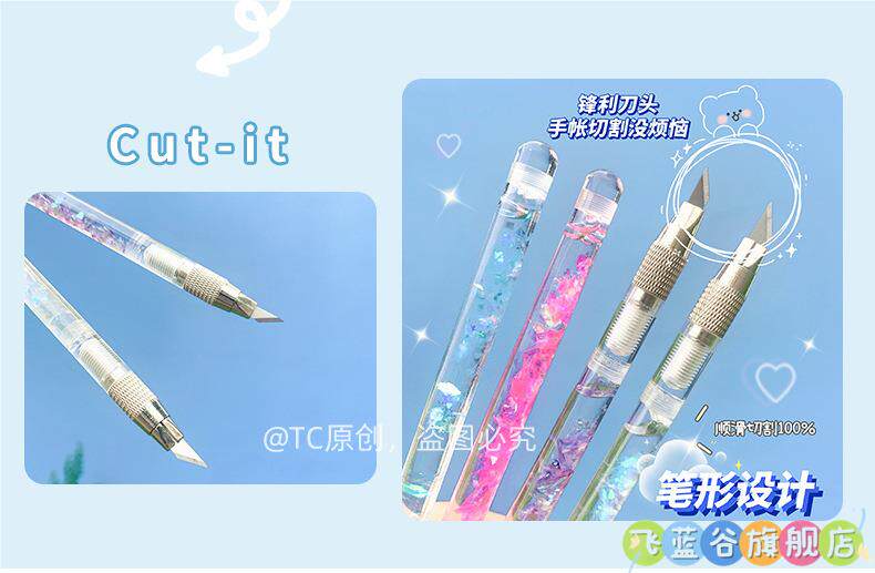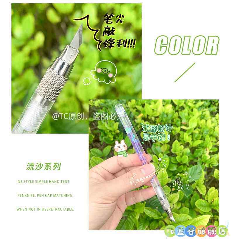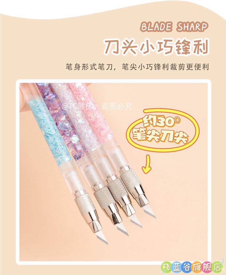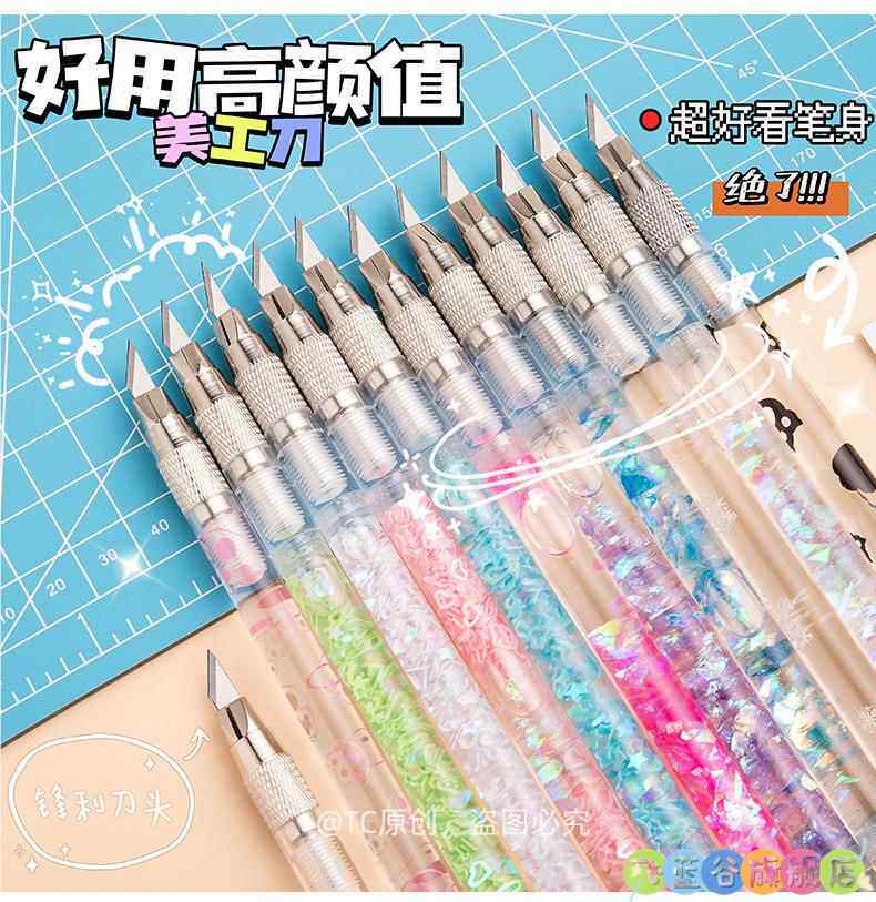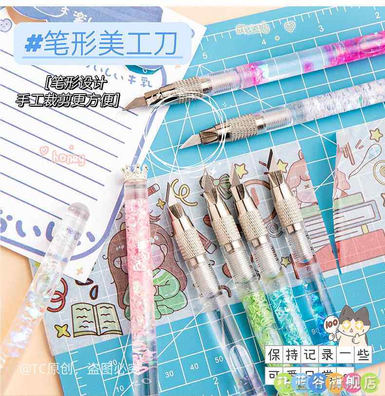 HomeProducts可爱手账笔刀 高颜值流沙美工刀手帐贴纸裁纸雕刻刀笔少女心学生专用手工切割小刀片手杖工具拆快递开箱神器