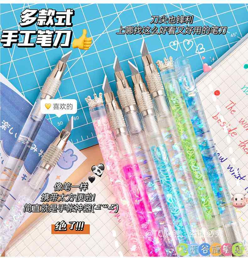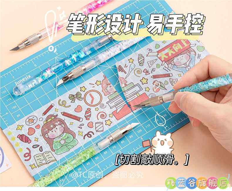 可爱手账笔刀 高颜值流沙美工刀手帐贴纸裁纸雕刻刀笔少女心学生专用手工切割小刀片手杖工具拆快递开箱神器