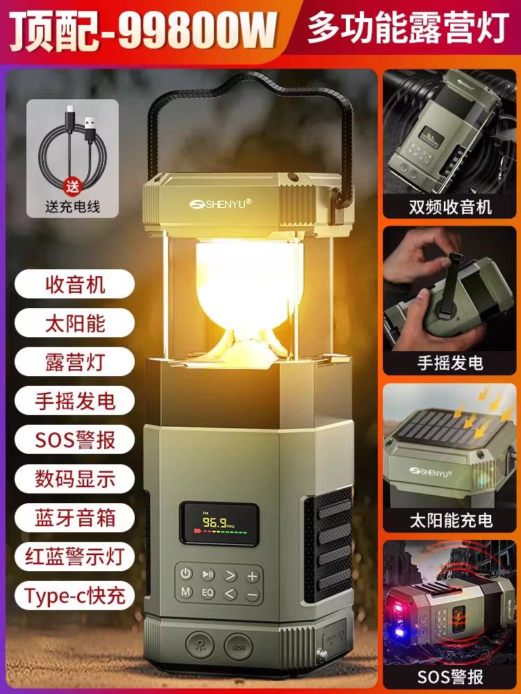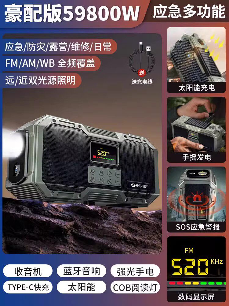 太阳能手摇发电收音机应急防灾急救手电筒末日生存装备军工充电宝