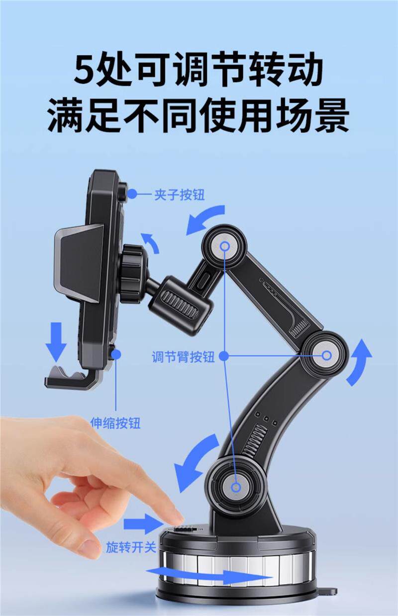 【标准吸力款】德系精工机械臂☆【黑色】360度旋转/可水洗/50倍防抖/车载手机支架