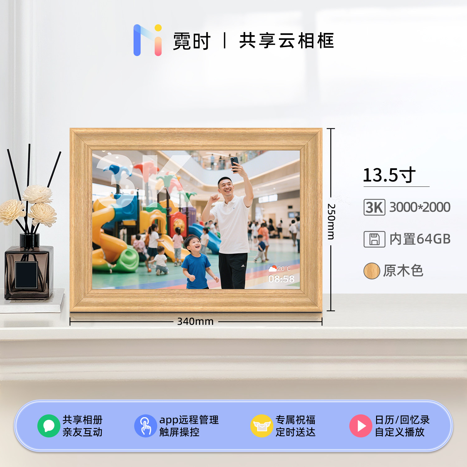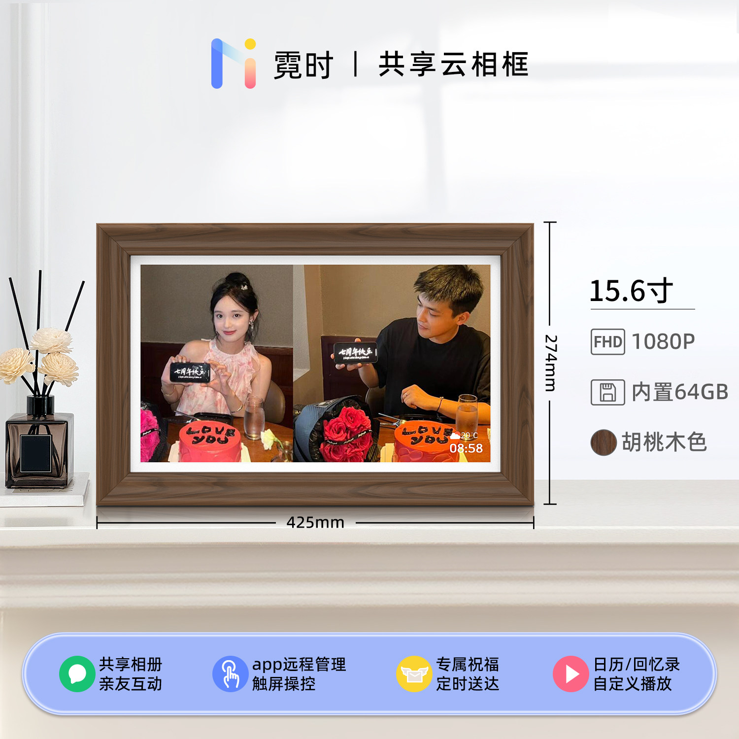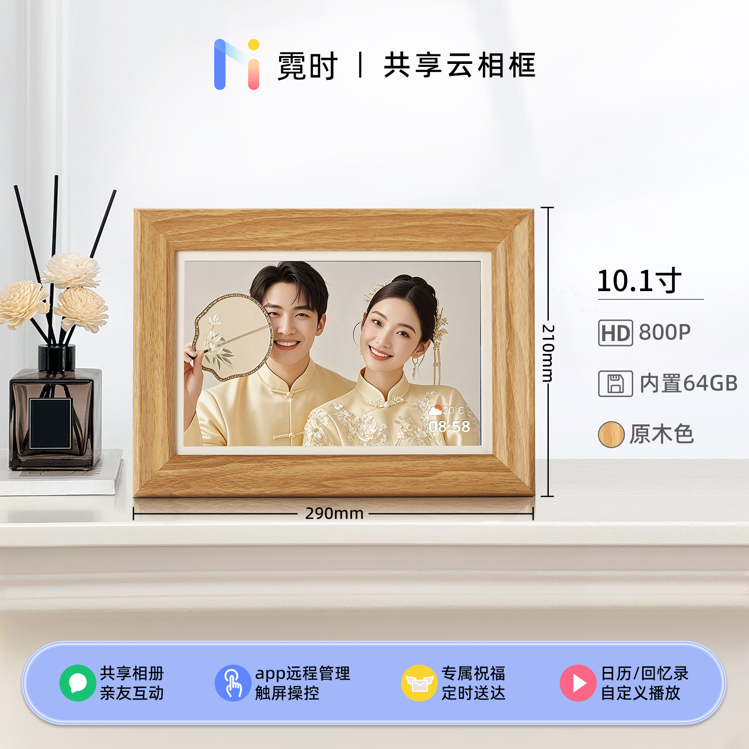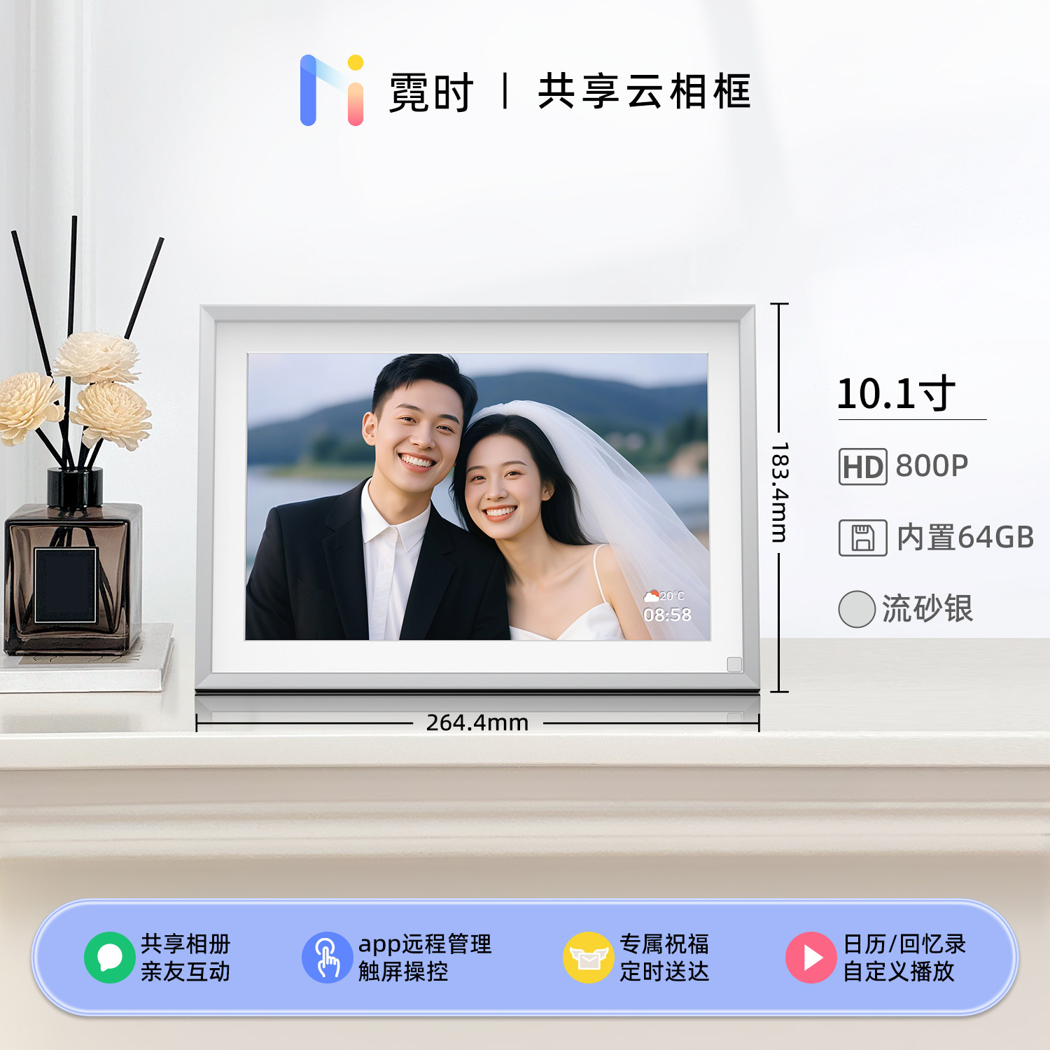 霓时数码电子相框64G触屏智能家庭共享触控相册高清云照片视频播放显示屏 桌搭新婚月子乔迁订婚长辈礼物