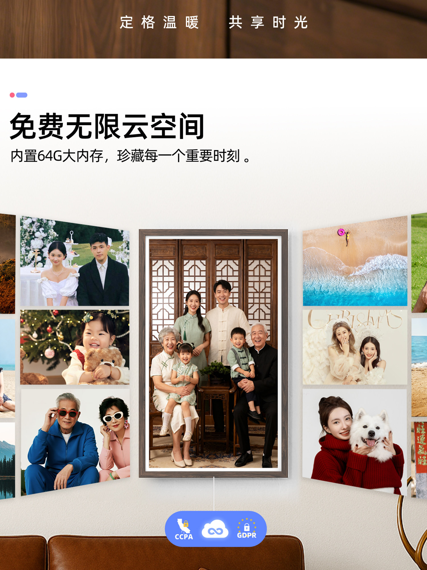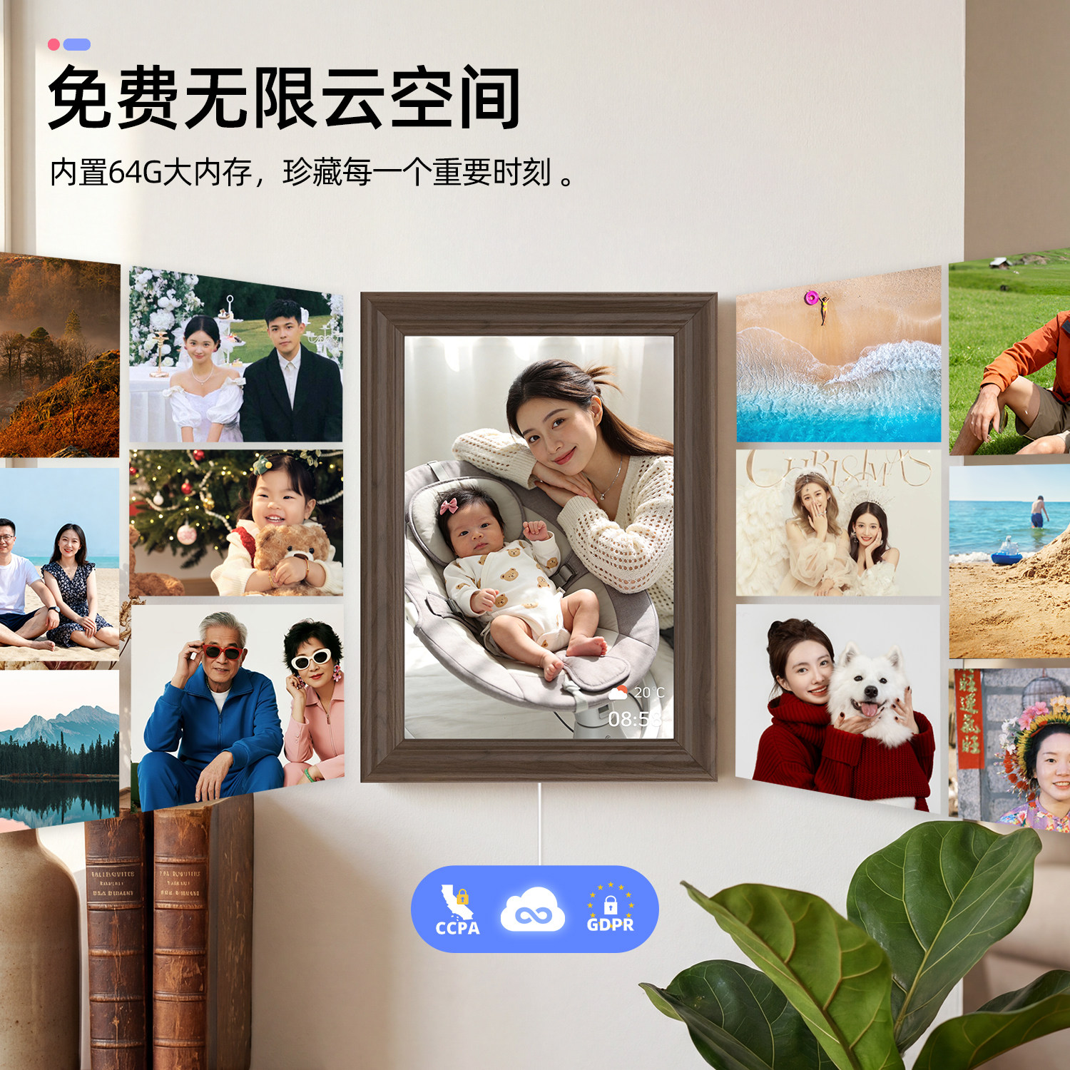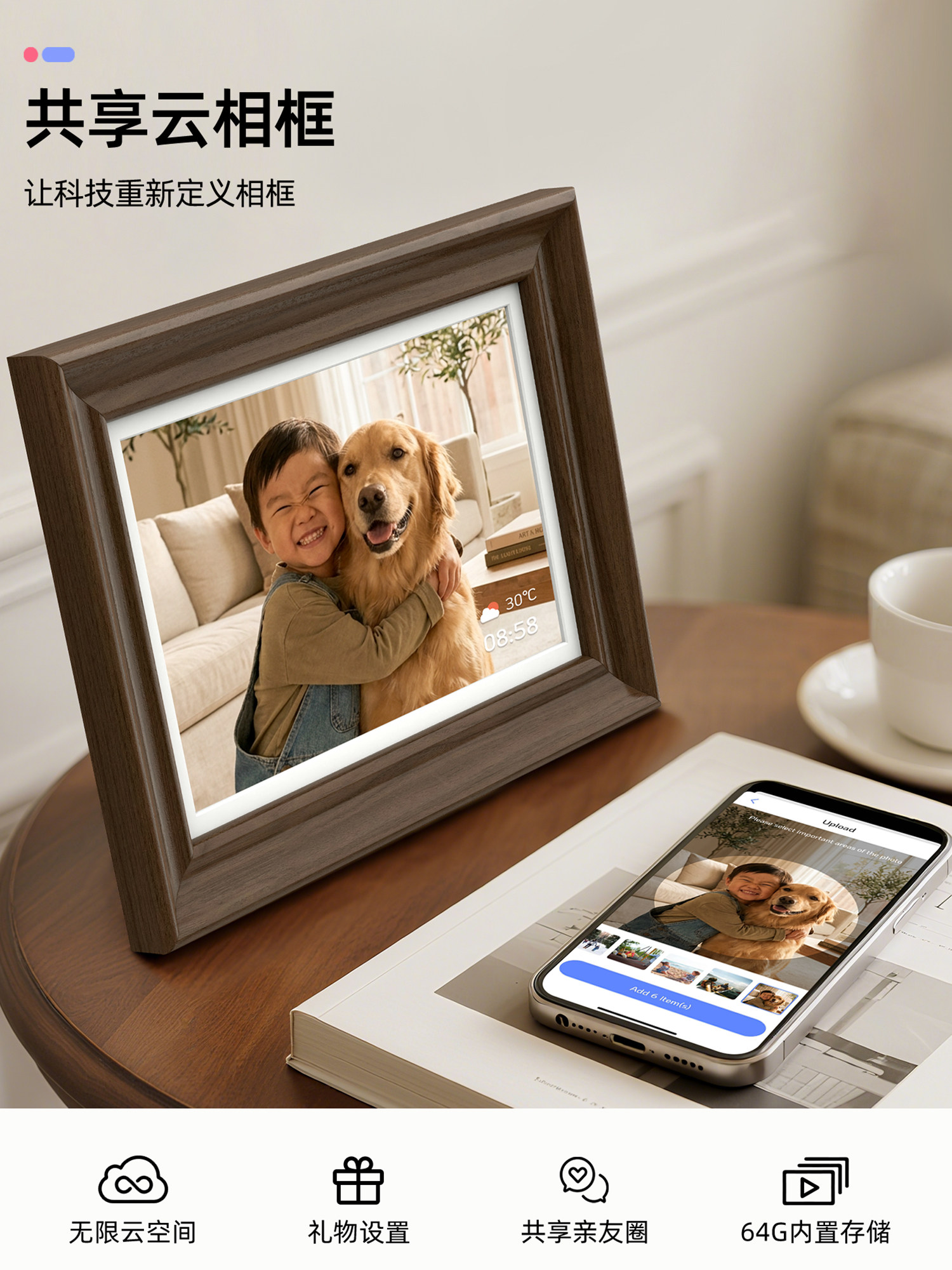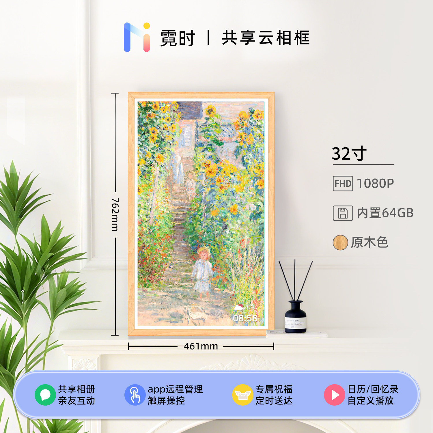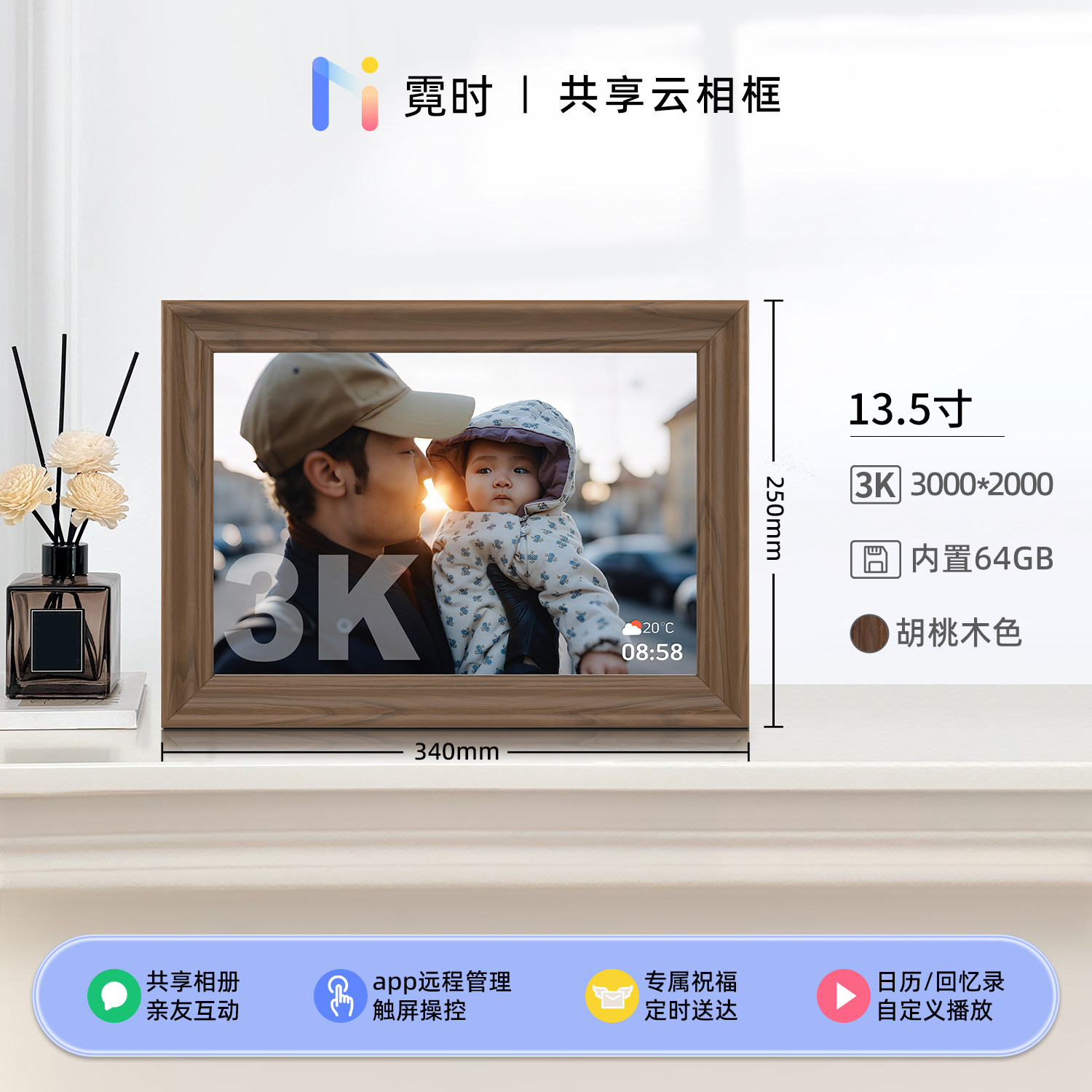 霓时数码电子相框64G触屏智能家庭共享触控相册高清云照片视频播放显示屏 桌搭新婚月子乔迁订婚长辈礼物
