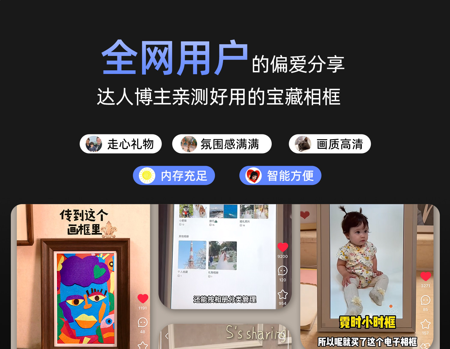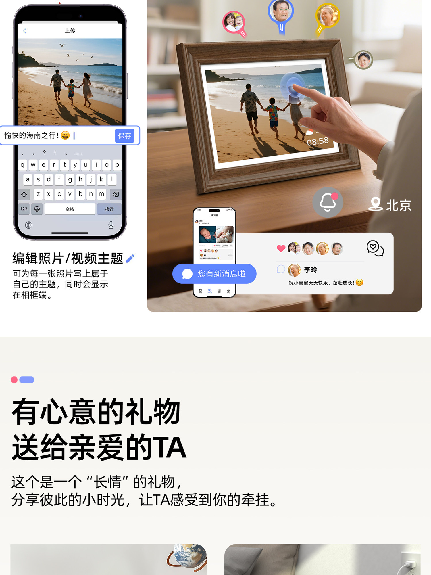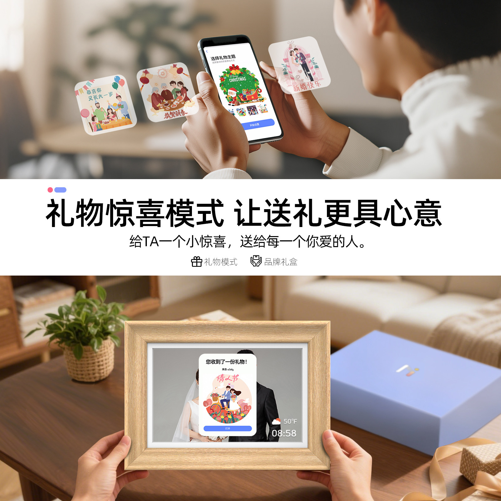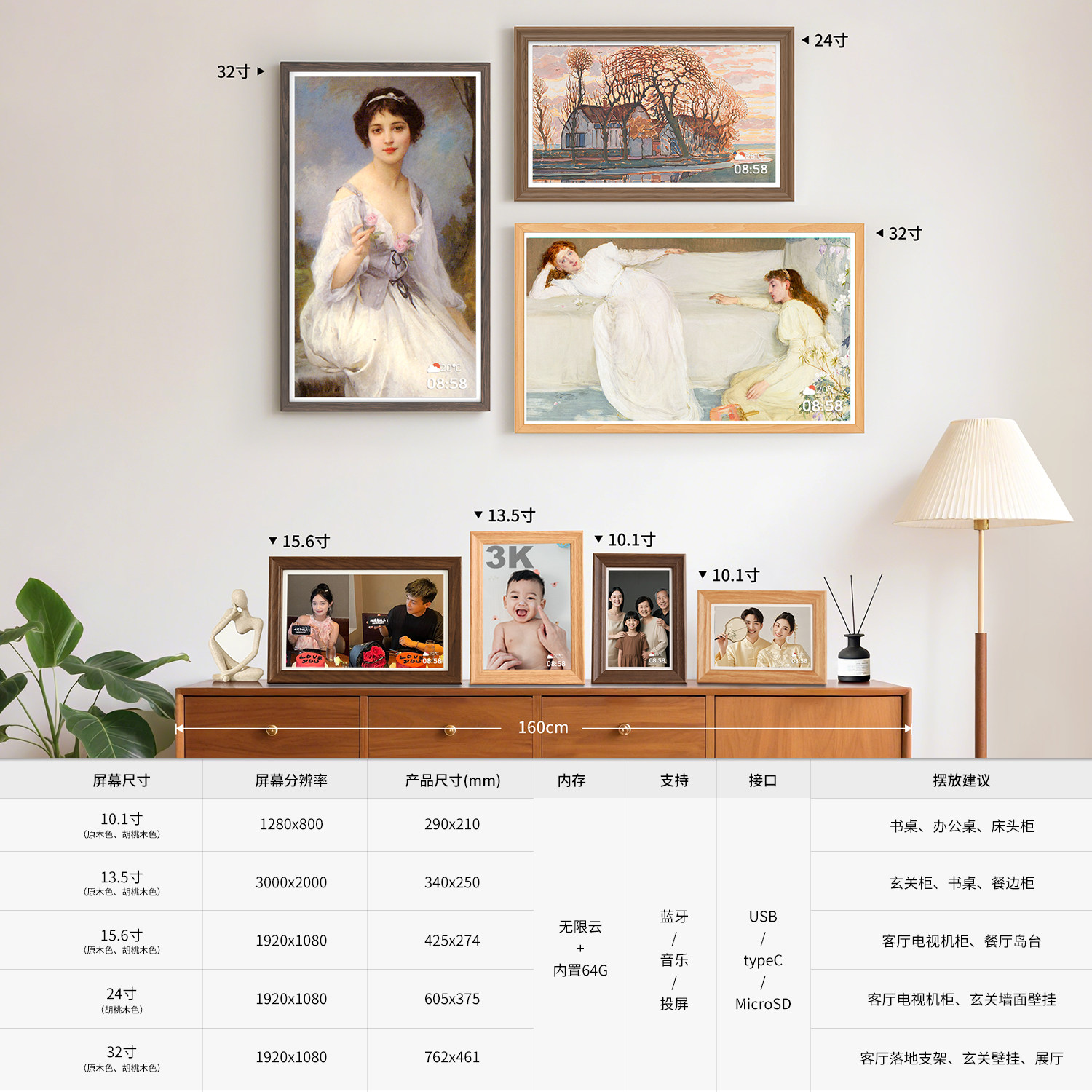 霓时数码电子相框64G触屏智能家庭共享触控相册高清云照片视频播放显示屏 桌搭新婚月子乔迁订婚长辈礼物