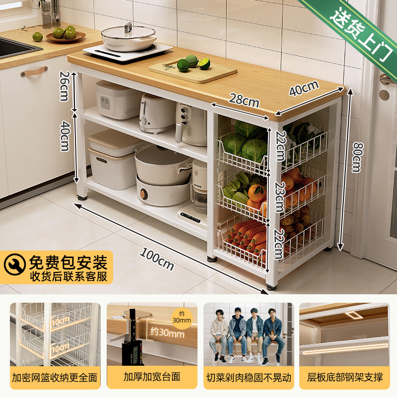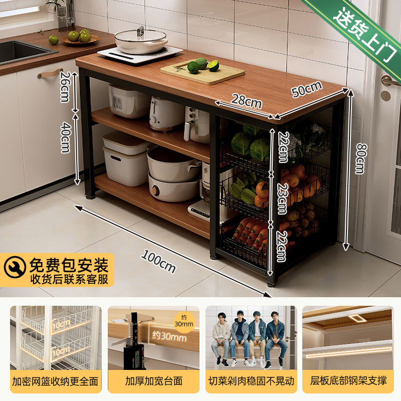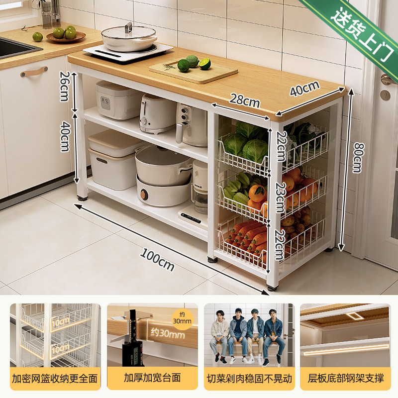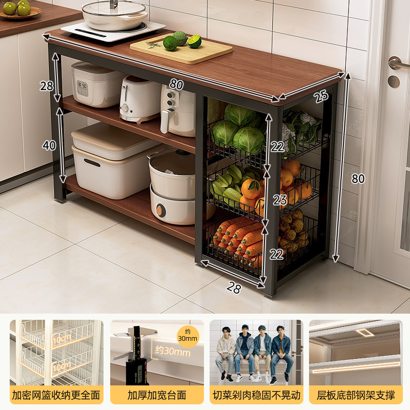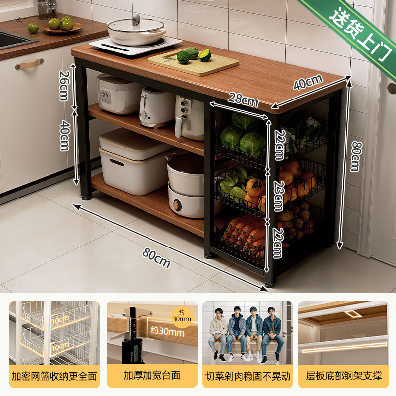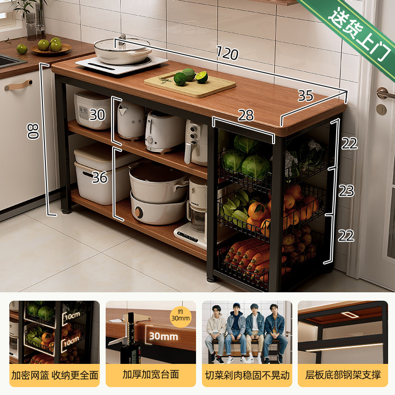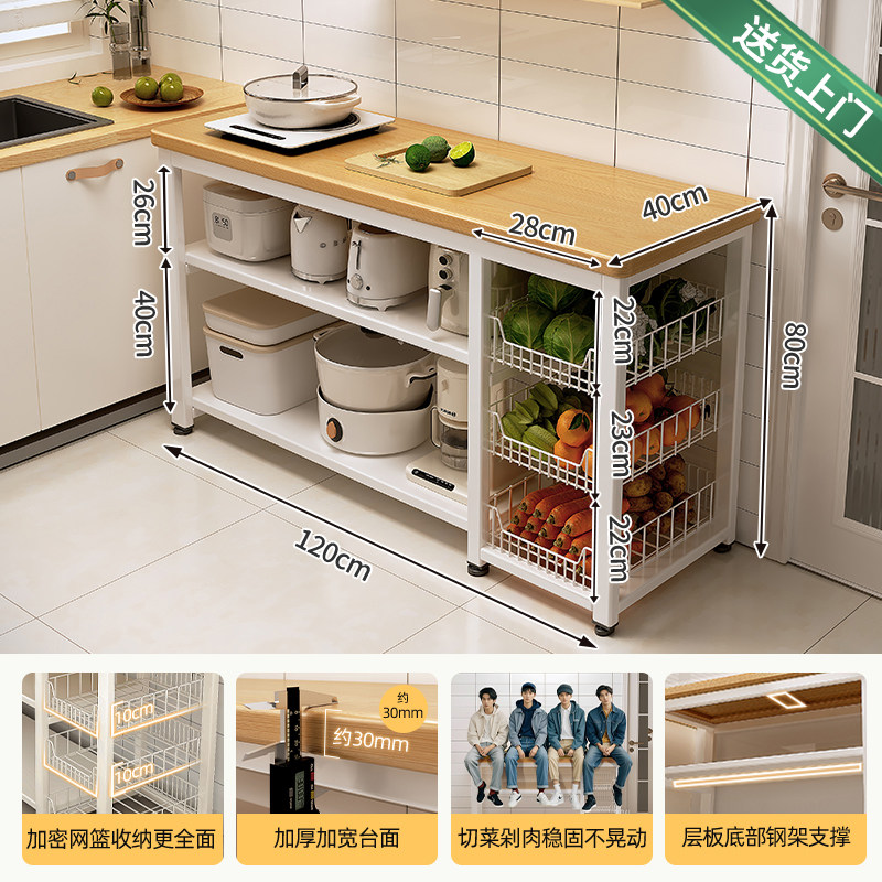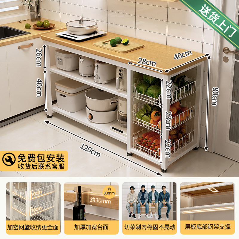 厨房置物架多功能菜篮子切菜工作台微波炉锅具收纳架边柜多层桌子