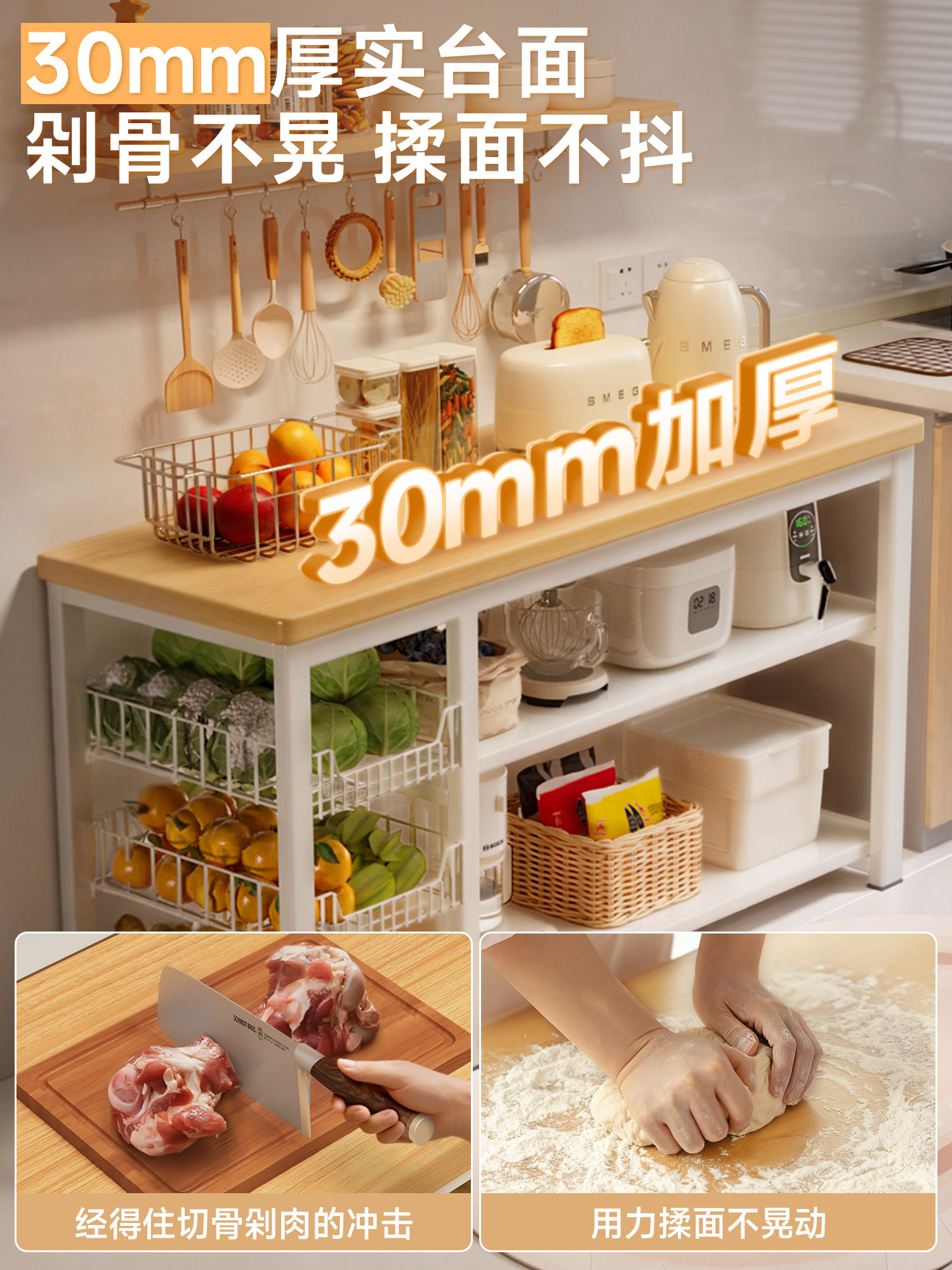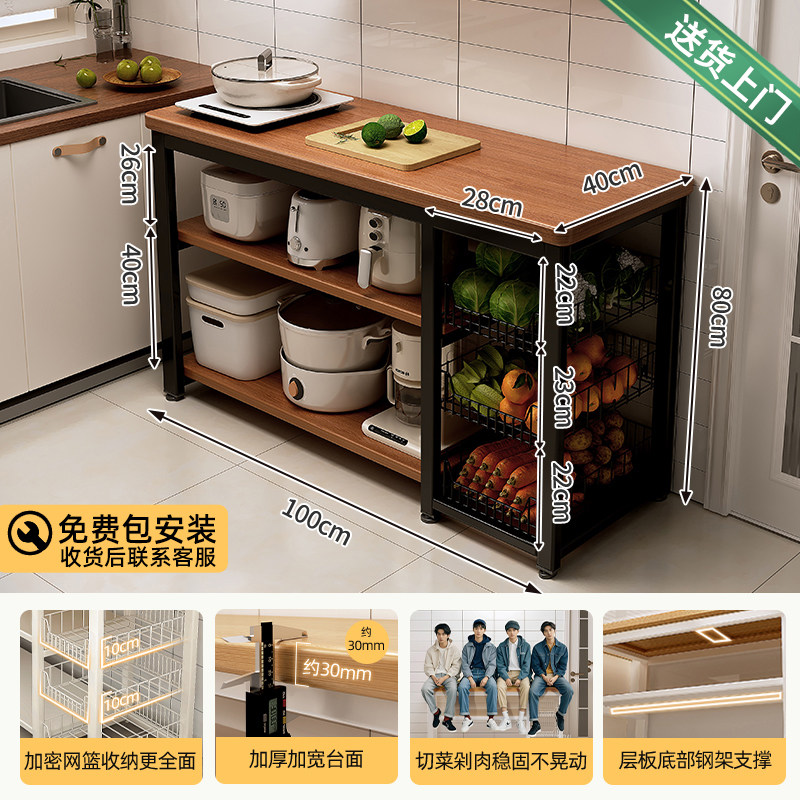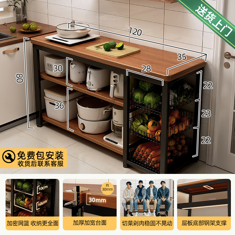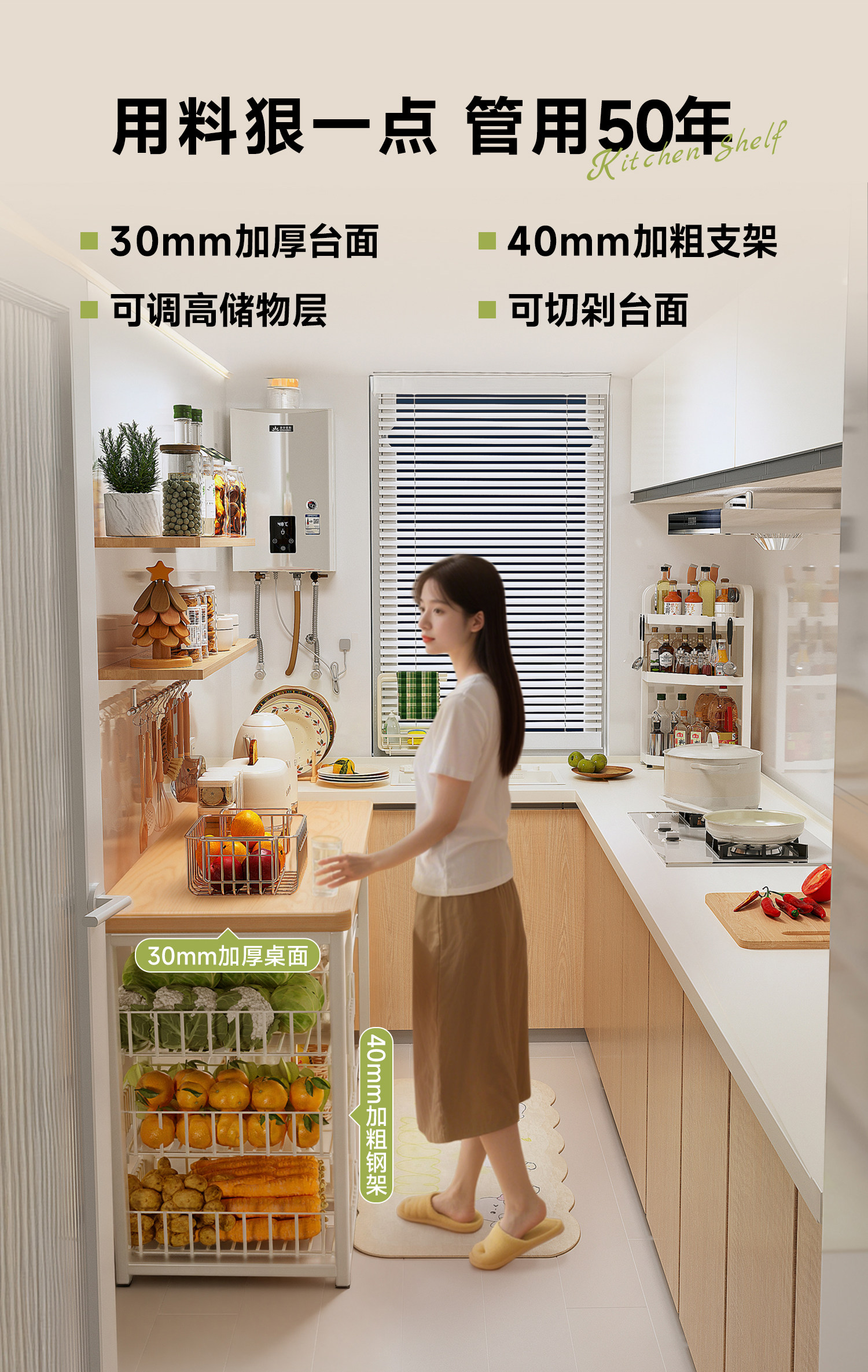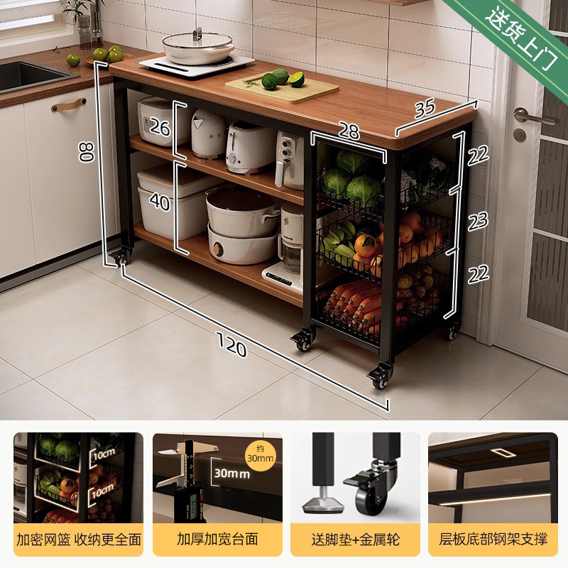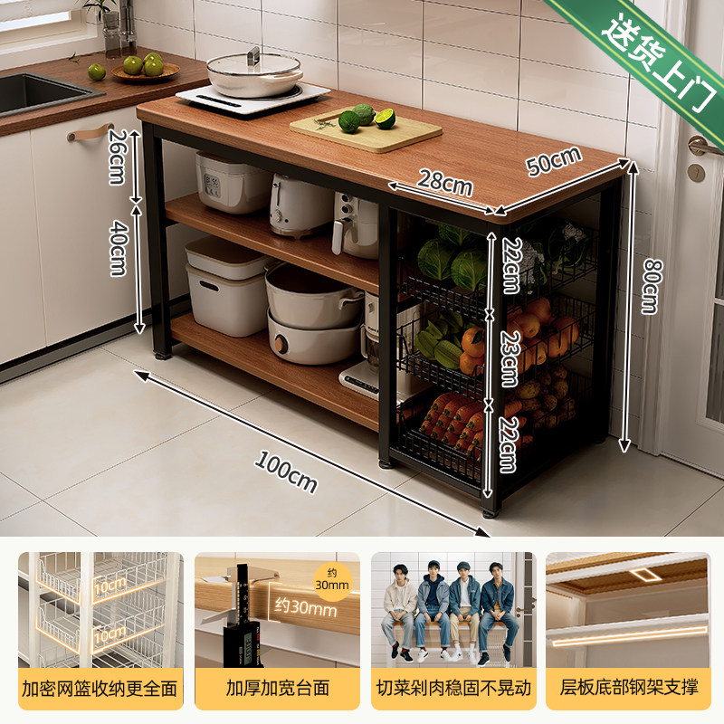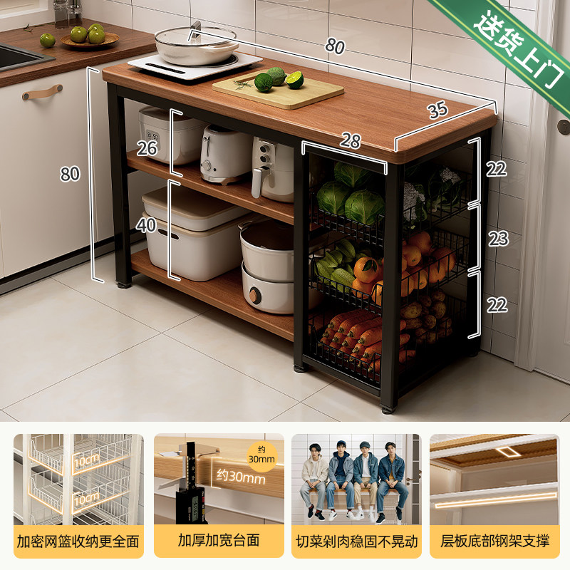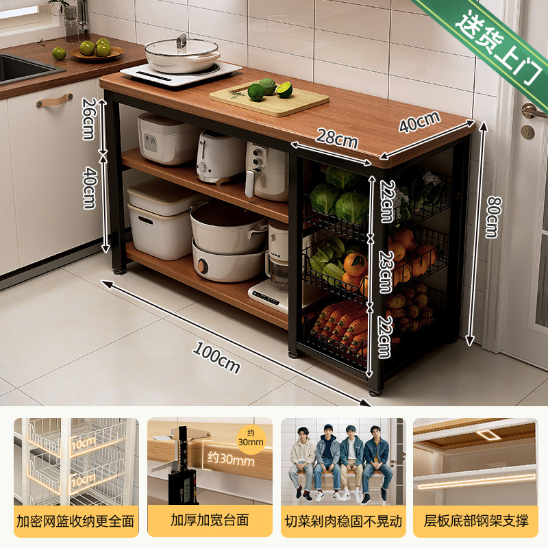 厨房置物架多功能菜篮子切菜工作台微波炉锅具收纳架边柜多层桌子