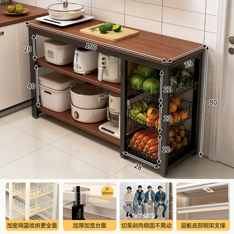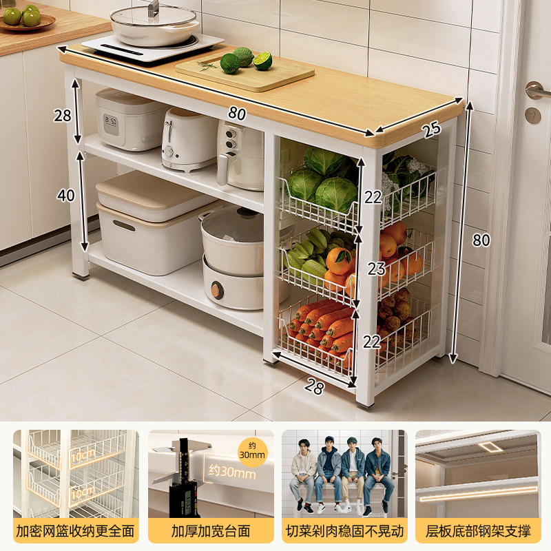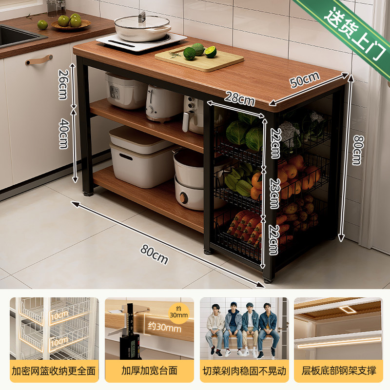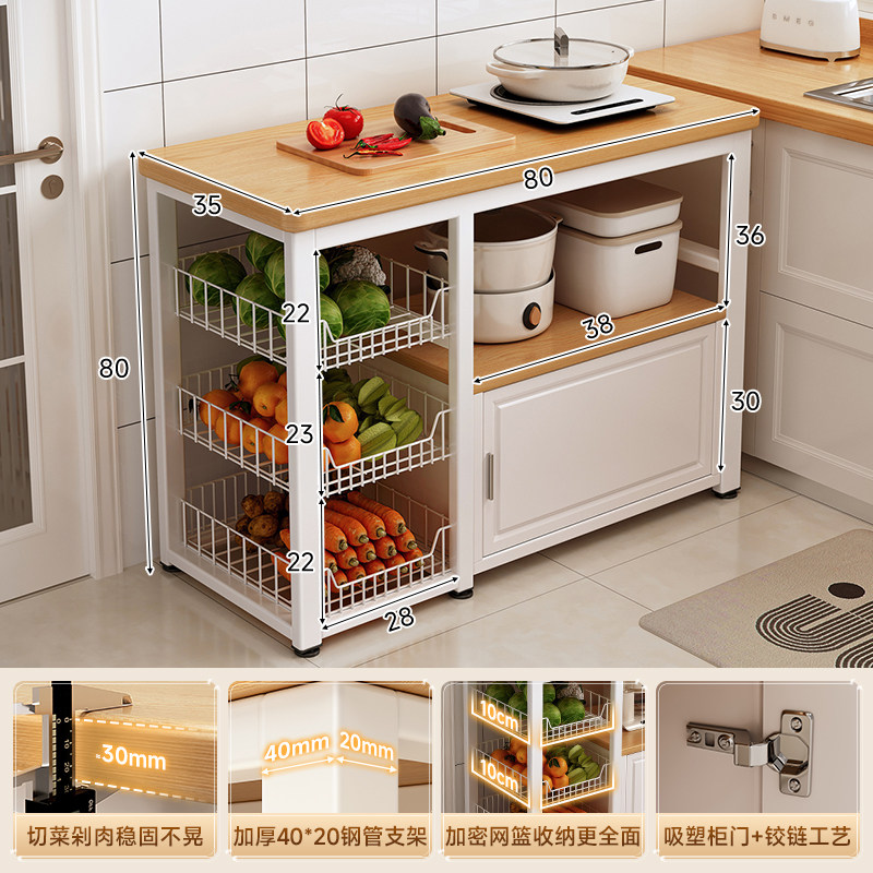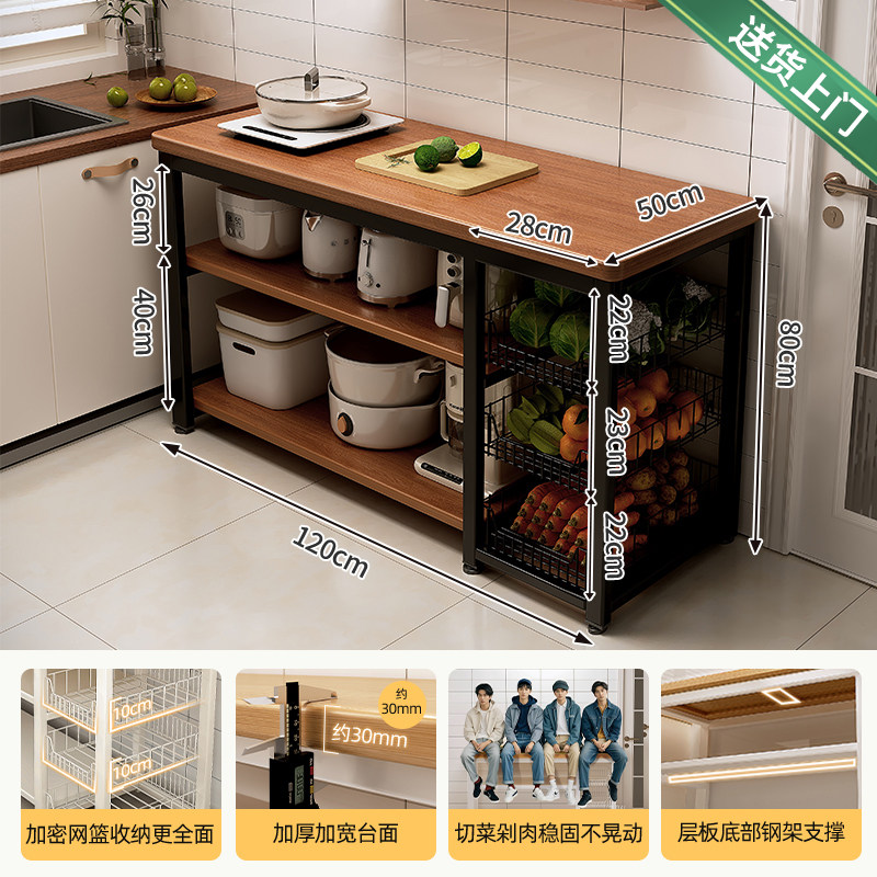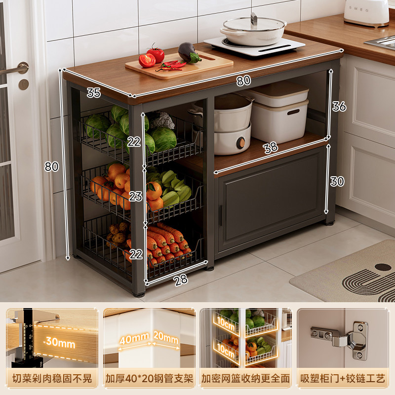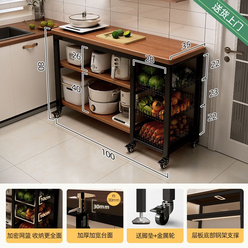 厨房置物架多功能菜篮子切菜工作台微波炉锅具收纳架边柜多层桌子