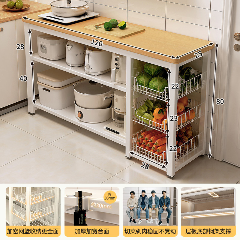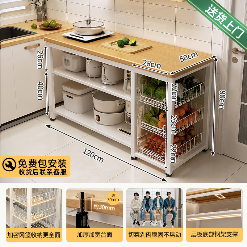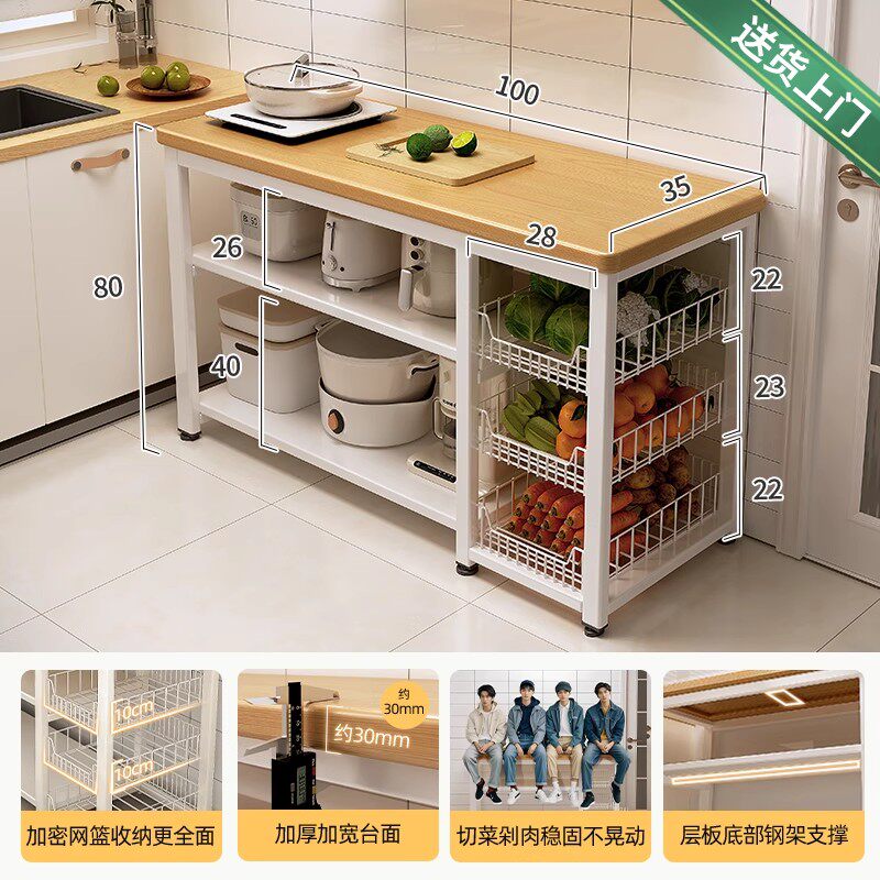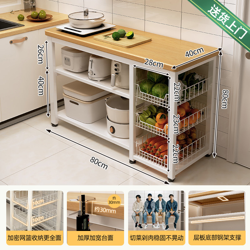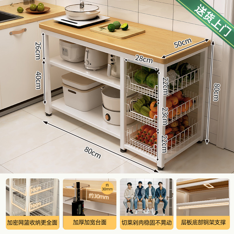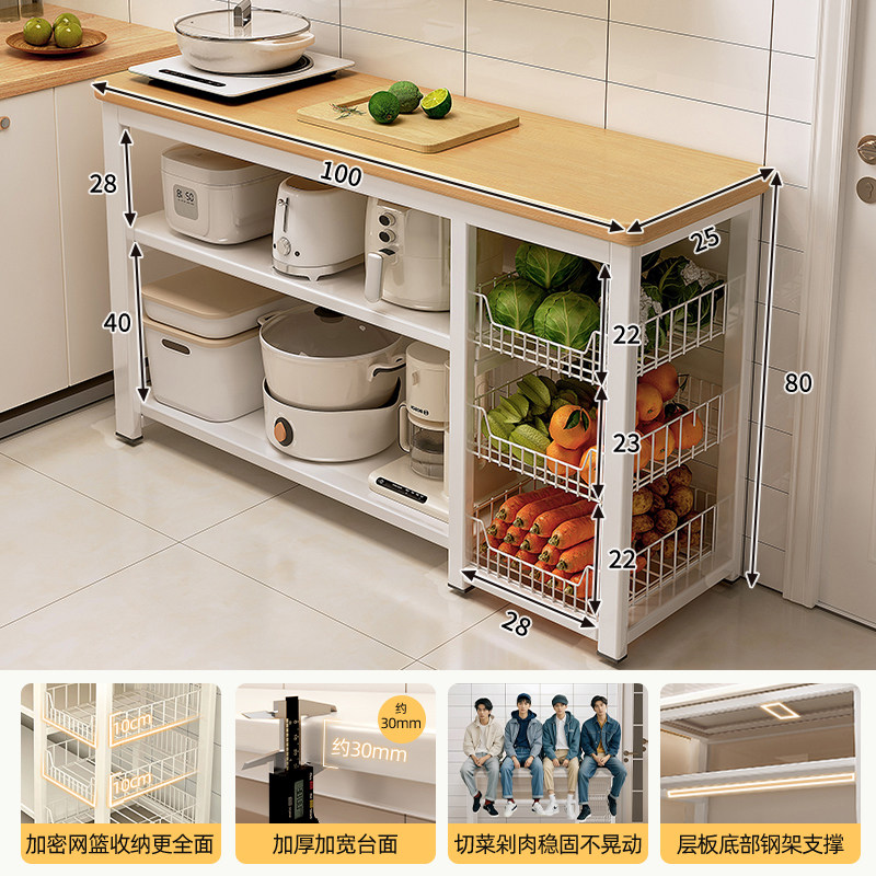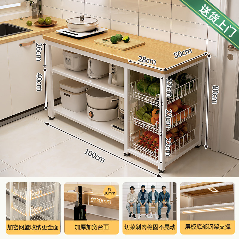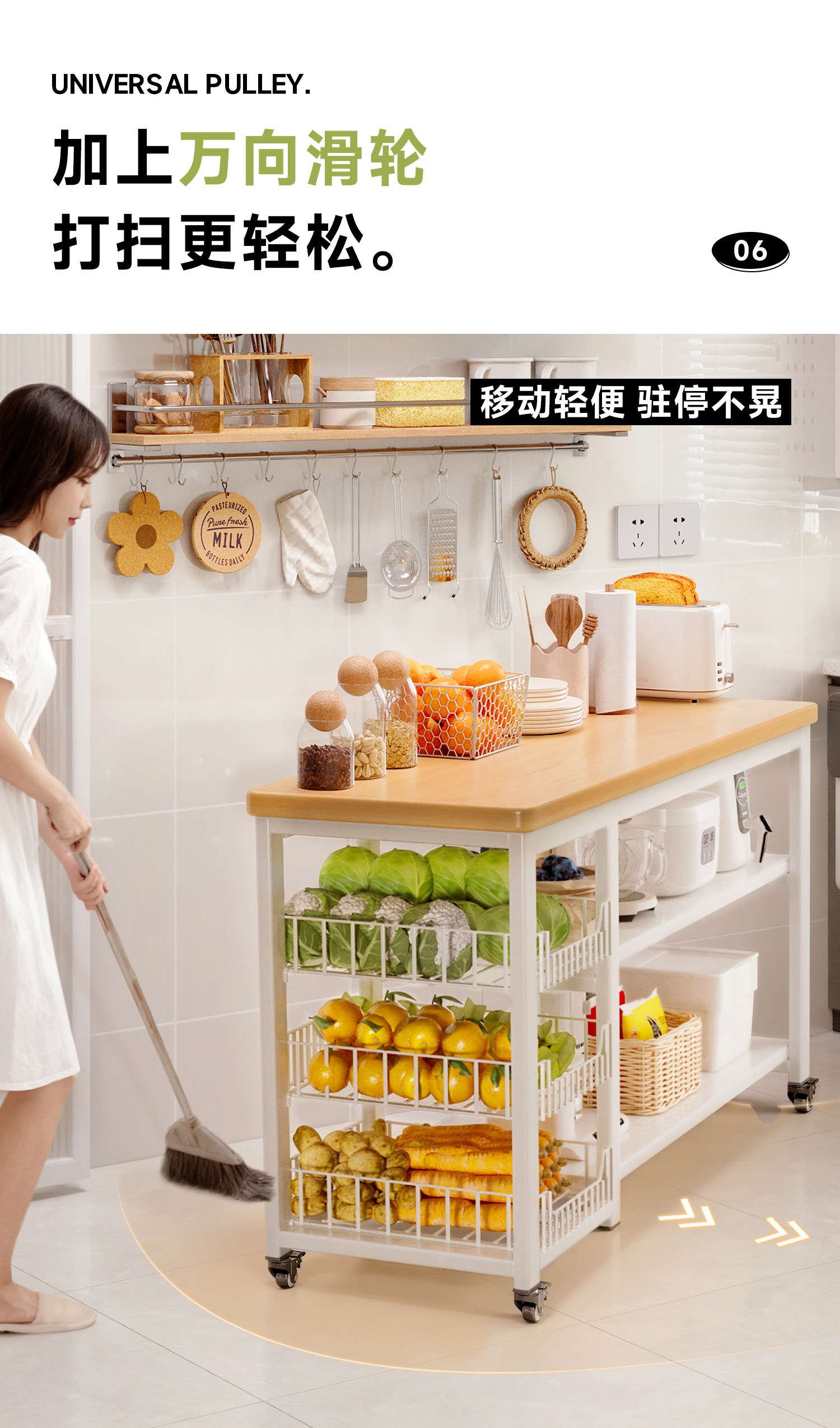 厨房置物架多功能菜篮子切菜工作台微波炉锅具收纳架边柜多层桌子