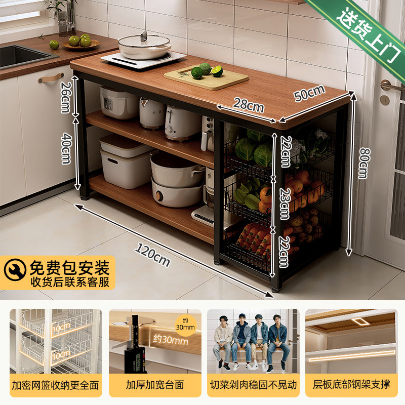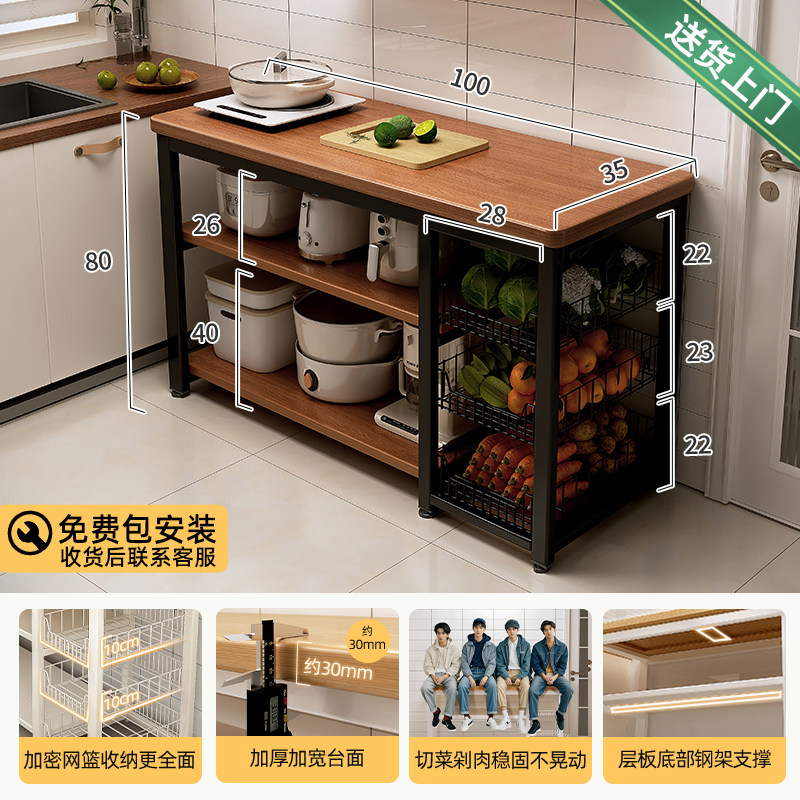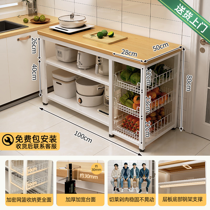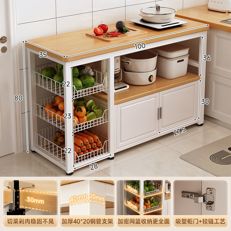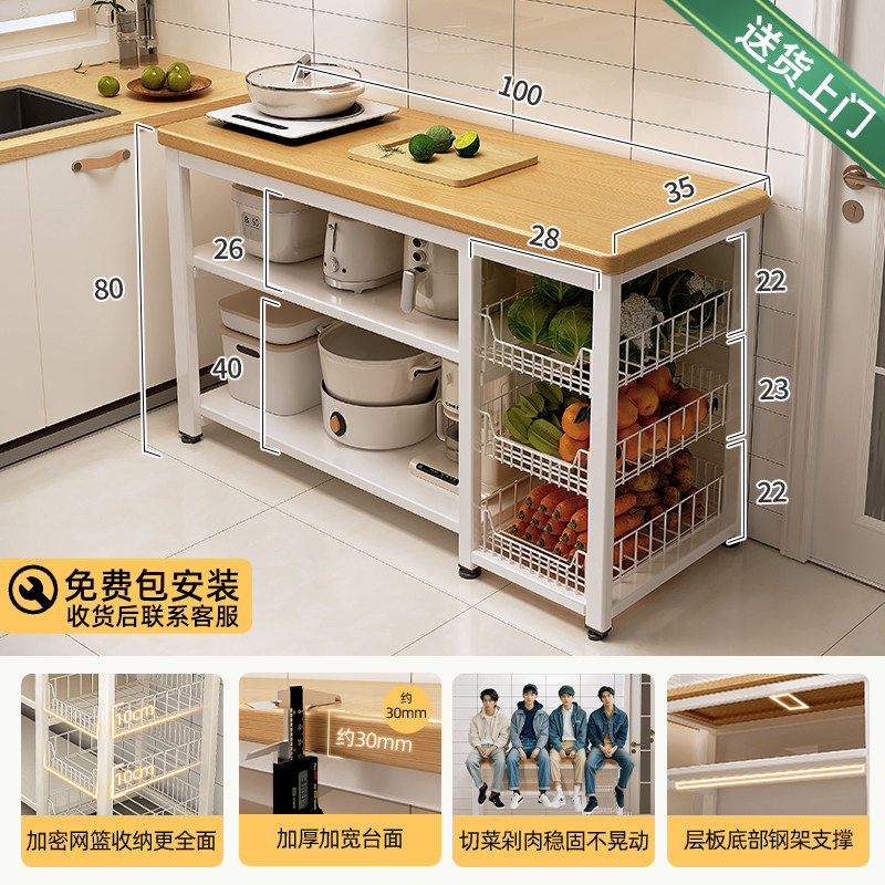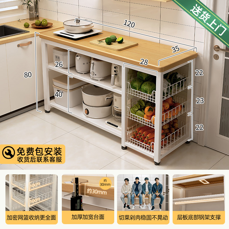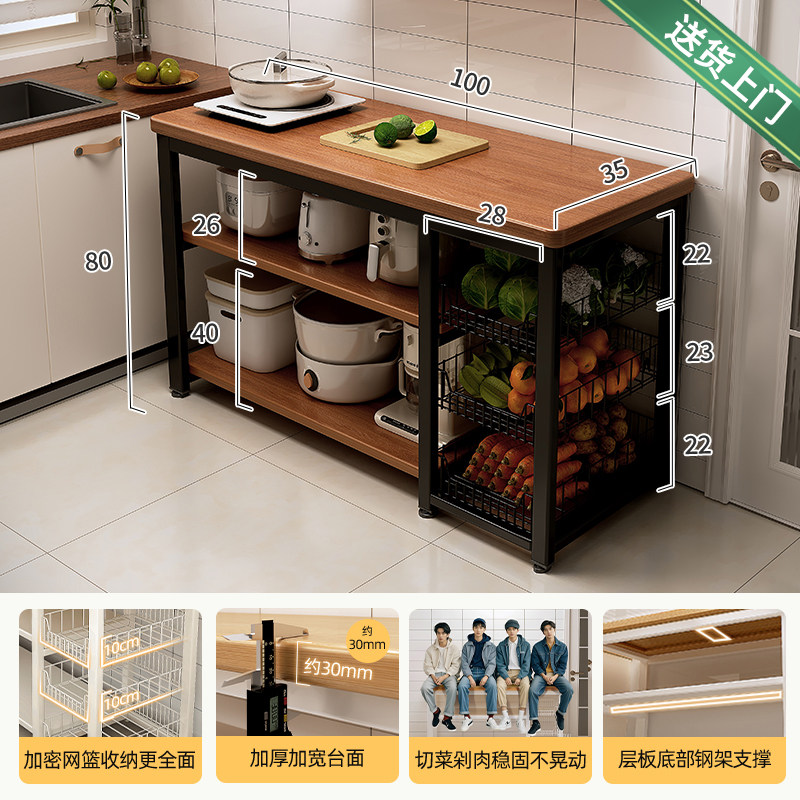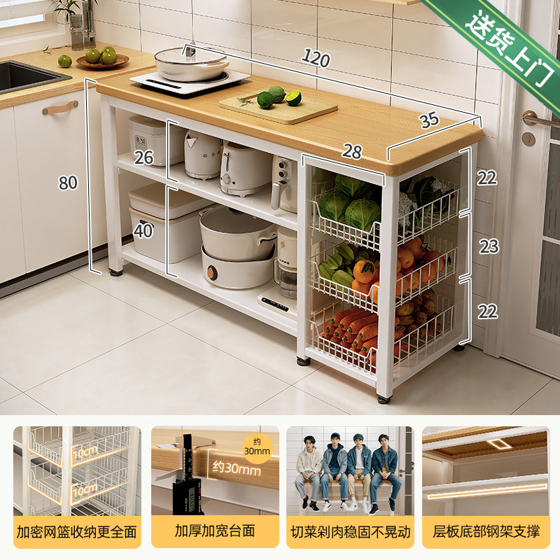 厨房置物架多功能菜篮子切菜工作台微波炉锅具收纳架边柜多层桌子